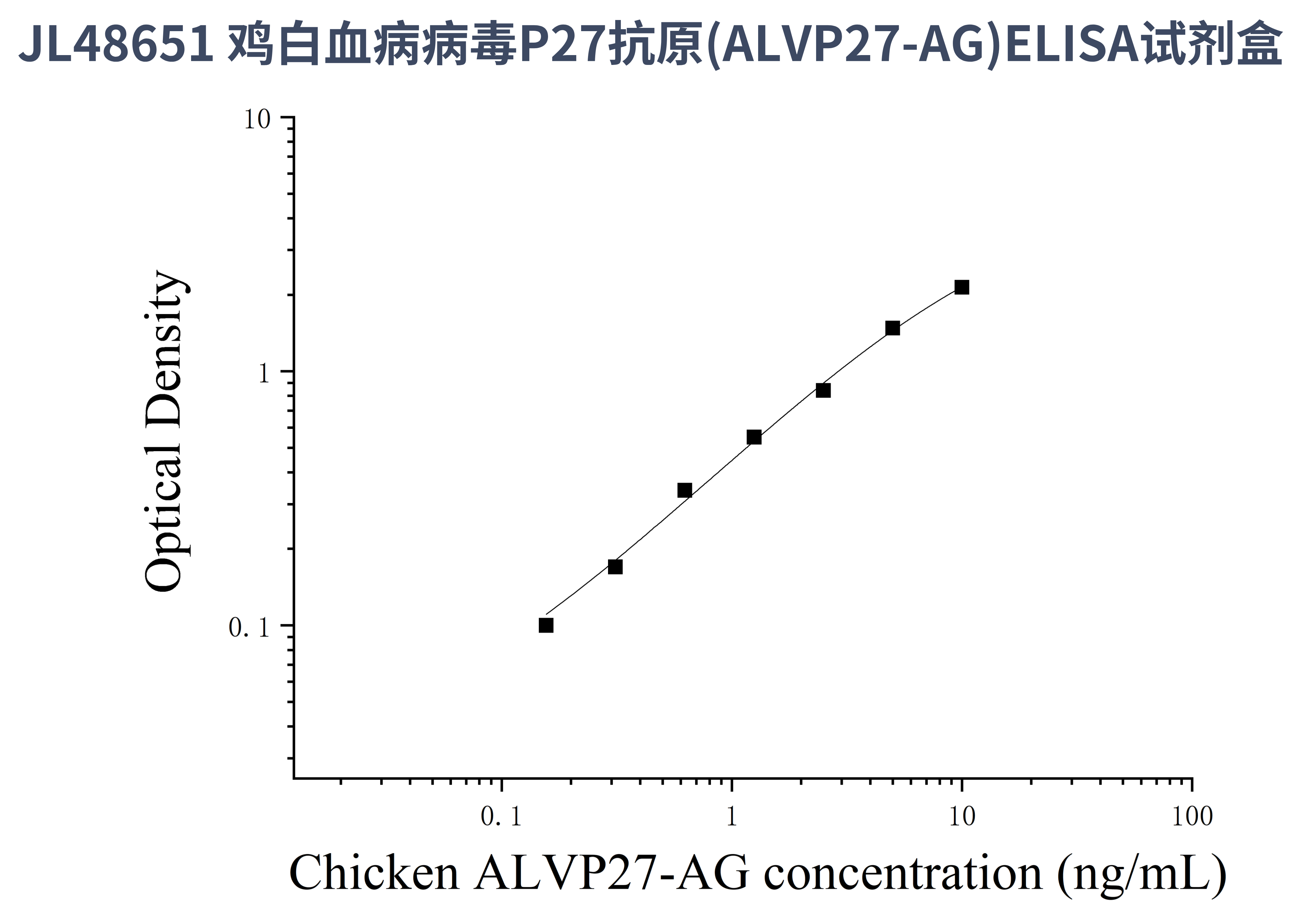 由于实验操作条件的不同( 如操作者、移液技术、洗板技术和稳定条件等),标准曲线的OD值会有所差异。以下数据和曲线仅供参考,实验者需根据自己的实验建立标准曲线。