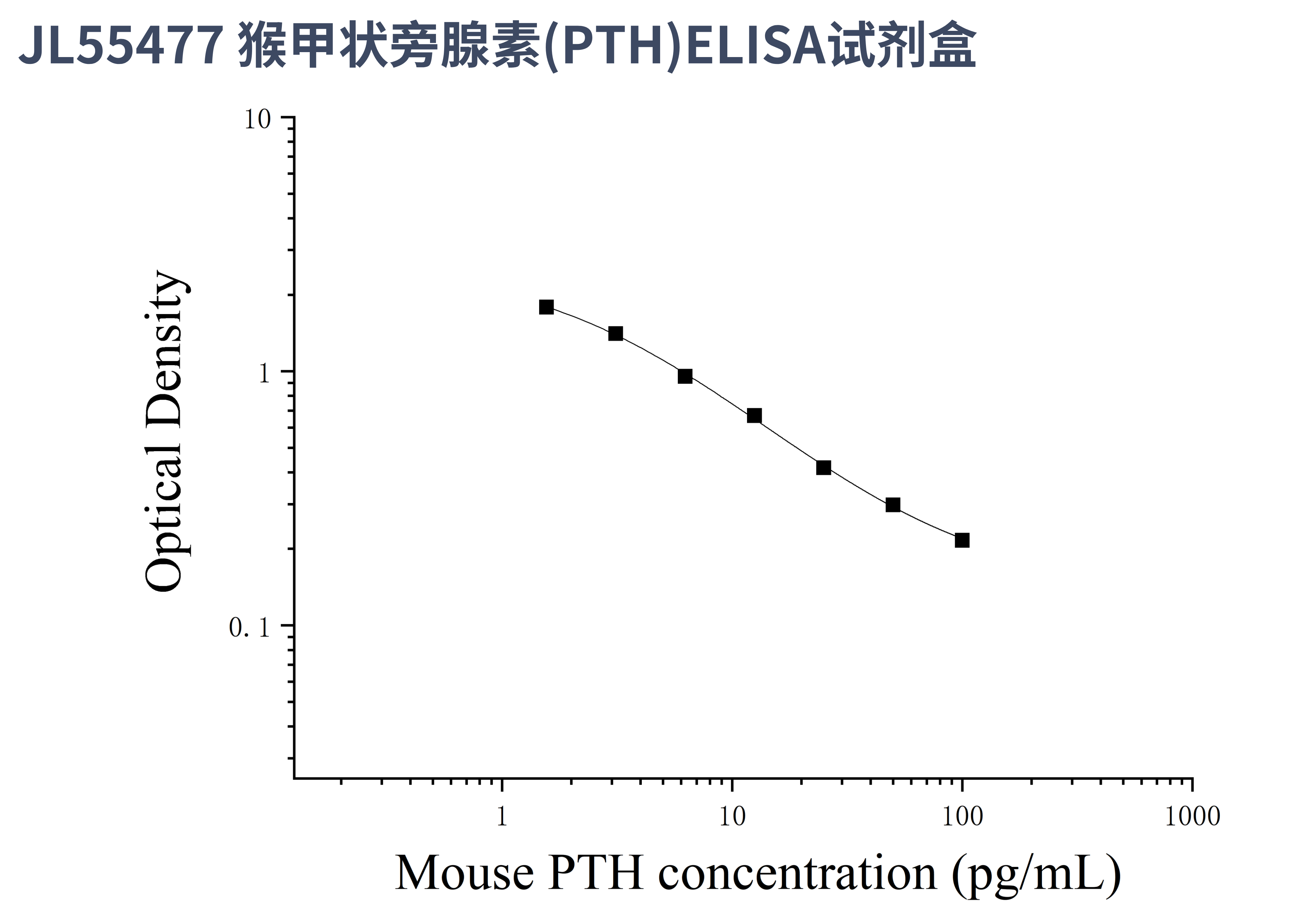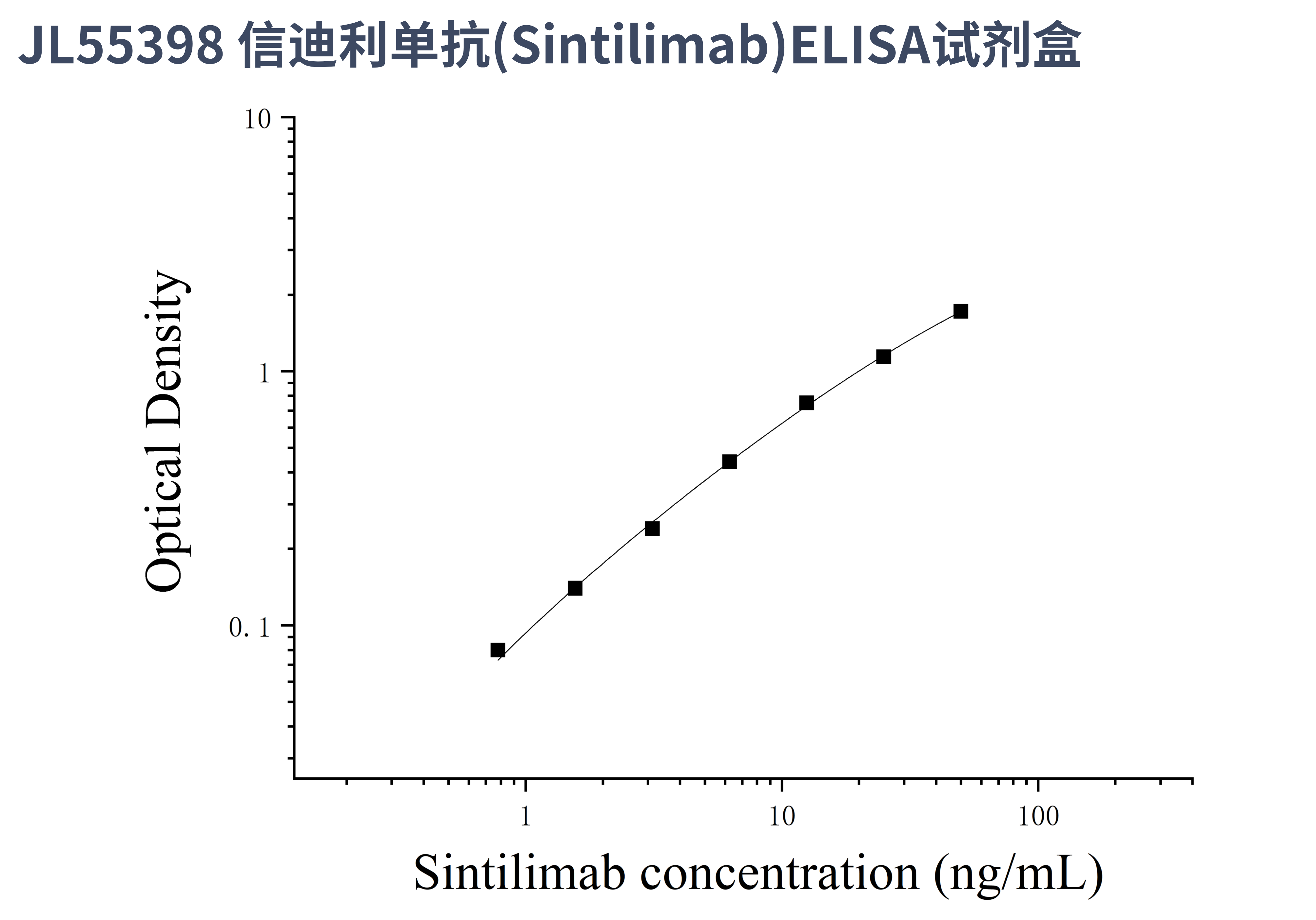 由于实验操作条件的不同( 如操作者、移液技术、洗板技术和稳定条件等),标准曲线的OD值会有所差异。以下数据和曲线仅供参考,实验者需根据自己的实验建立标准曲线。