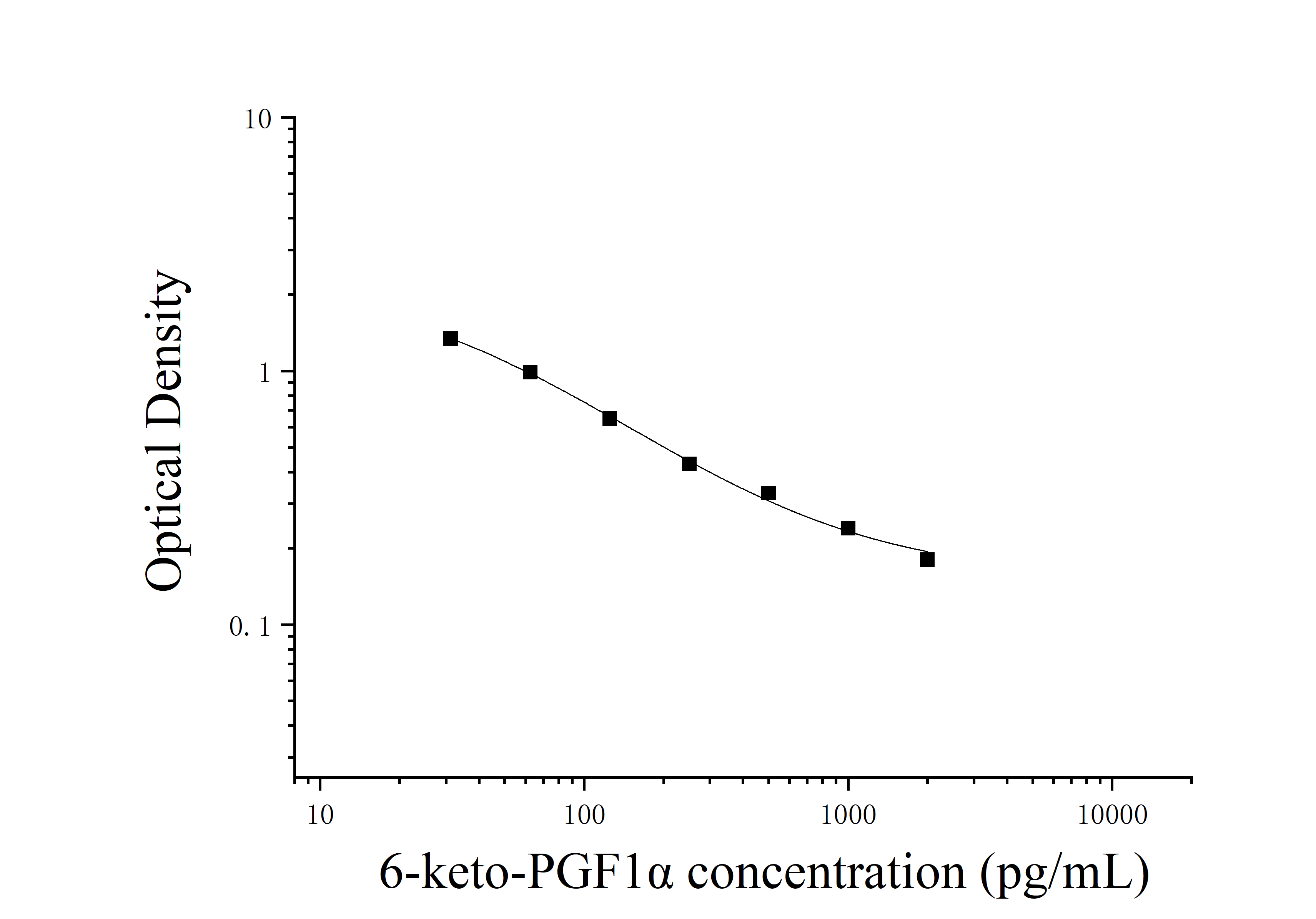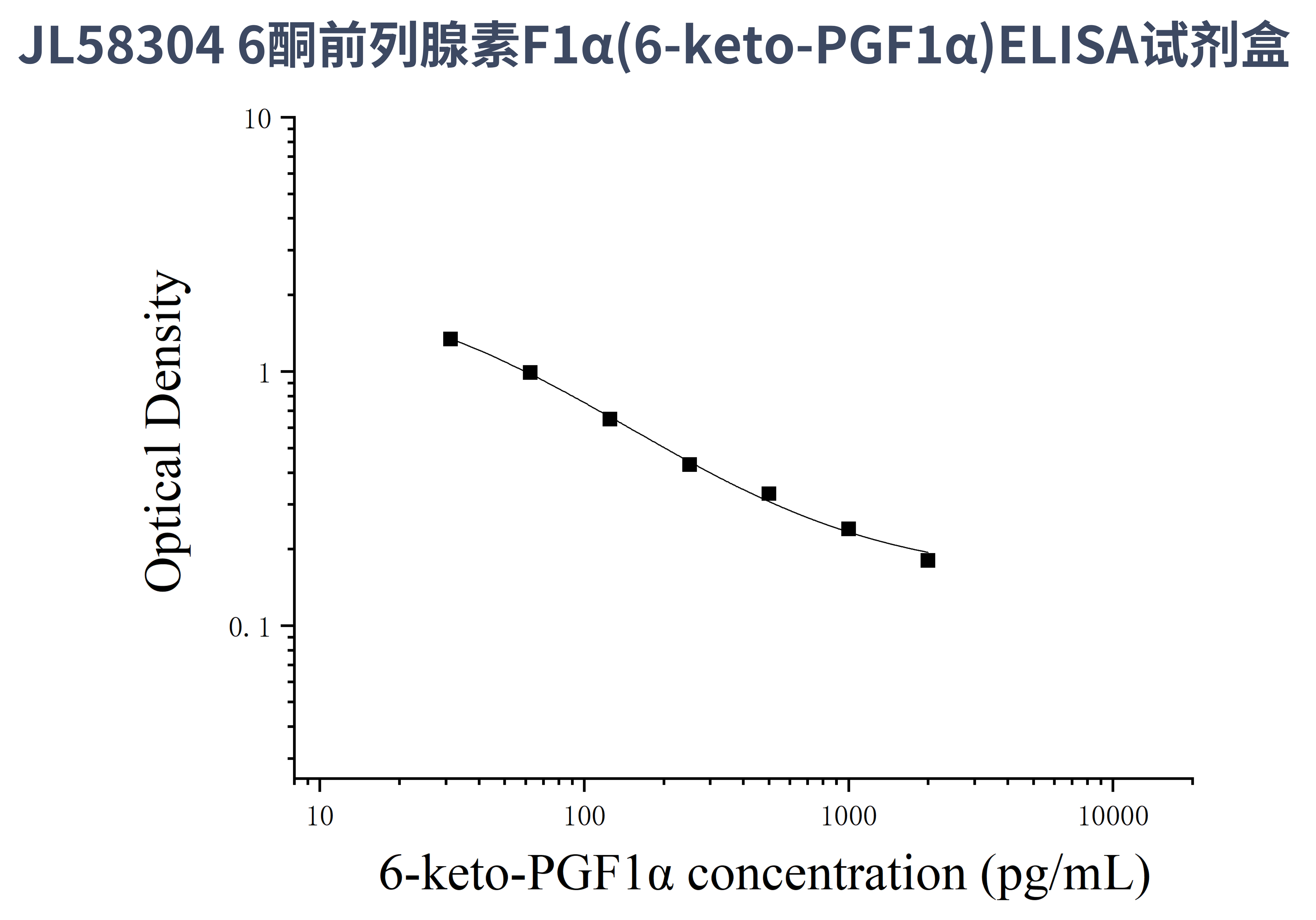 由于实验操作条件的不同( 如操作者、移液技术、洗板技术和稳定条件等),标准曲线的OD值会有所差异。以下数据和曲线仅供参考,实验者需根据自己的实验建立标准曲线。