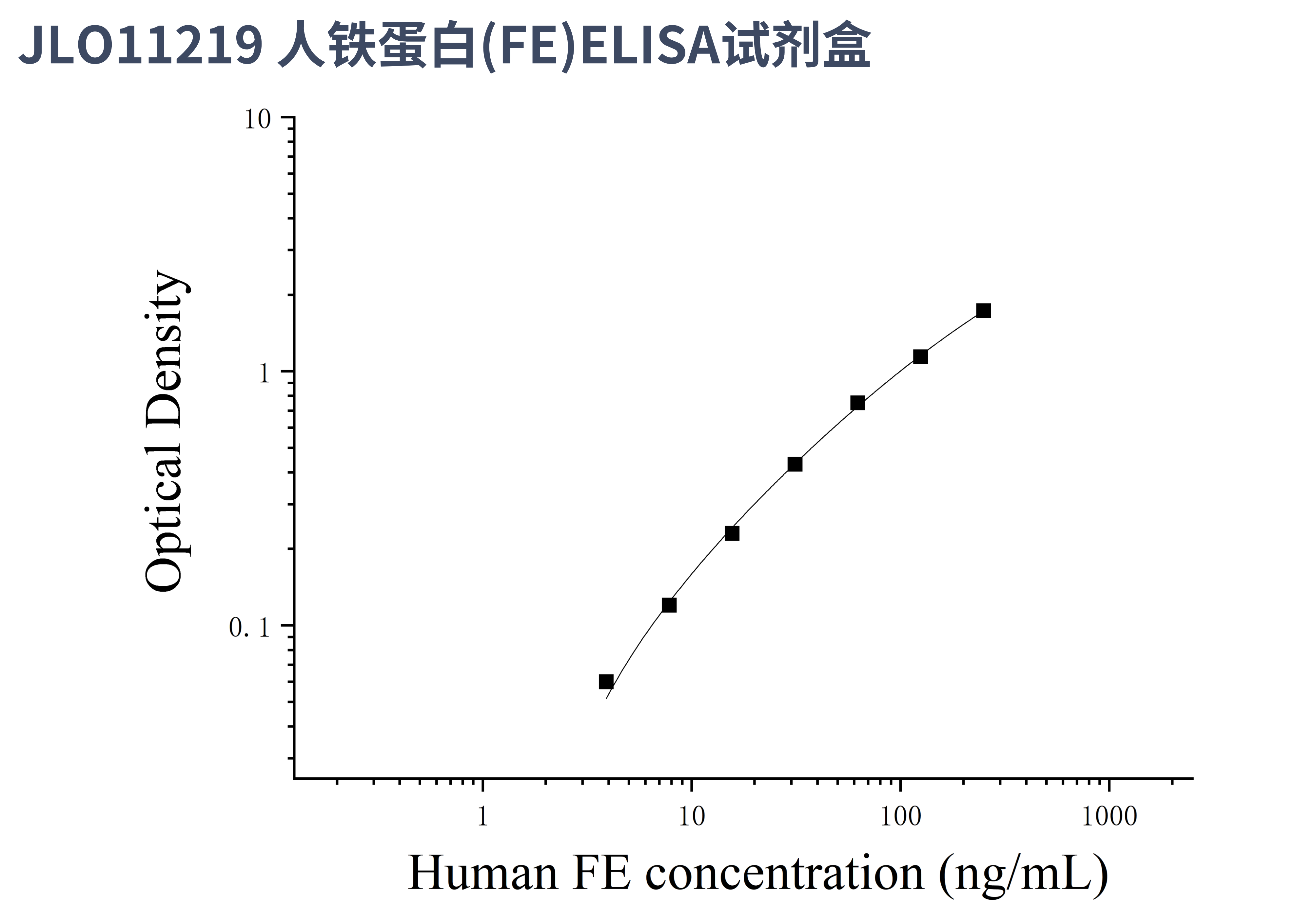 由于实验操作条件的不同( 如操作者、移液技术、洗板技术和稳定条件等),标准曲线的OD值会有所差异。以下数据和曲线仅供参考,实验者需根据自己的实验建立标准曲线。
