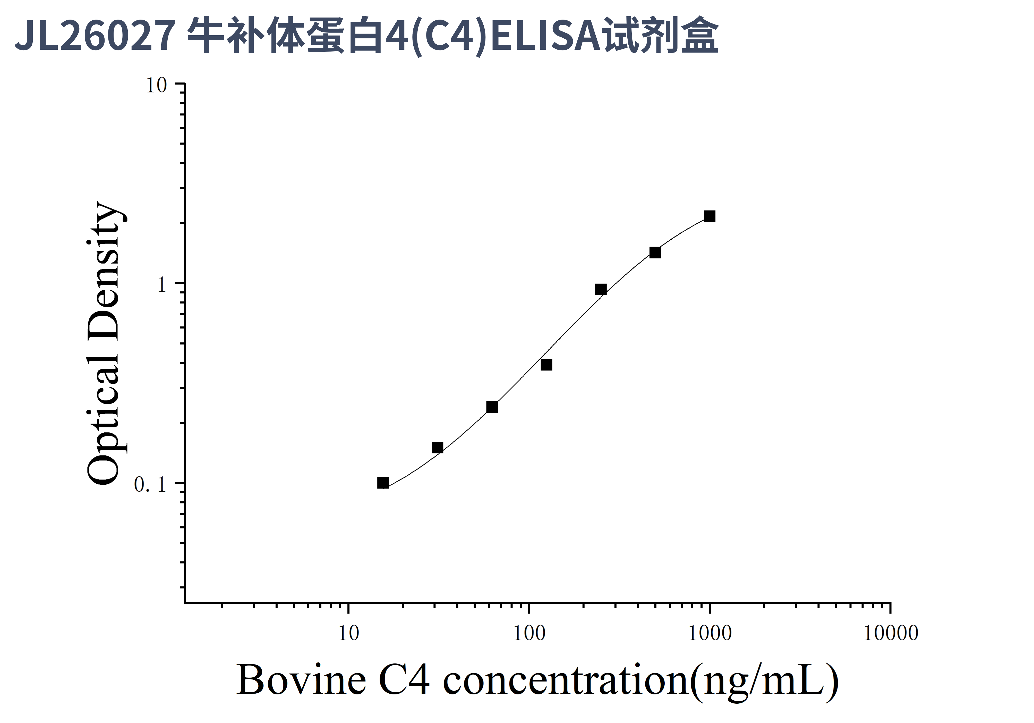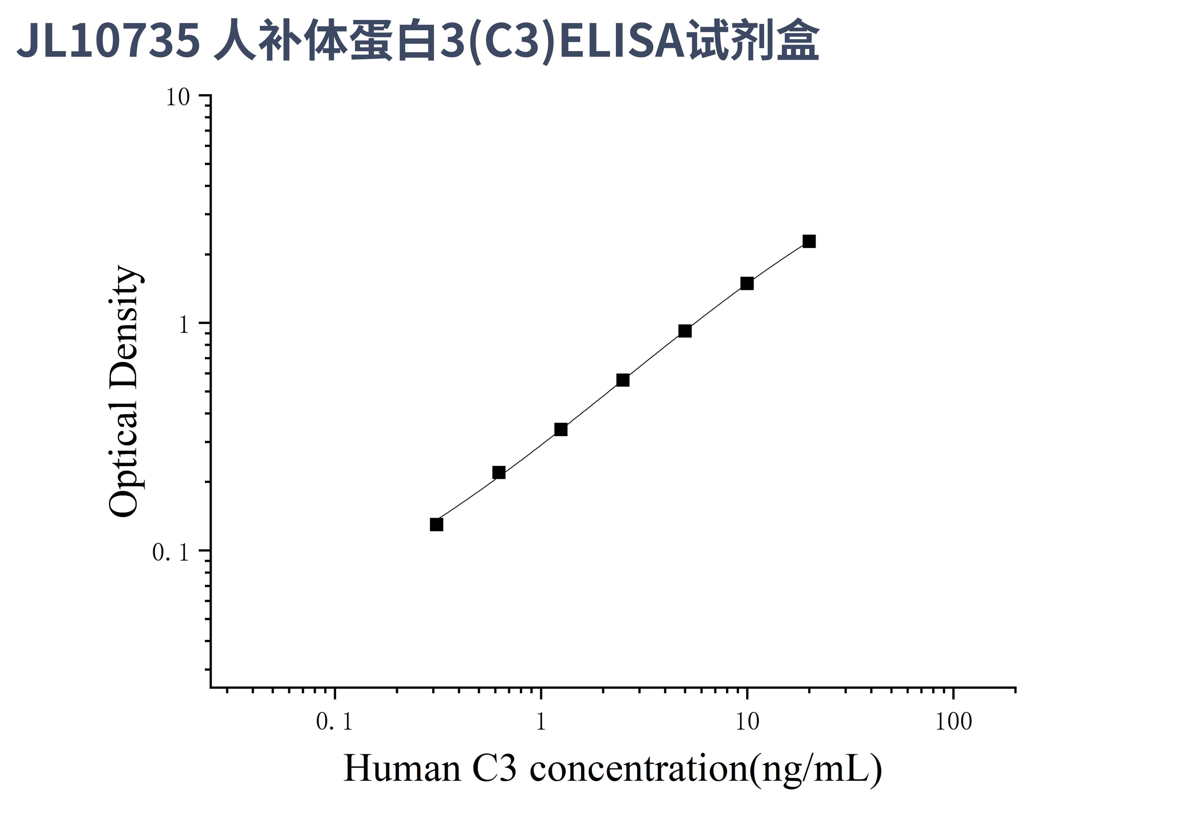 由于实验操作条件的不同( 如操作者、移液技术、洗板技术和稳定条件等),标准曲线的OD值会有所差异。以下数据和曲线仅供参考,实验者需根据自己的实验建立标准曲线。