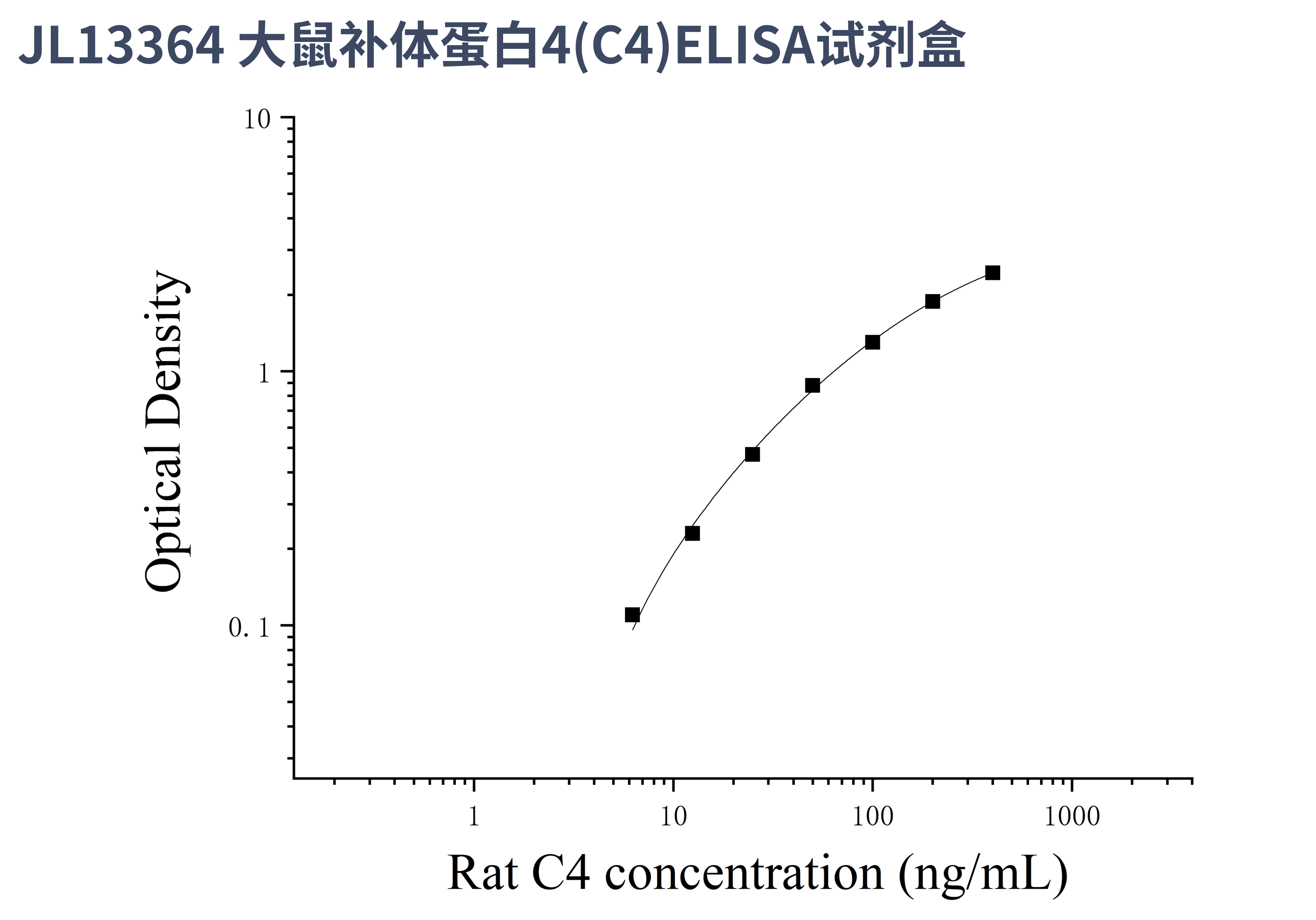 由于实验操作条件的不同( 如操作者、移液技术、洗板技术和稳定条件等),标准曲线的OD值会有所差异。以下数据和曲线仅供参考,实验者需根据自己的实验建立标准曲线。
