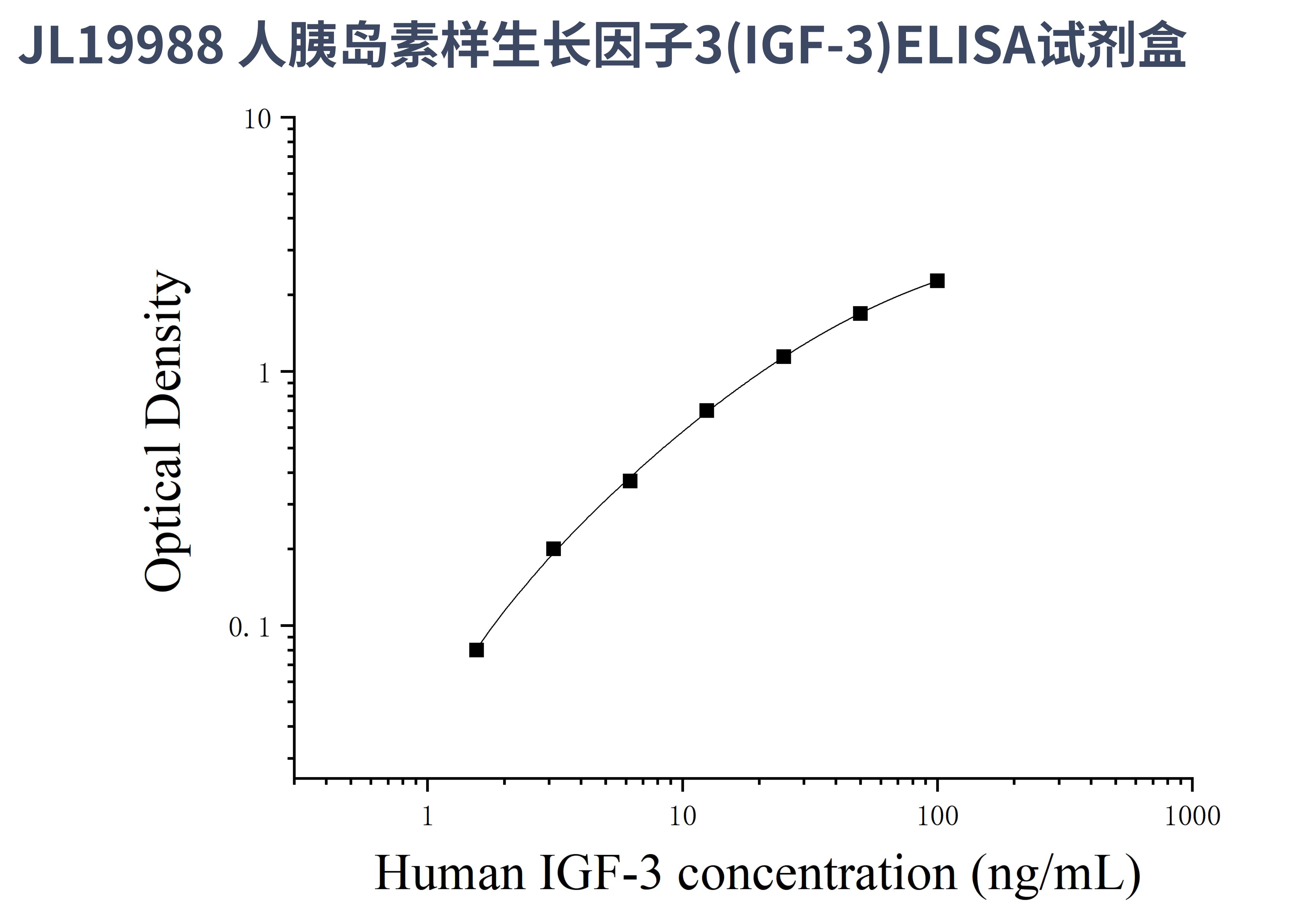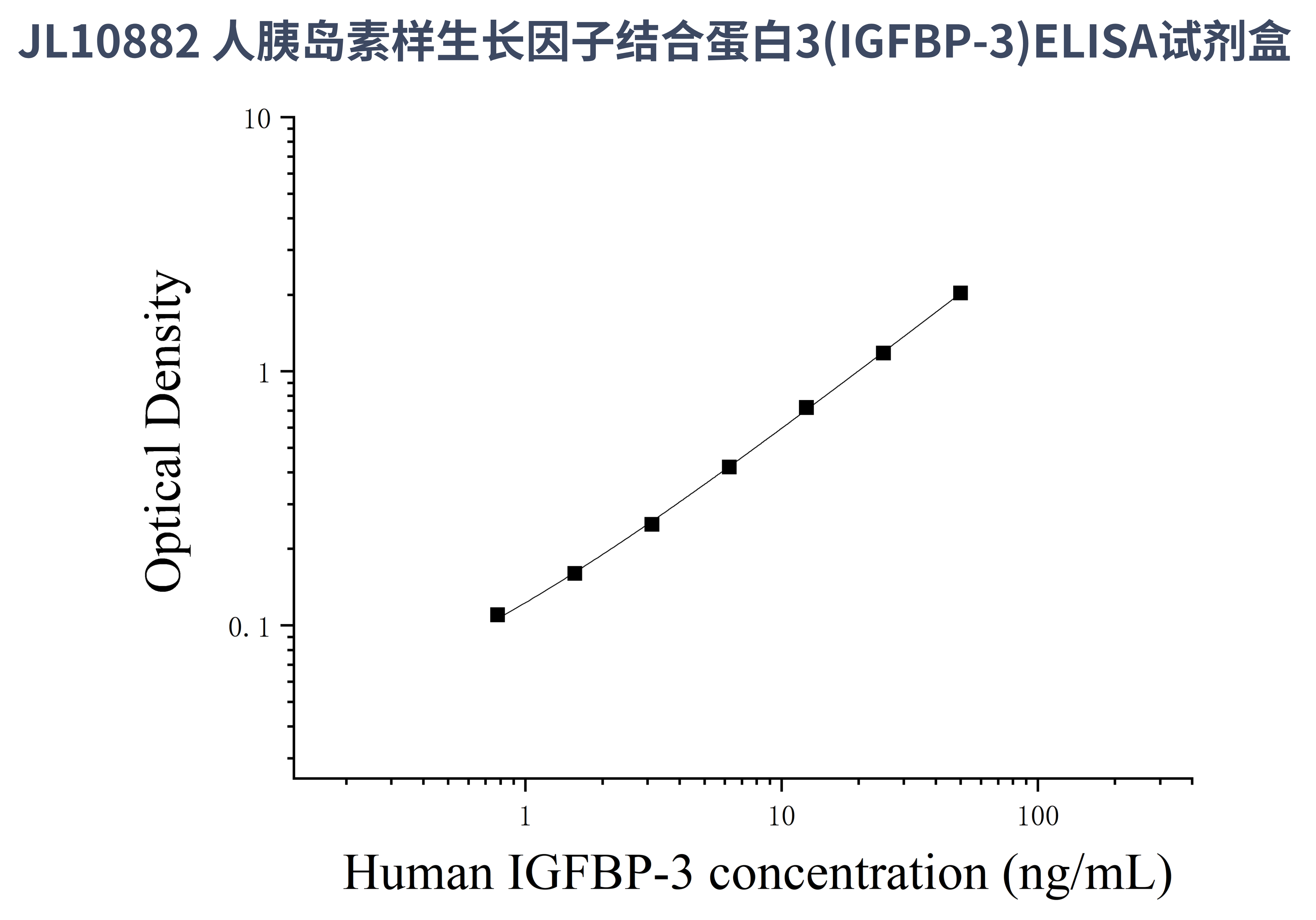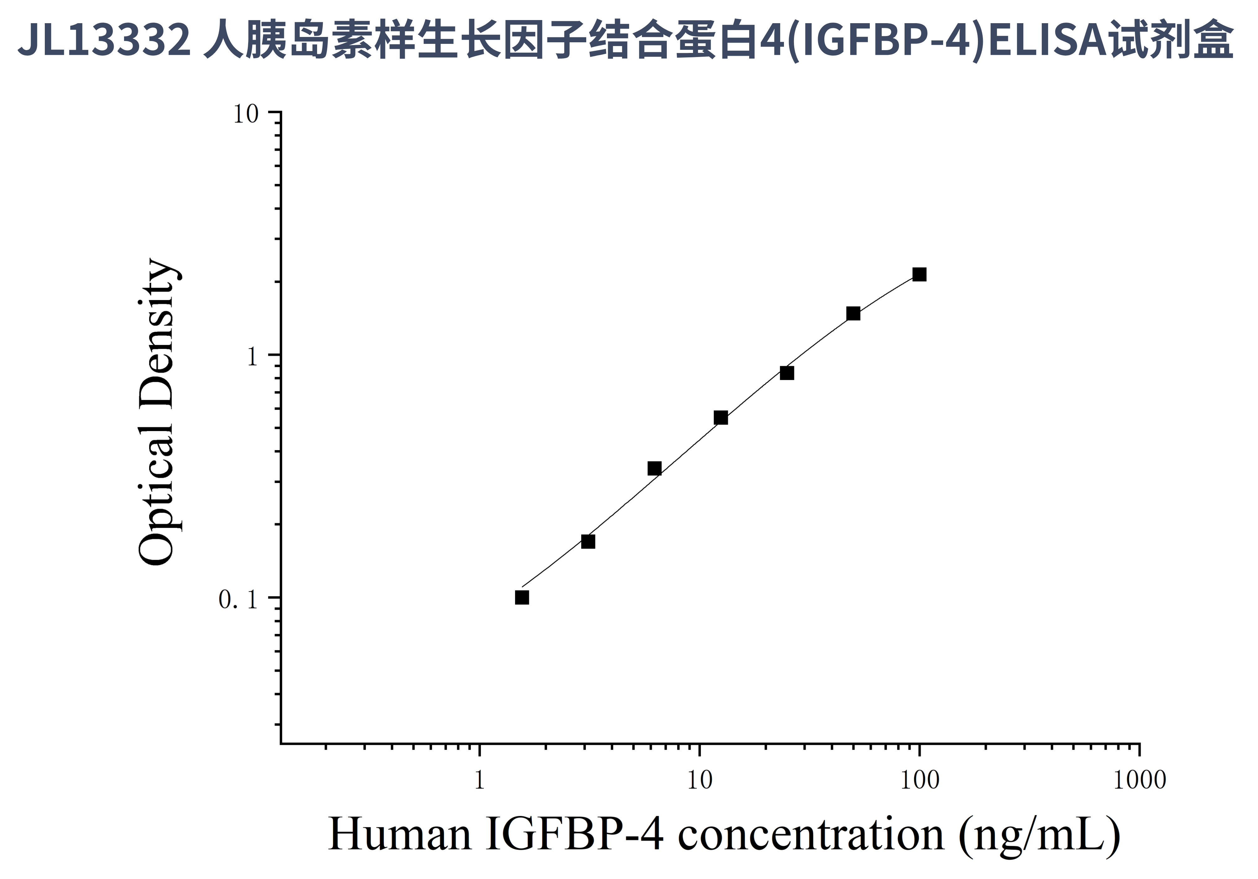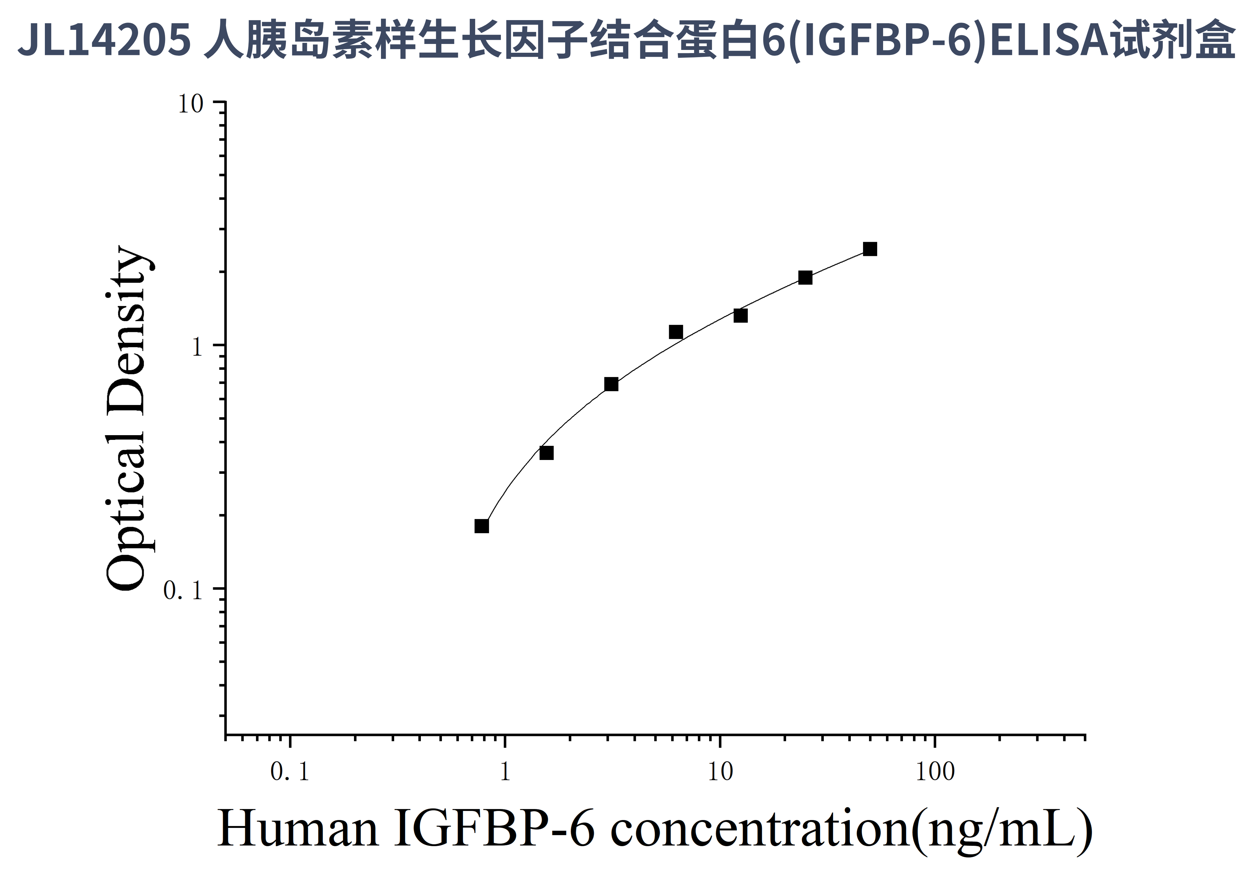 由于实验操作条件的不同( 如操作者、移液技术、洗板技术和稳定条件等),标准曲线的OD值会有所差异。以下数据和曲线仅供参考,实验者需根据自己的实验建立标准曲线。