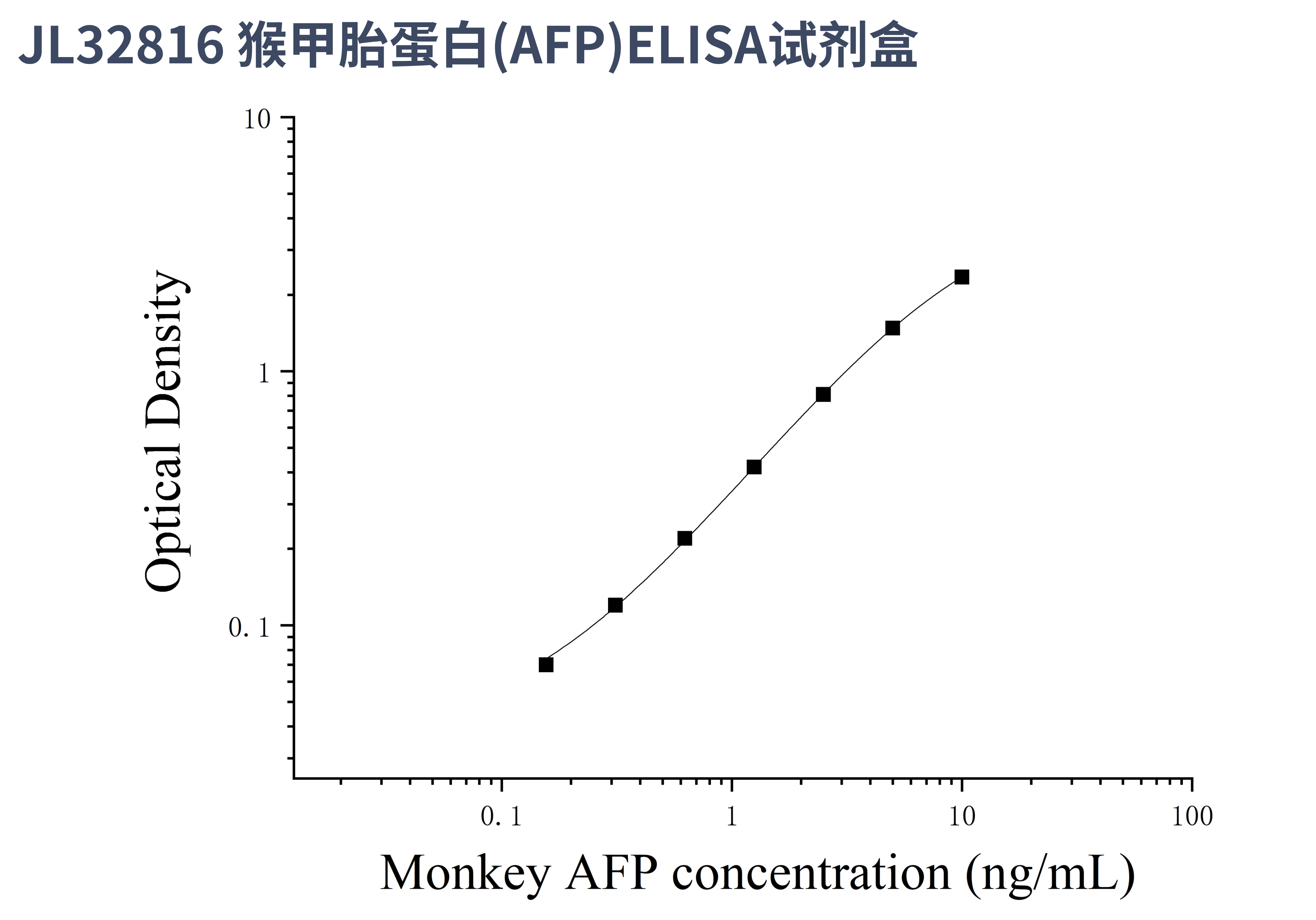 由于实验操作条件的不同( 如操作者、移液技术、洗板技术和稳定条件等),标准曲线的OD值会有所差异。以下数据和曲线仅供参考,实验者需根据自己的实验建立标准曲线。