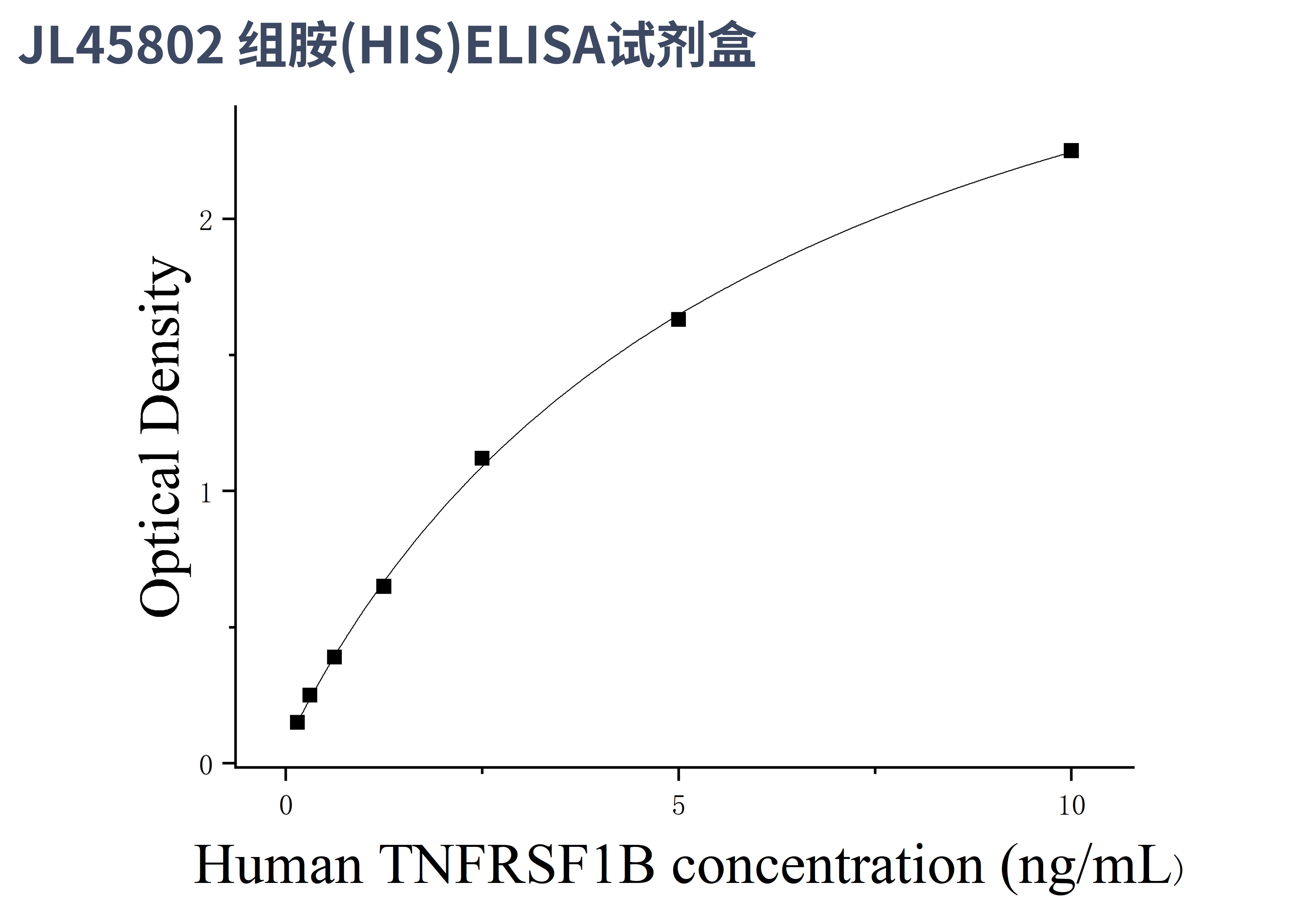 由于实验操作条件的不同( 如操作者、移液技术、洗板技术和稳定条件等),标准曲线的OD值会有所差异。以下数据和曲线仅供参考,实验者需根据自己的实验建立标准曲线。