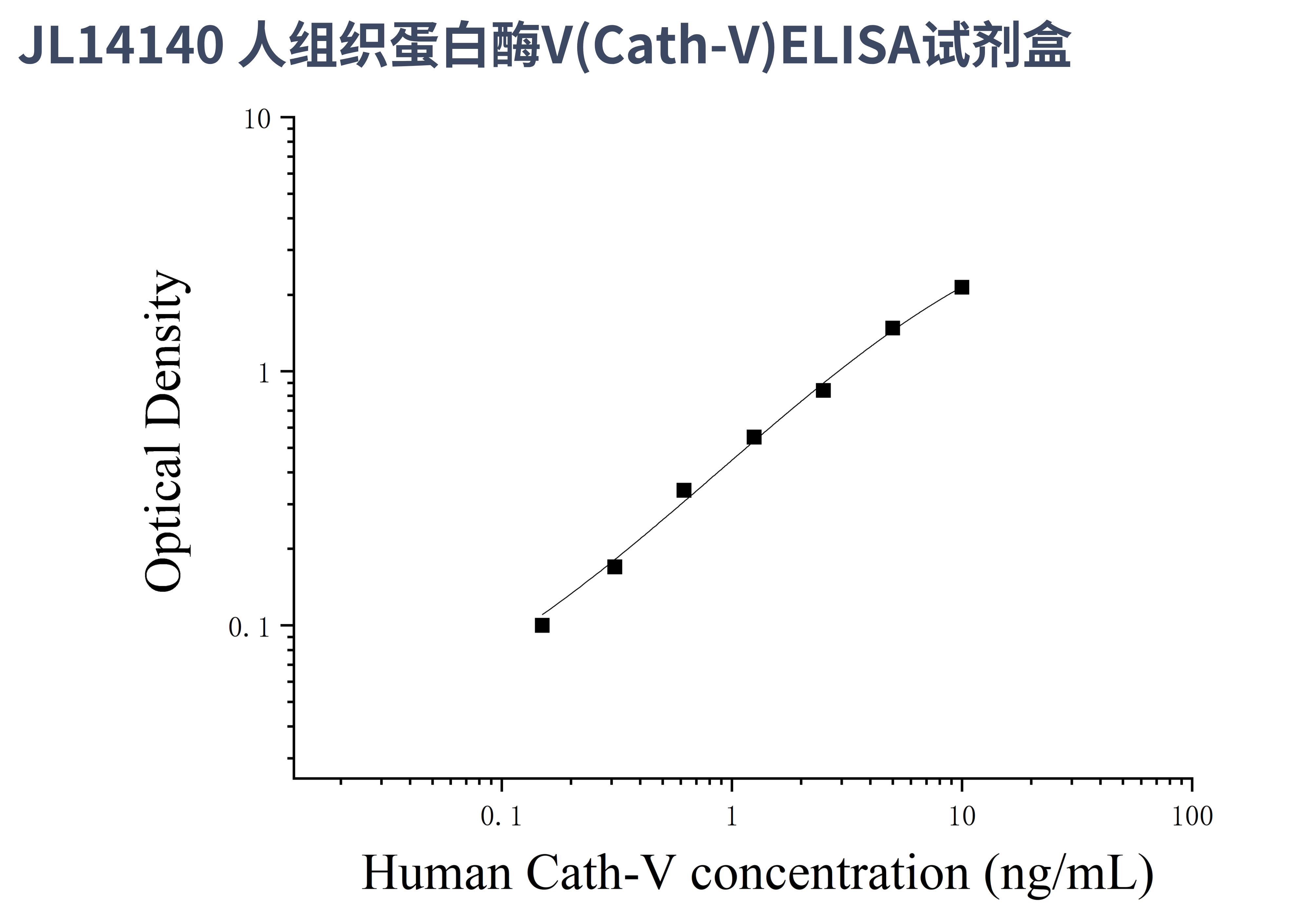 由于实验操作条件的不同( 如操作者、移液技术、洗板技术和稳定条件等),标准曲线的OD值会有所差异。以下数据和曲线仅供参考,实验者需根据自己的实验建立标准曲线。