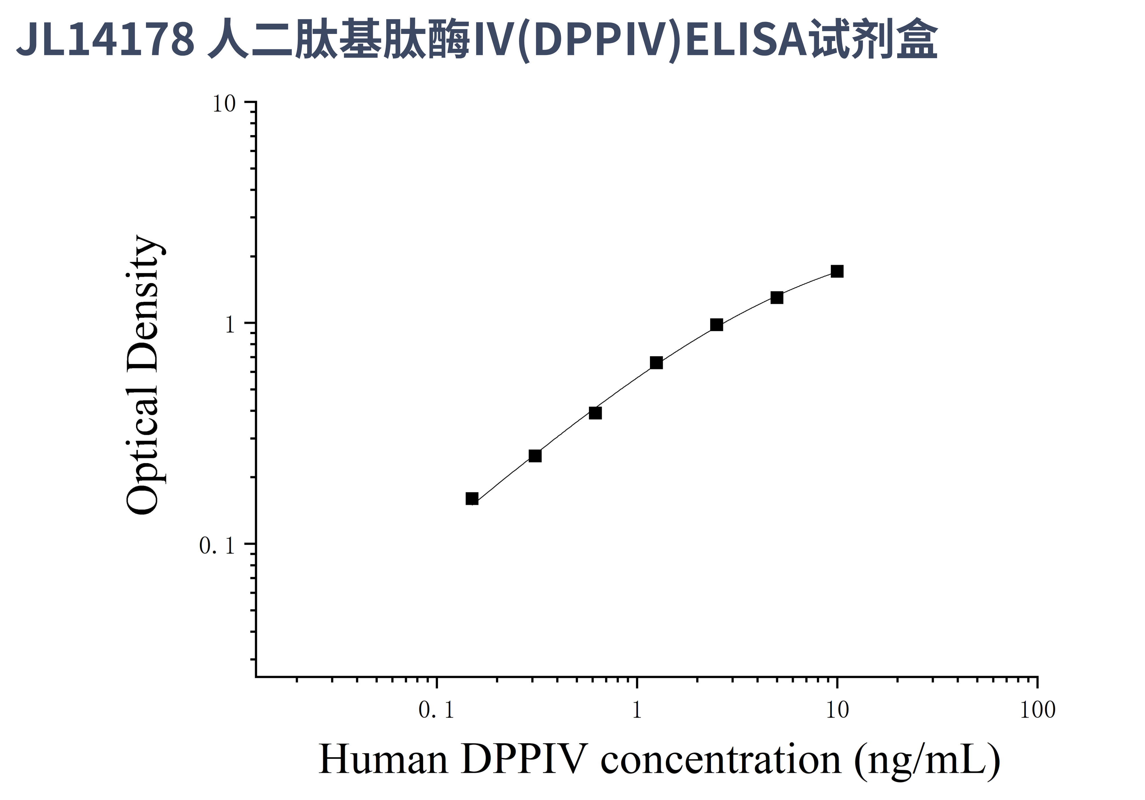 由于实验操作条件的不同( 如操作者、移液技术、洗板技术和稳定条件等),标准曲线的OD值会有所差异。以下数据和曲线仅供参考,实验者需根据自己的实验建立标准曲线。