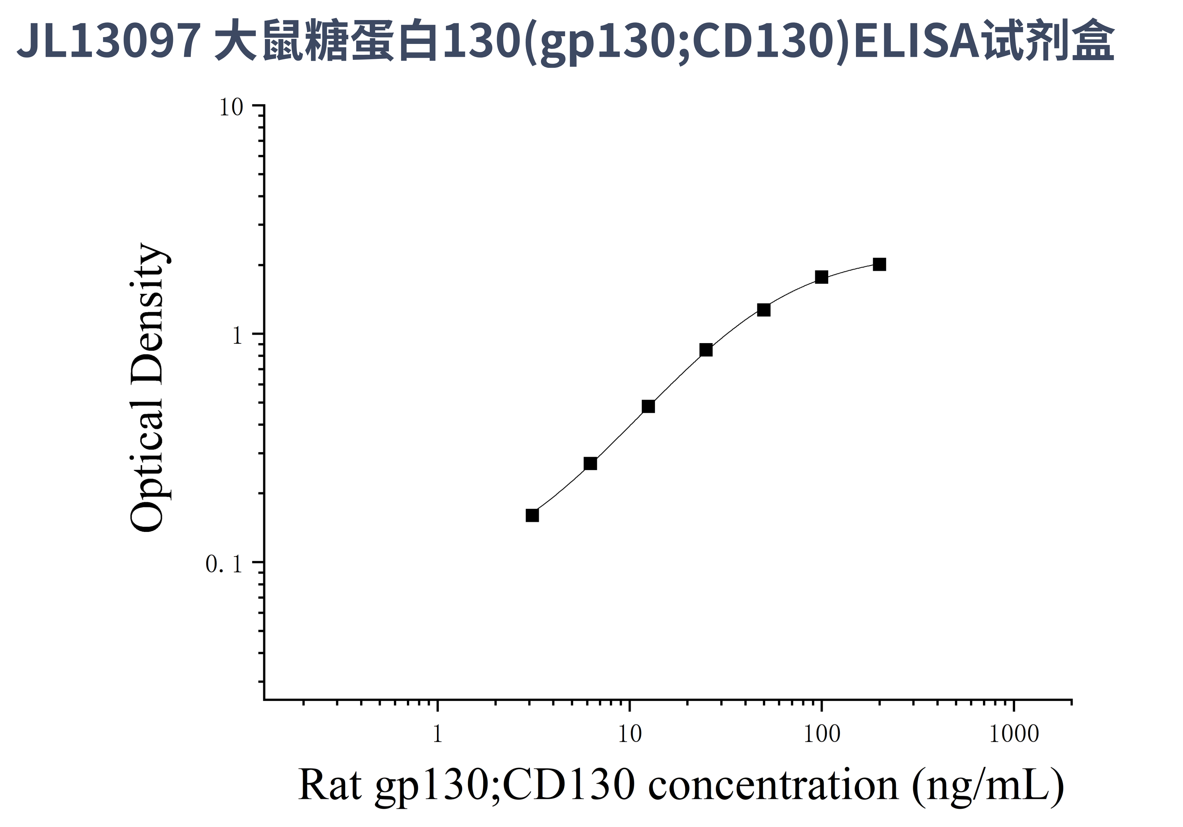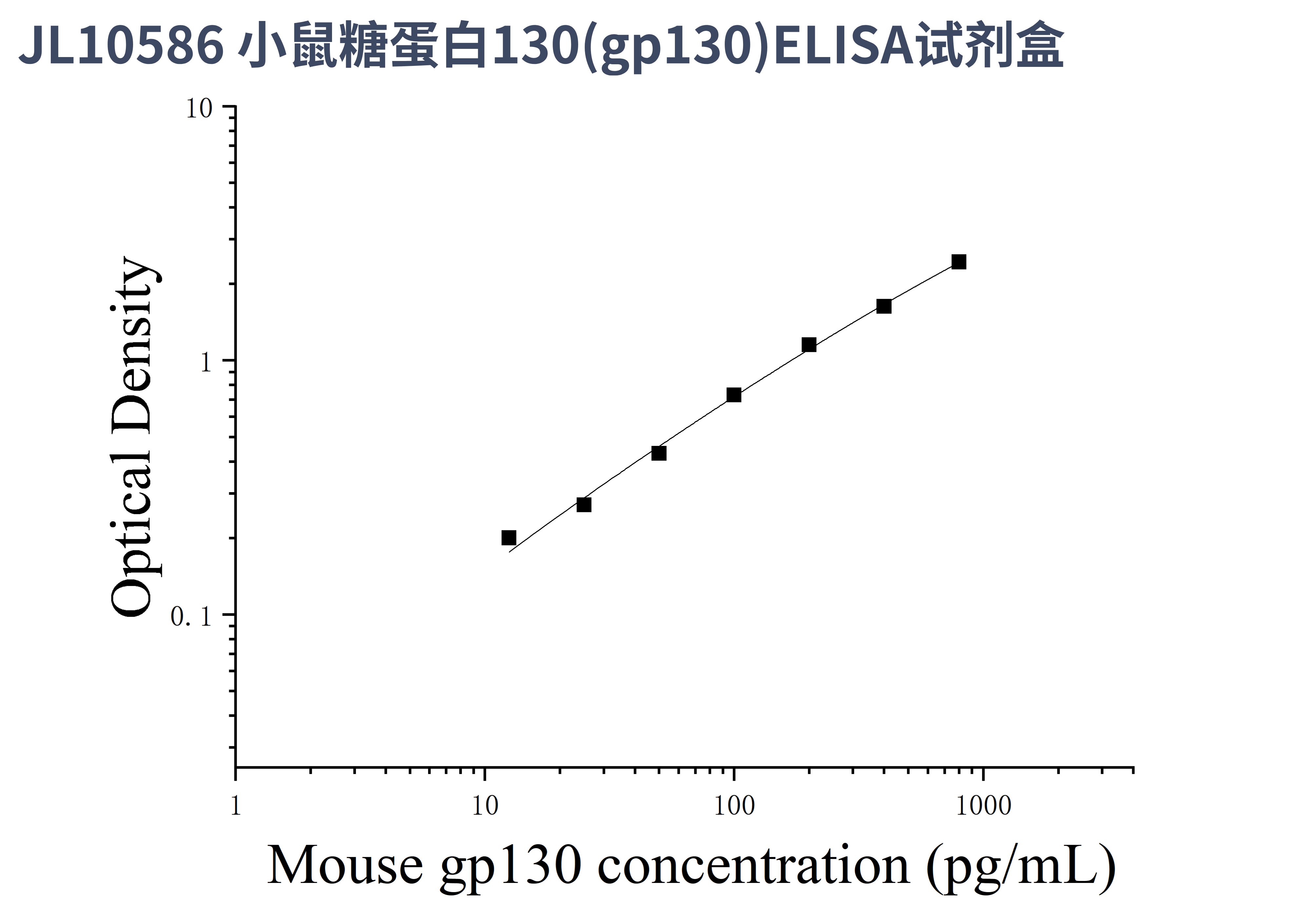 由于实验操作条件的不同( 如操作者、移液技术、洗板技术和稳定条件等),标准曲线的OD值会有所差异。以下数据和曲线仅供参考,实验者需根据自己的实验建立标准曲线。