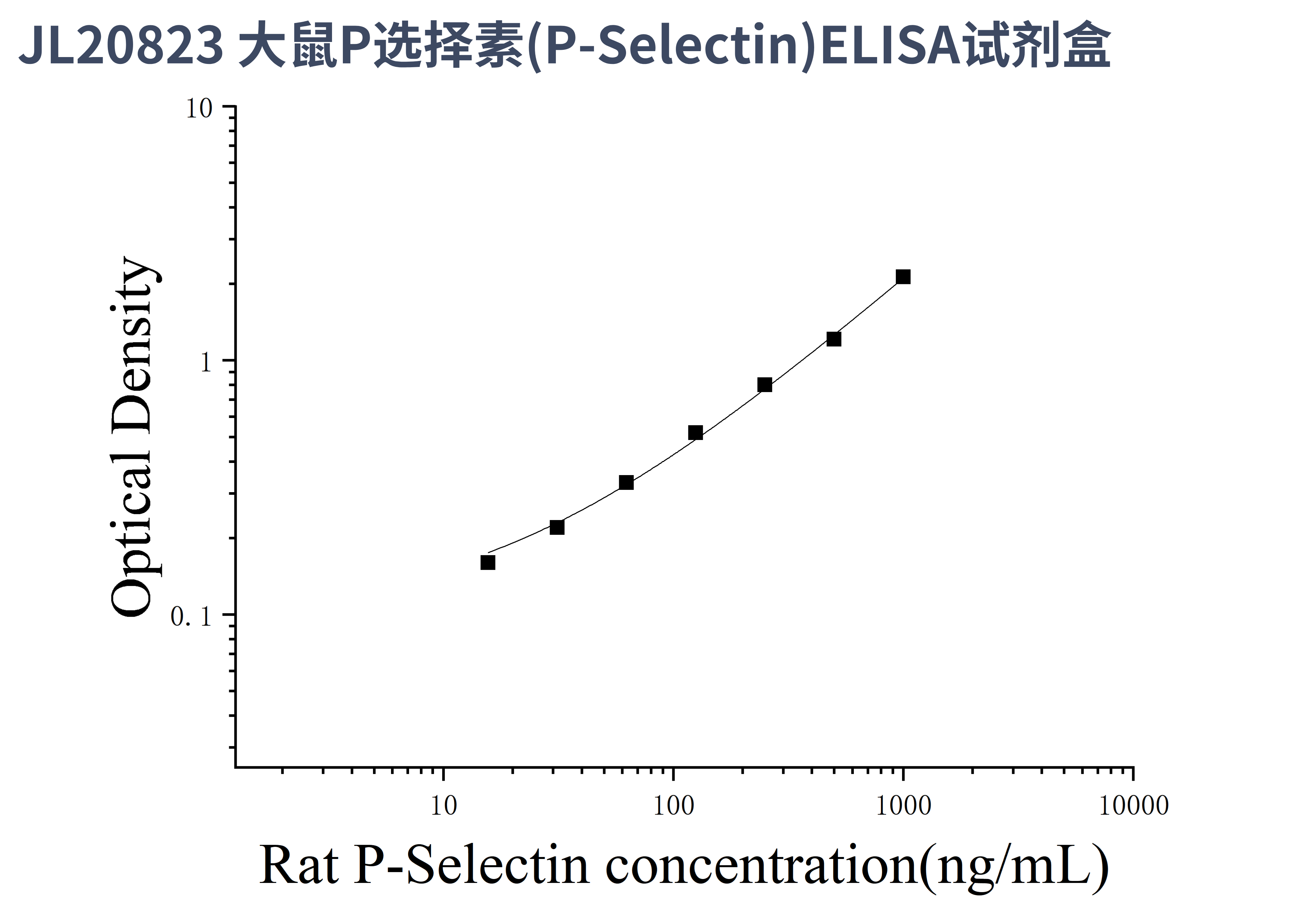 由于实验操作条件的不同( 如操作者、移液技术、洗板技术和稳定条件等),标准曲线的OD值会有所差异。以下数据和曲线仅供参考,实验者需根据自己的实验建立标准曲线。