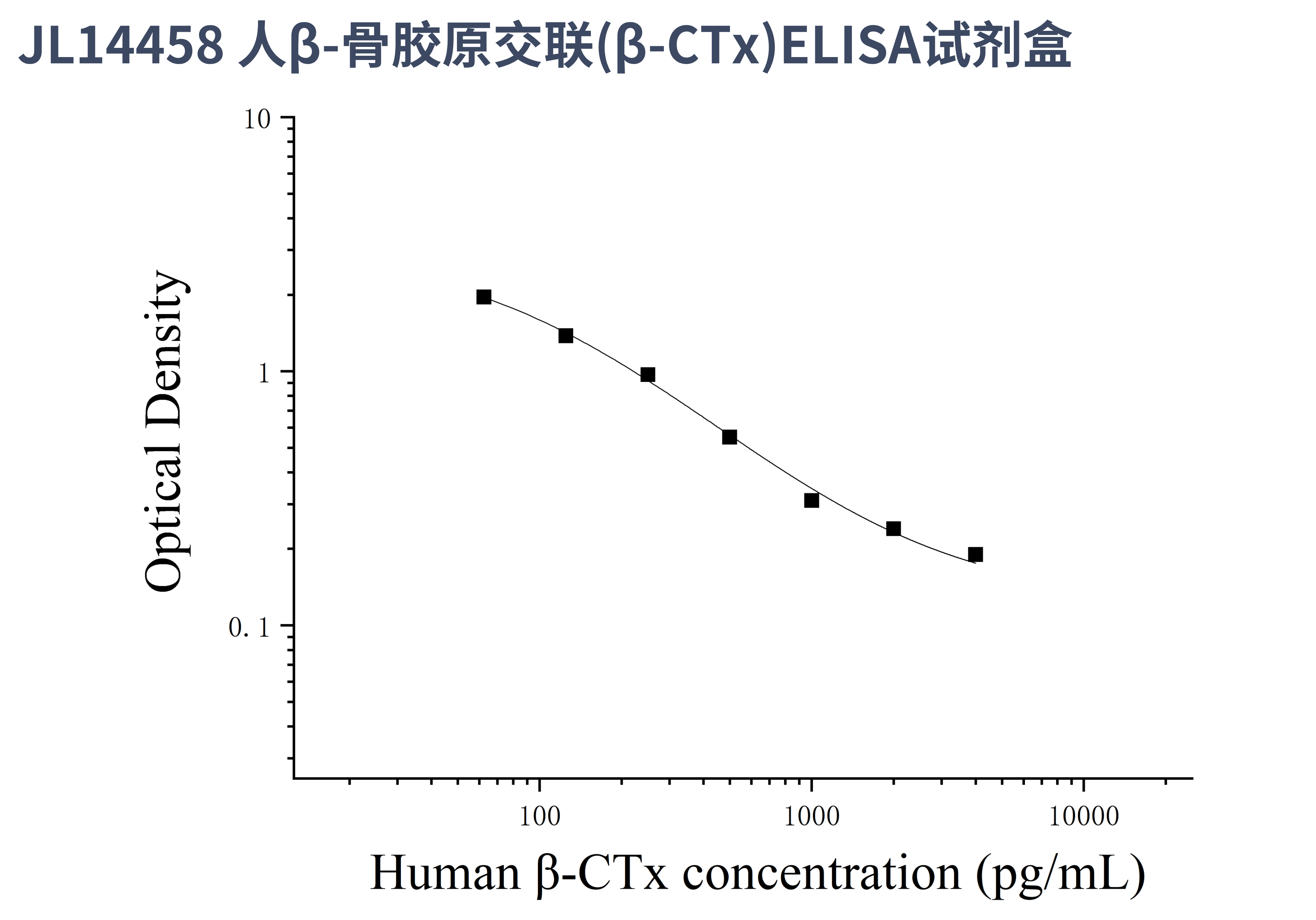 由于实验操作条件的不同( 如操作者、移液技术、洗板技术和稳定条件等),标准曲线的OD值会有所差异。以下数据和曲线仅供参考,实验者需根据自己的实验建立标准曲线。