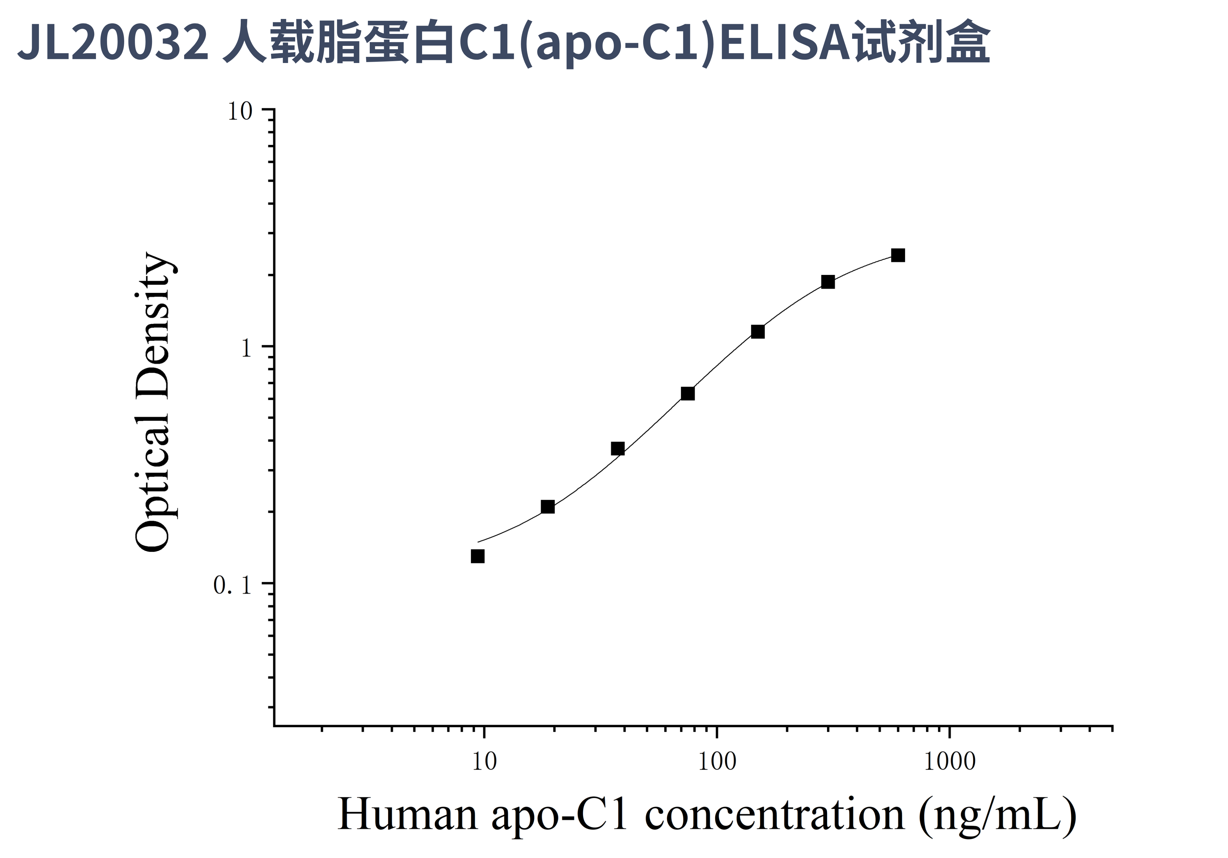 由于实验操作条件的不同( 如操作者、移液技术、洗板技术和稳定条件等),标准曲线的OD值会有所差异。以下数据和曲线仅供参考,实验者需根据自己的实验建立标准曲线。