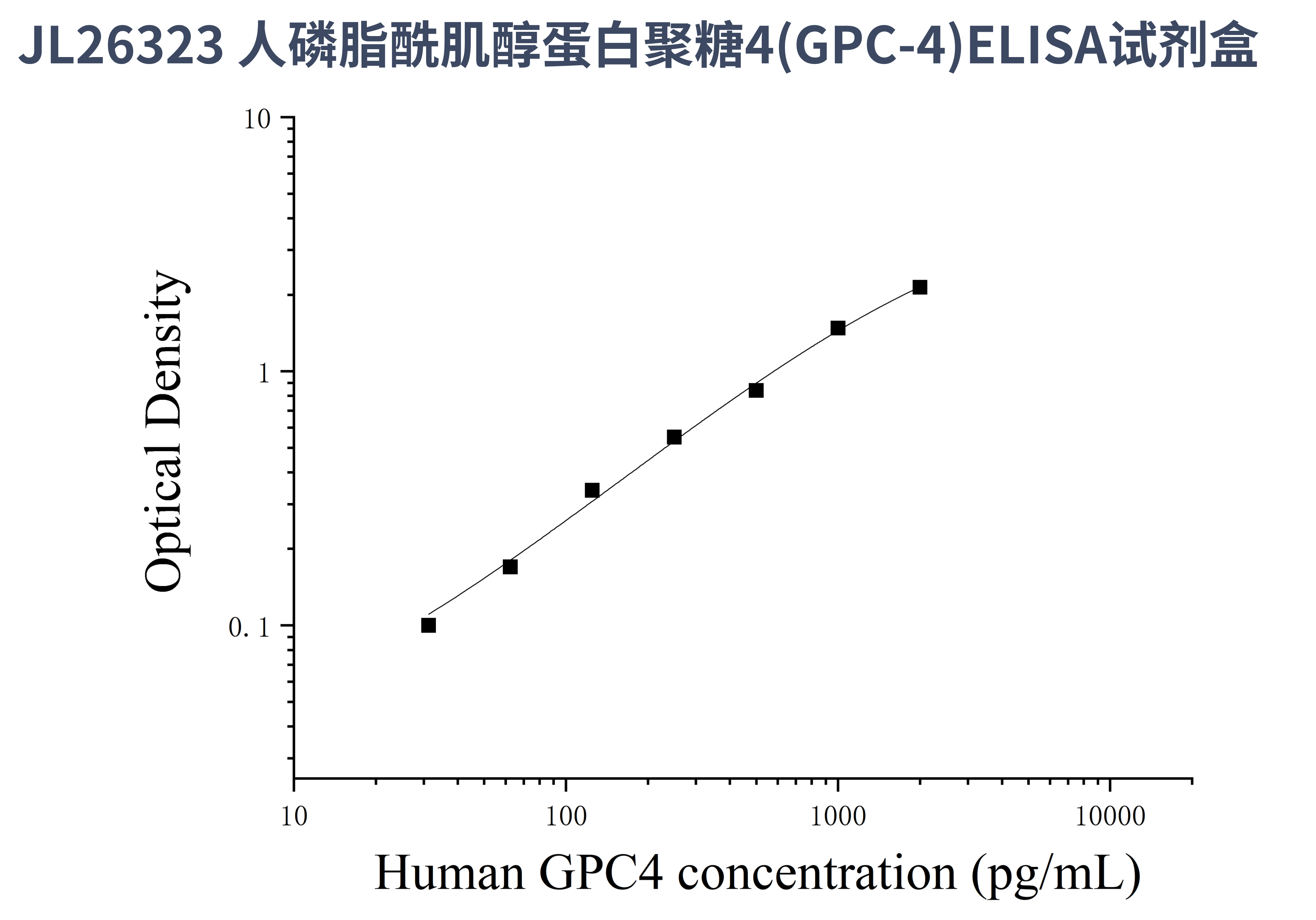 由于实验操作条件的不同( 如操作者、移液技术、洗板技术和稳定条件等),标准曲线的OD值会有所差异。以下数据和曲线仅供参考,实验者需根据自己的实验建立标准曲线。