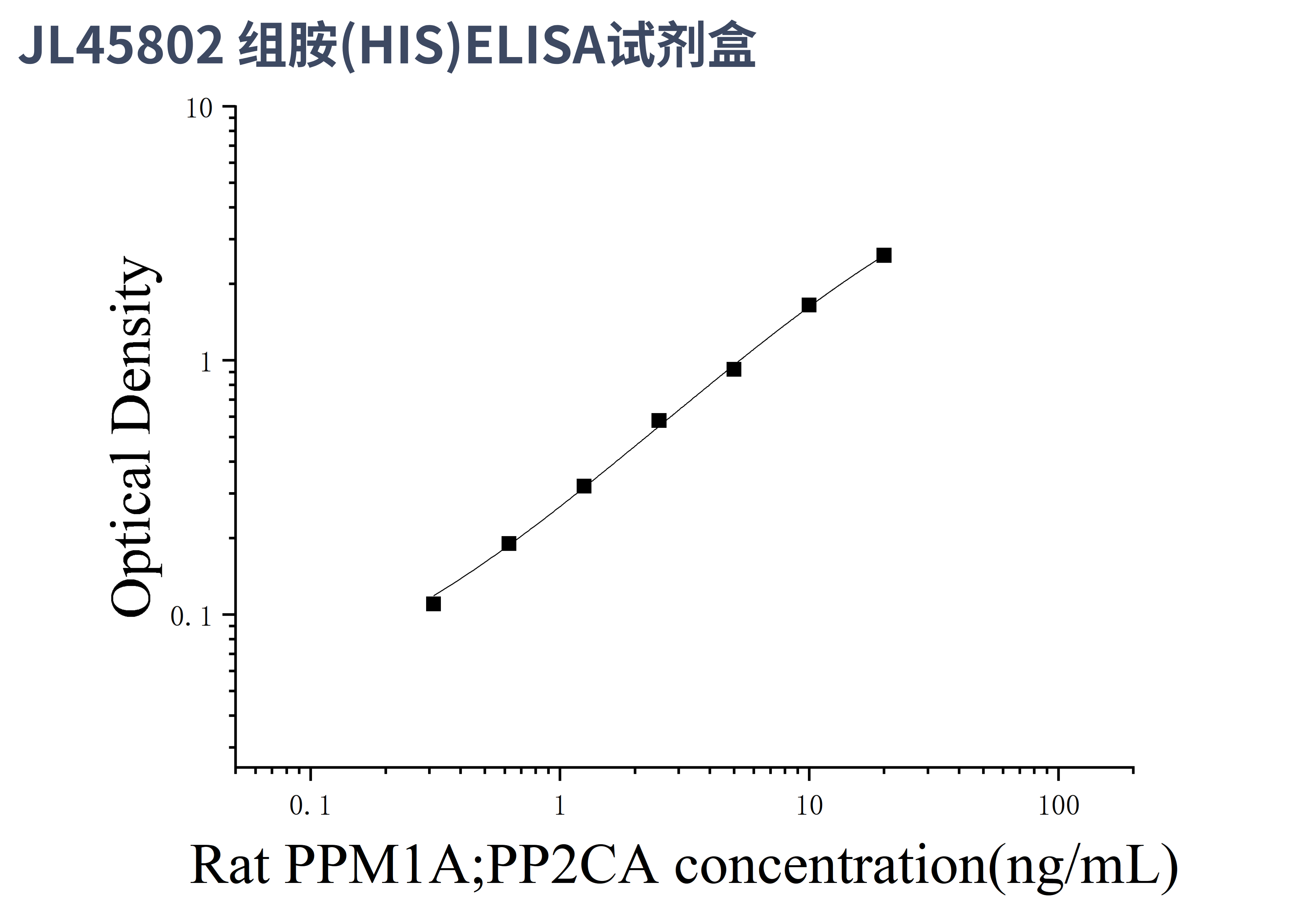 由于实验操作条件的不同( 如操作者、移液技术、洗板技术和稳定条件等),标准曲线的OD值会有所差异。以下数据和曲线仅供参考,实验者需根据自己的实验建立标准曲线。