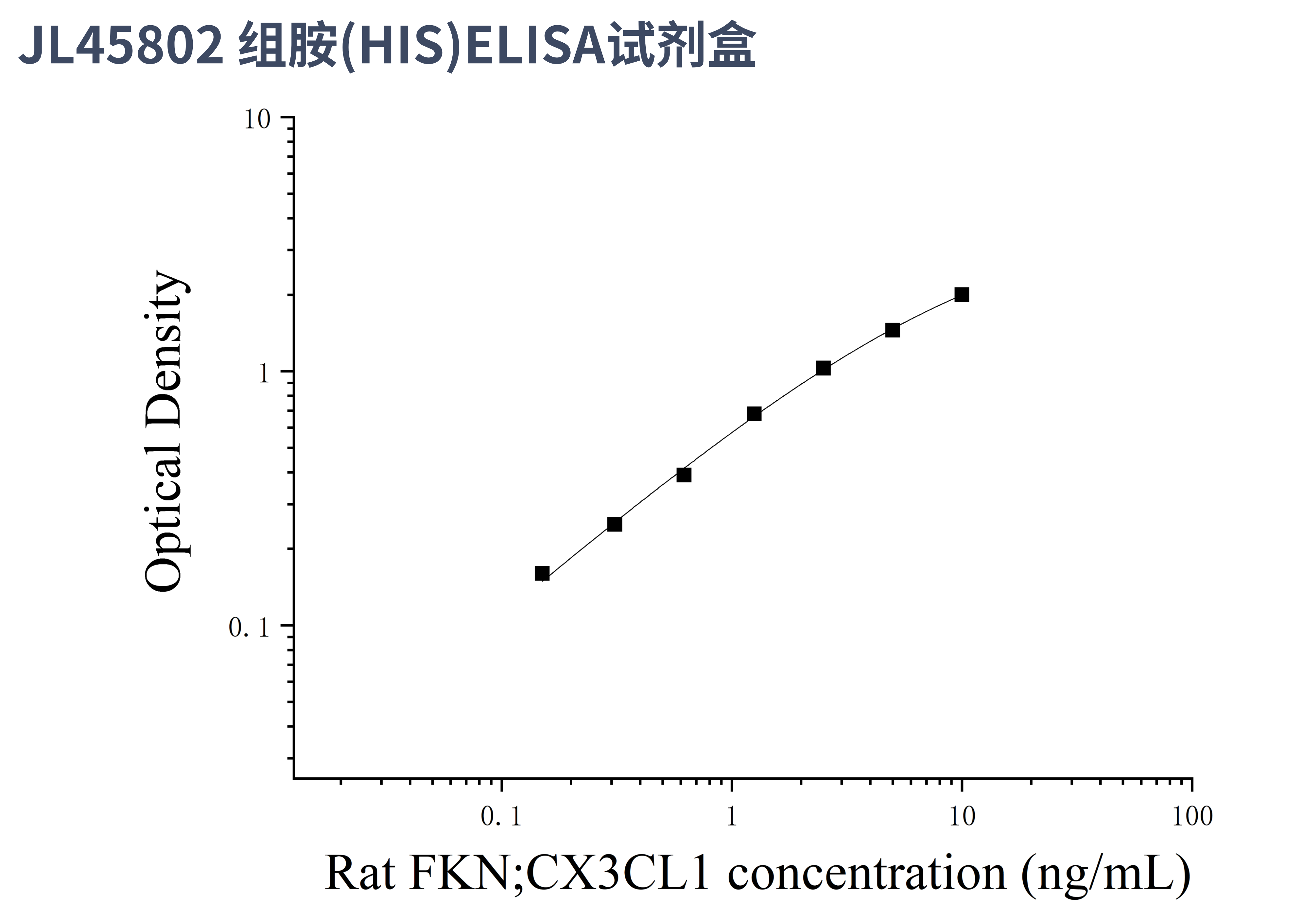 由于实验操作条件的不同( 如操作者、移液技术、洗板技术和稳定条件等),标准曲线的OD值会有所差异。以下数据和曲线仅供参考,实验者需根据自己的实验建立标准曲线。