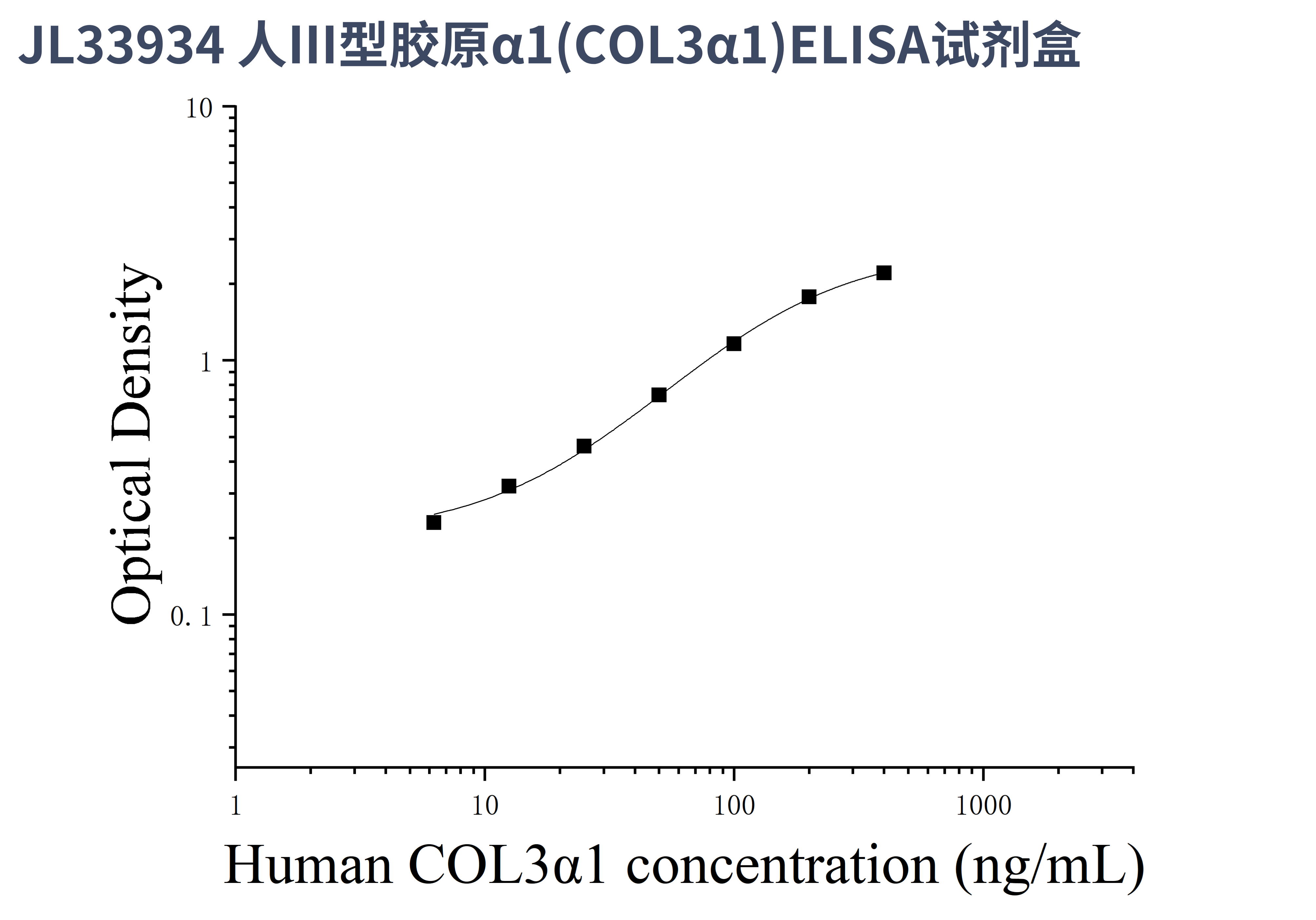 由于实验操作条件的不同( 如操作者、移液技术、洗板技术和稳定条件等),标准曲线的OD值会有所差异。以下数据和曲线仅供参考,实验者需根据自己的实验建立标准曲线。