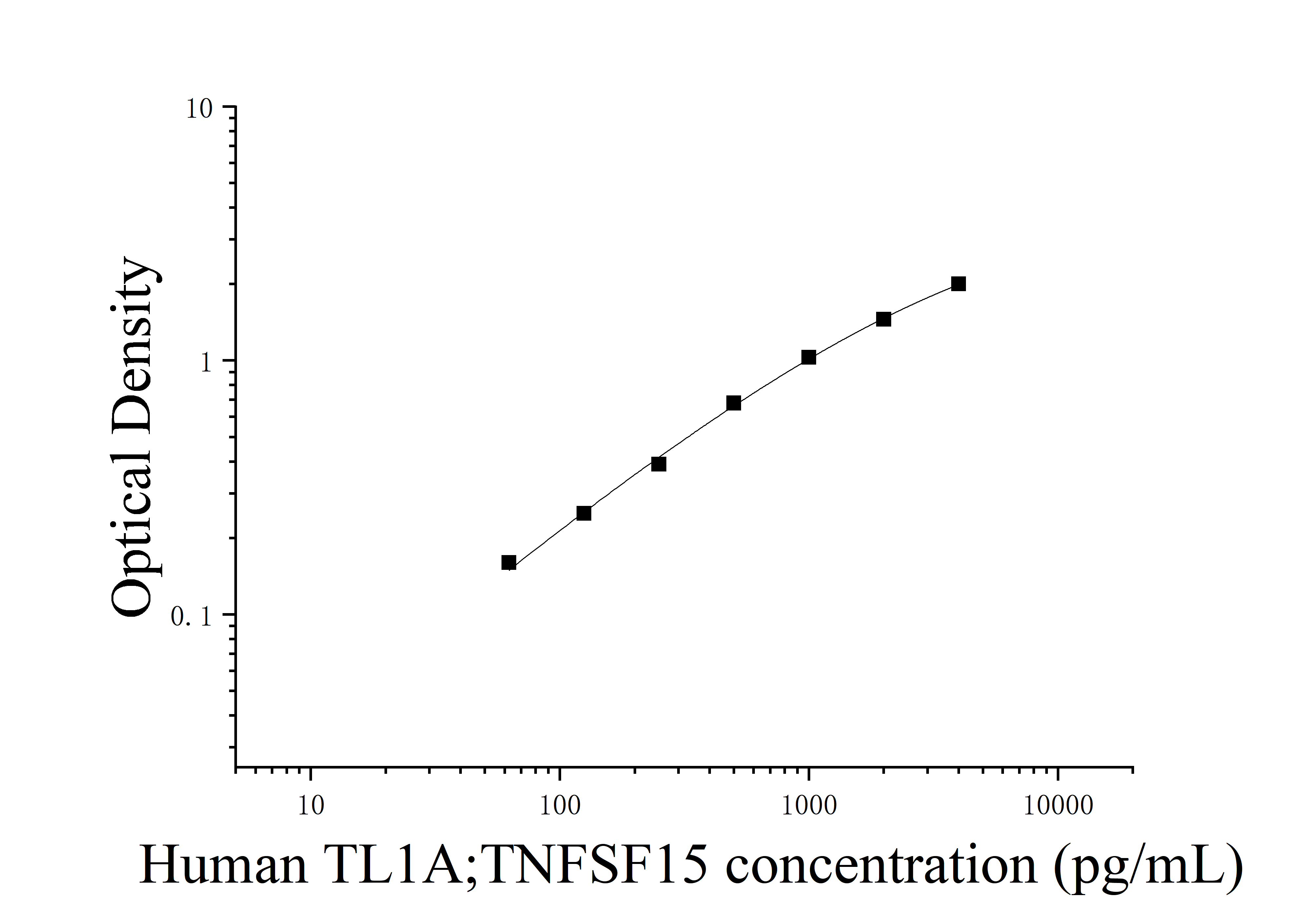由于实验操作条件的不同( 如操作者、移液技术、洗板技术和稳定条件等),标准曲线的OD值会有所差异。以下数据和曲线仅供参考,实验者需根据自己的实验建立标准曲线。