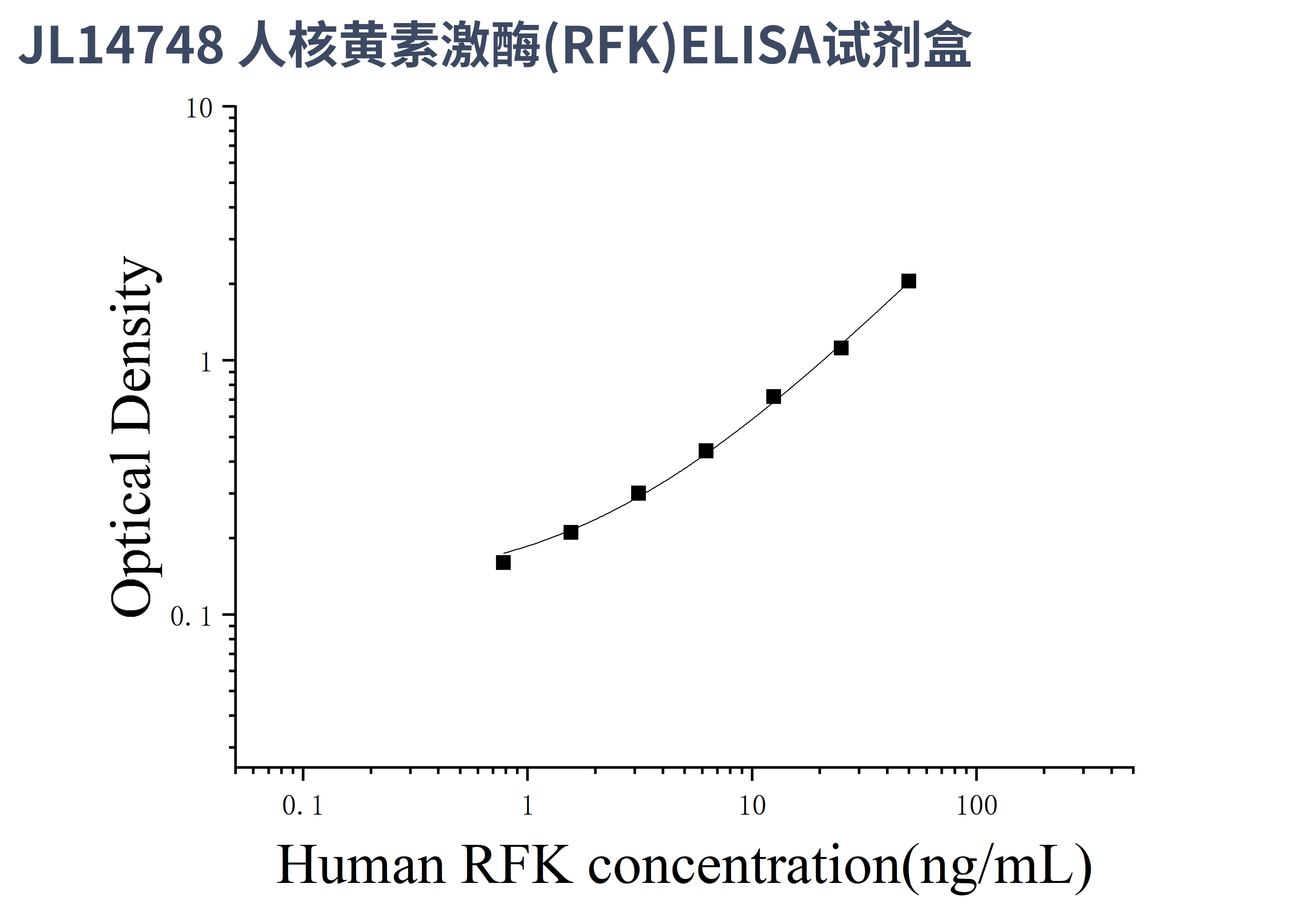 由于实验操作条件的不同( 如操作者、移液技术、洗板技术和稳定条件等),标准曲线的OD值会有所差异。以下数据和曲线仅供参考,实验者需根据自己的实验建立标准曲线。