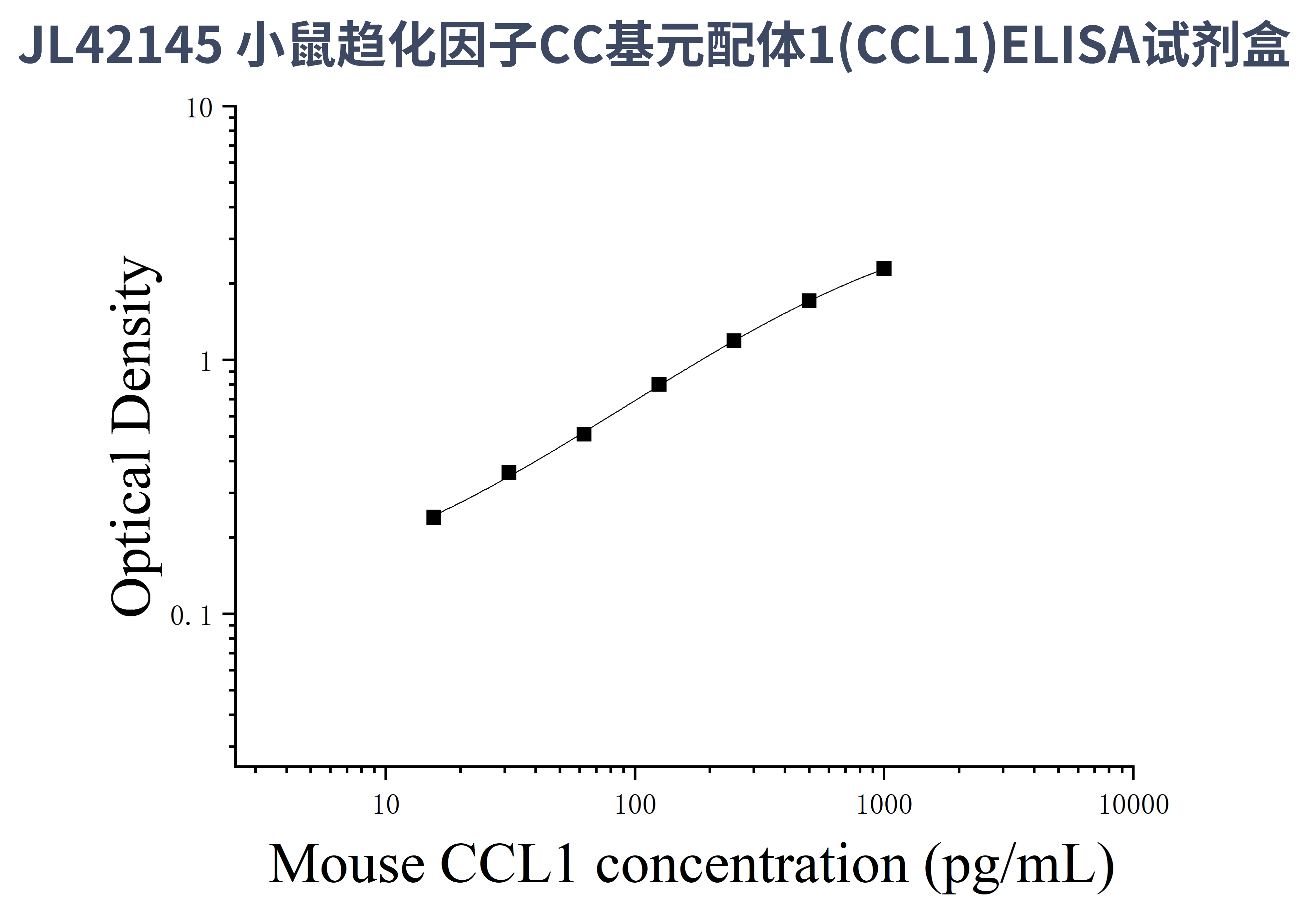 由于实验操作条件的不同( 如操作者、移液技术、洗板技术和稳定条件等),标准曲线的OD值会有所差异。以下数据和曲线仅供参考,实验者需根据自己的实验建立标准曲线。