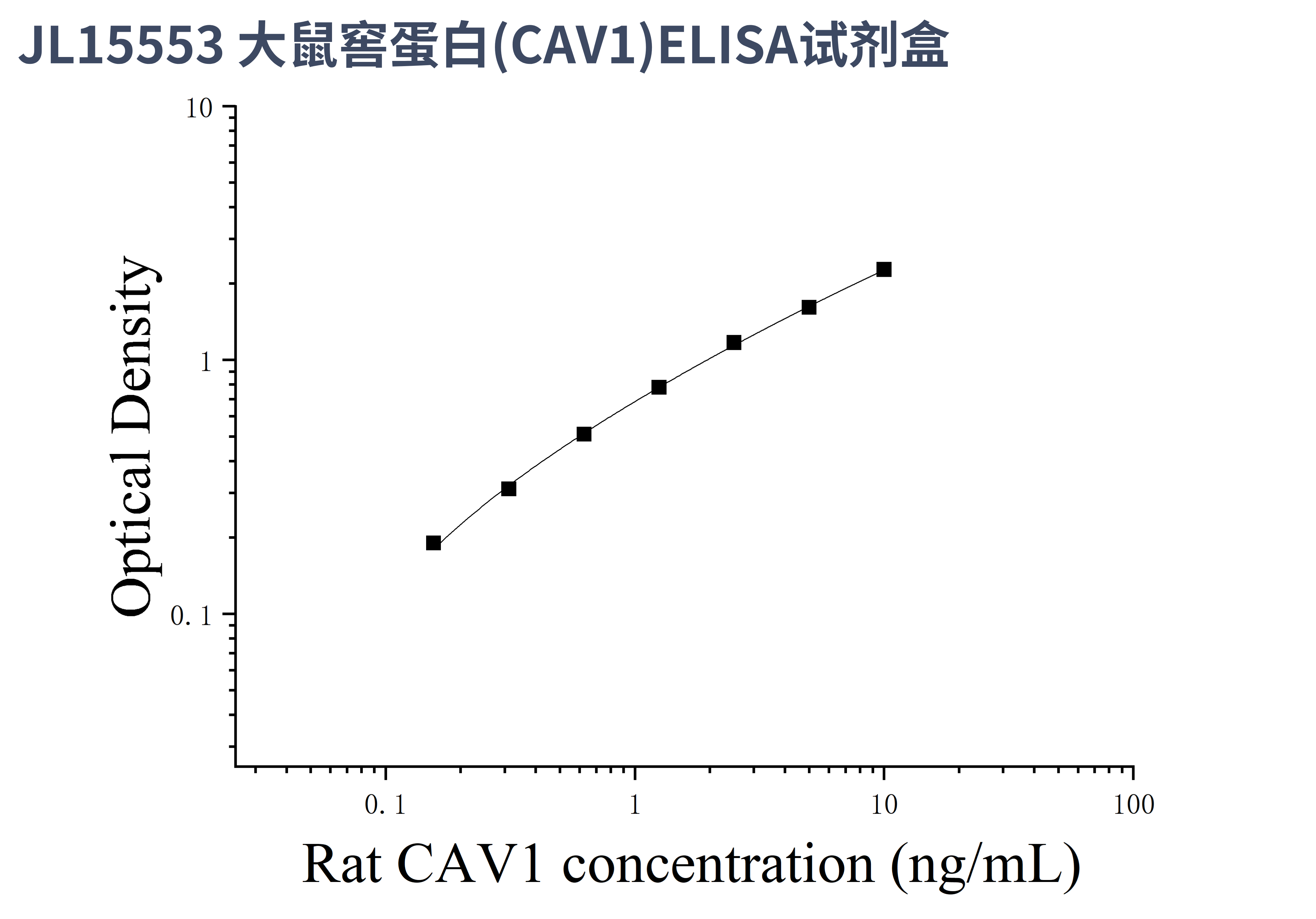 由于实验操作条件的不同( 如操作者、移液技术、洗板技术和稳定条件等),标准曲线的OD值会有所差异。以下数据和曲线仅供参考,实验者需根据自己的实验建立标准曲线。