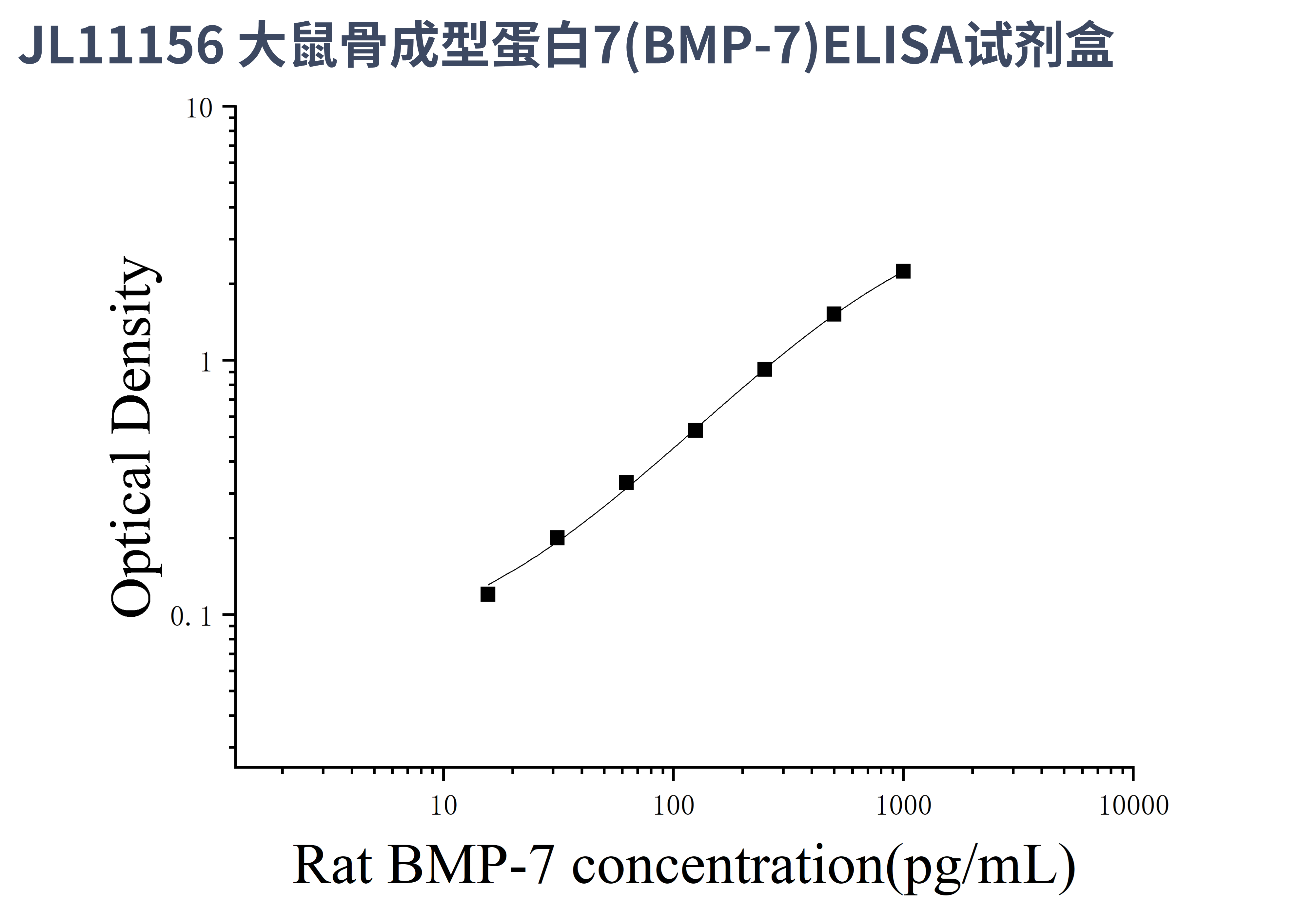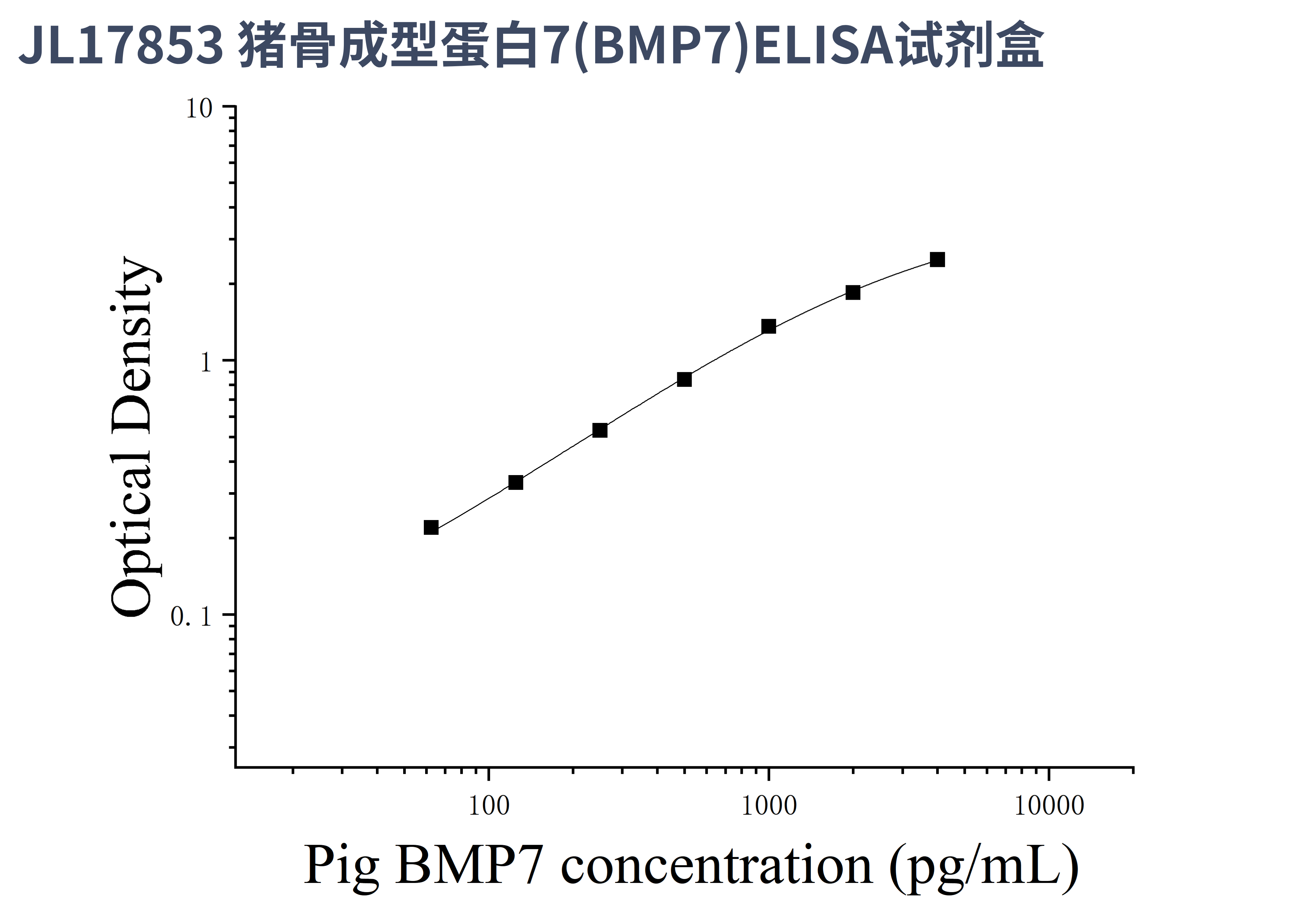 由于实验操作条件的不同( 如操作者、移液技术、洗板技术和稳定条件等),标准曲线的OD值会有所差异。以下数据和曲线仅供参考,实验者需根据自己的实验建立标准曲线。