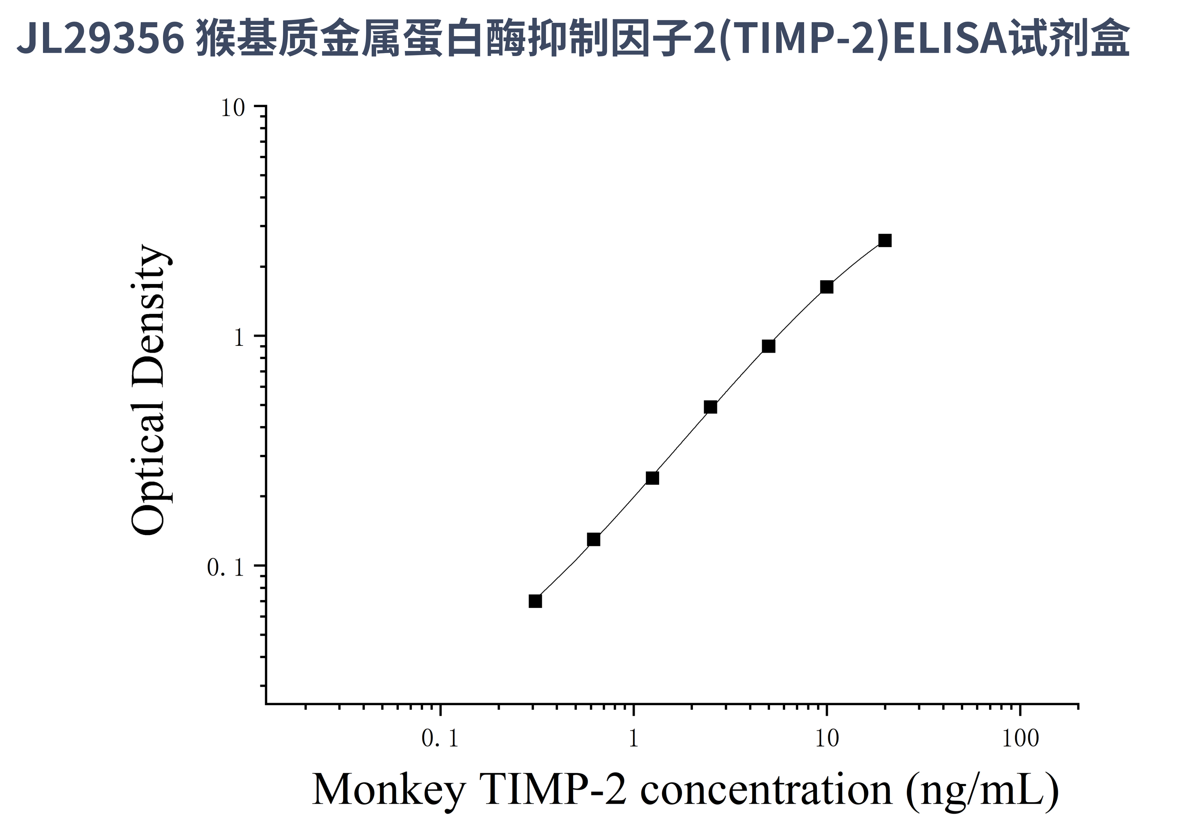 由于实验操作条件的不同( 如操作者、移液技术、洗板技术和稳定条件等),标准曲线的OD值会有所差异。以下数据和曲线仅供参考,实验者需根据自己的实验建立标准曲线。