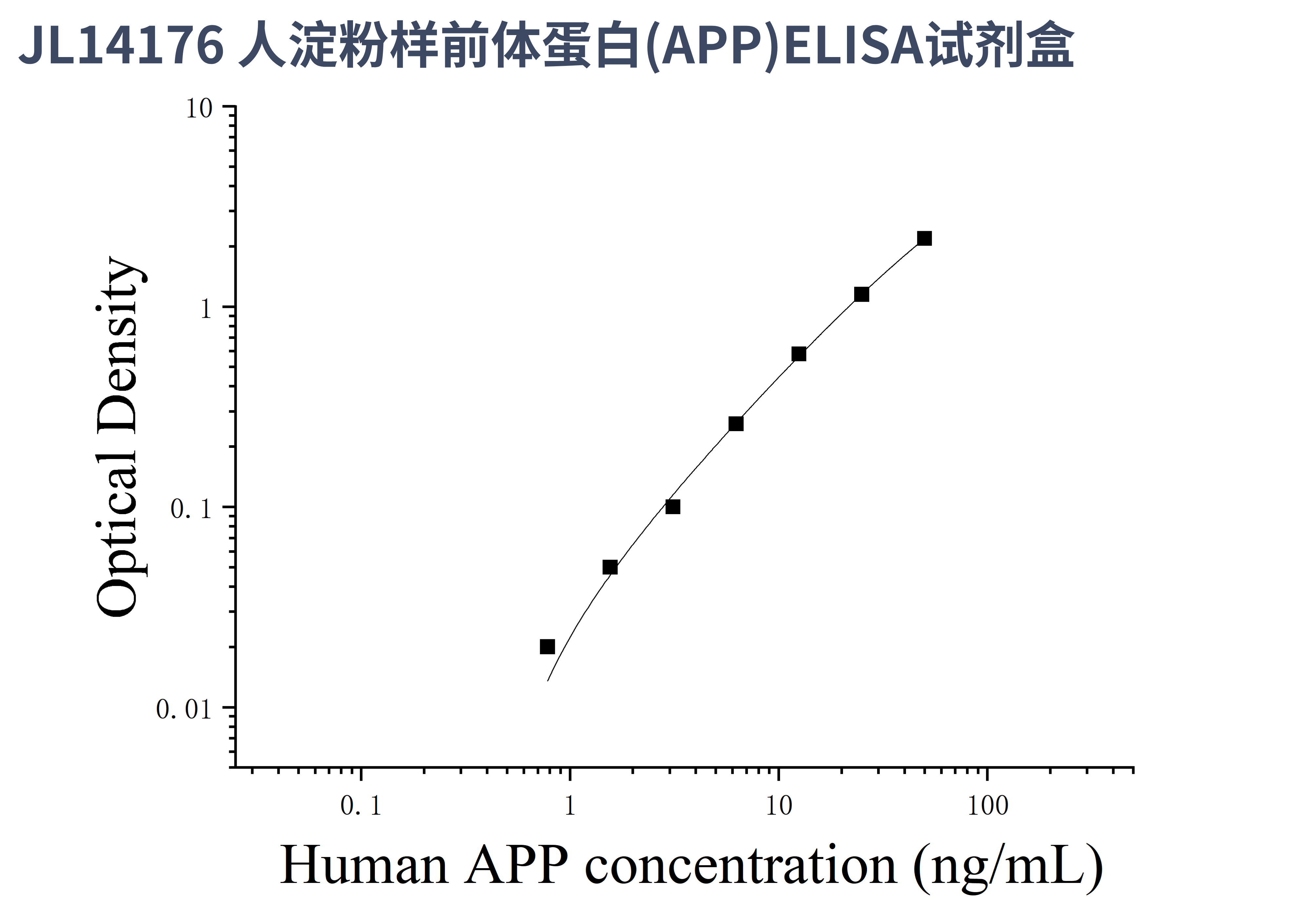 由于实验操作条件的不同( 如操作者、移液技术、洗板技术和稳定条件等),标准曲线的OD值会有所差异。以下数据和曲线仅供参考,实验者需根据自己的实验建立标准曲线。
