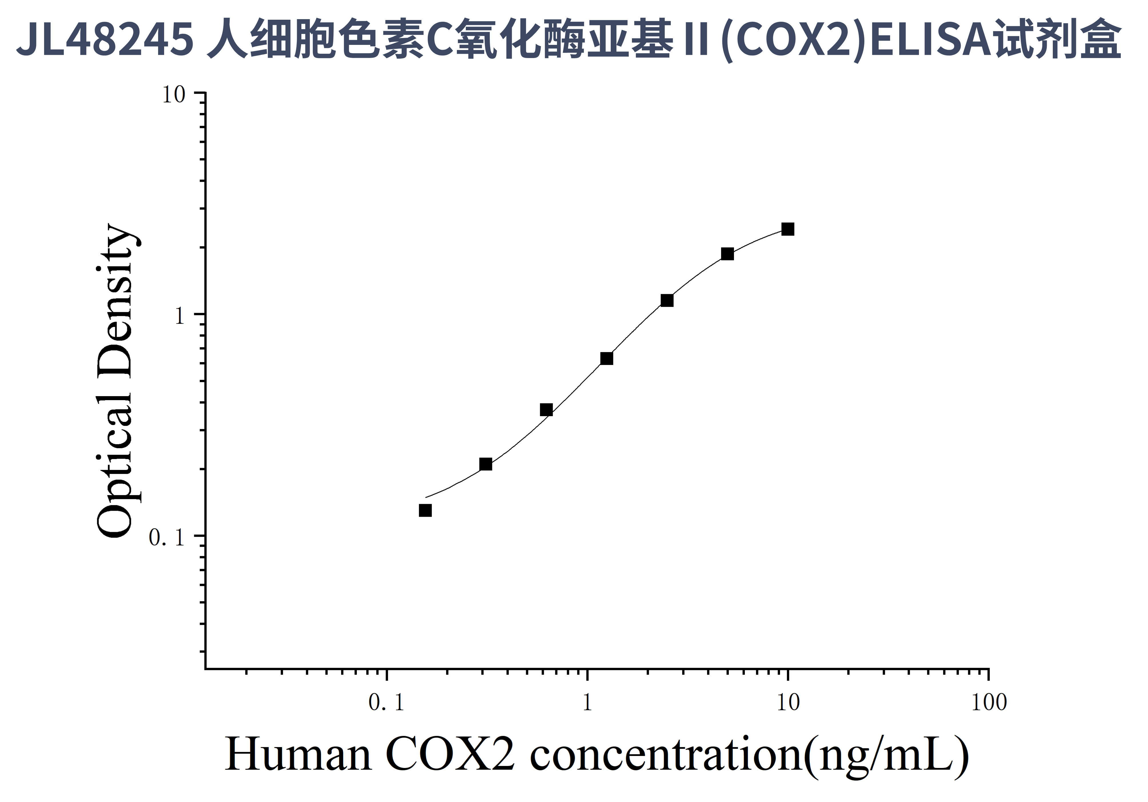 由于实验操作条件的不同( 如操作者、移液技术、洗板技术和稳定条件等),标准曲线的OD值会有所差异。以下数据和曲线仅供参考,实验者需根据自己的实验建立标准曲线。