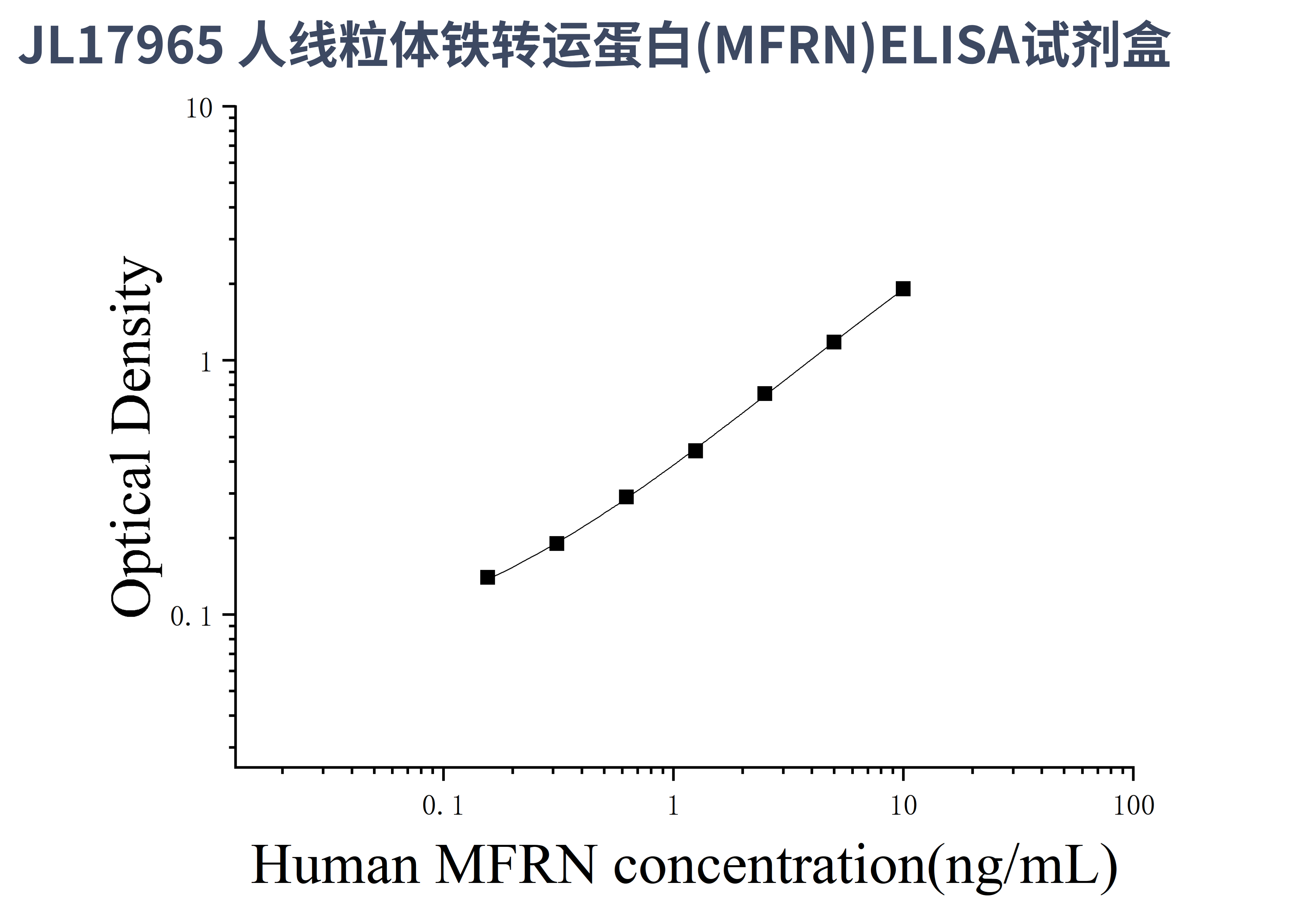 由于实验操作条件的不同( 如操作者、移液技术、洗板技术和稳定条件等),标准曲线的OD值会有所差异。以下数据和曲线仅供参考,实验者需根据自己的实验建立标准曲线。