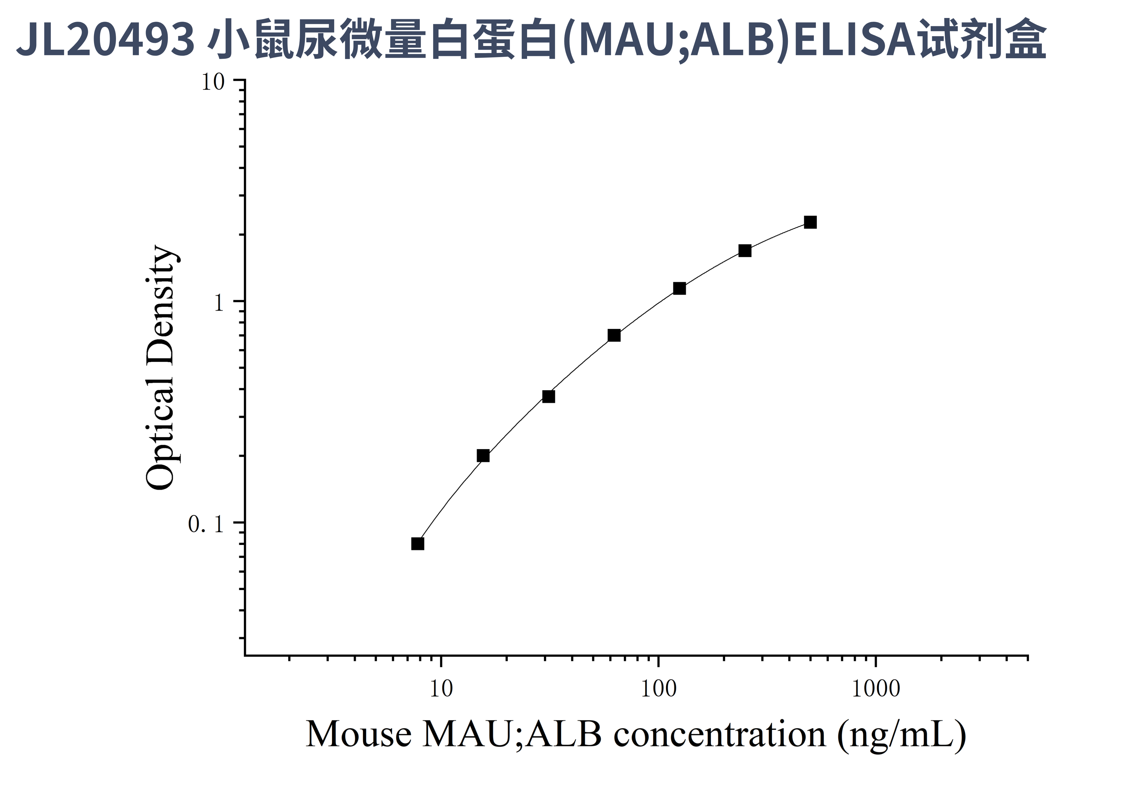 由于实验操作条件的不同( 如操作者、移液技术、洗板技术和稳定条件等),标准曲线的OD值会有所差异。以下数据和曲线仅供参考,实验者需根据自己的实验建立标准曲线。