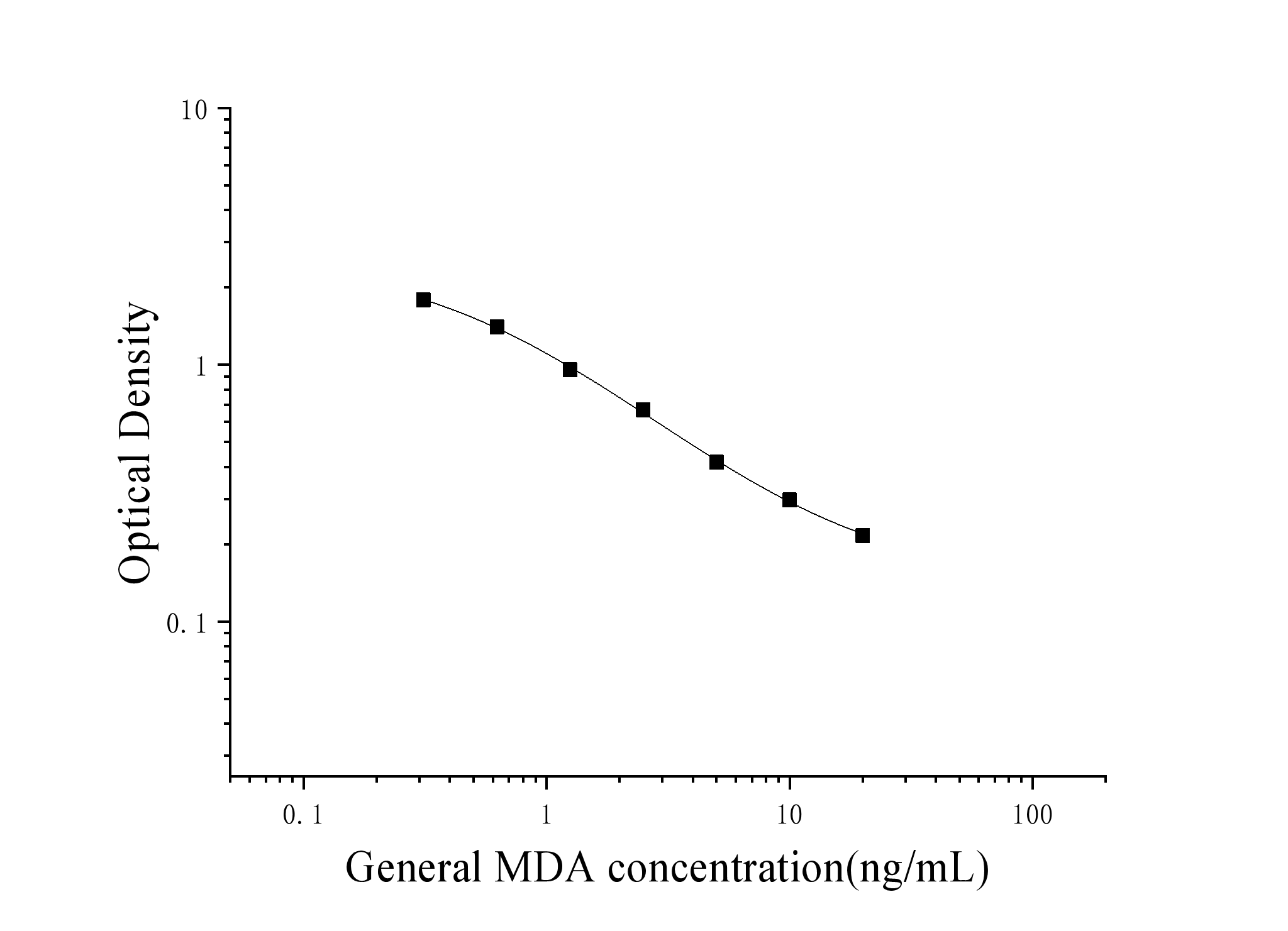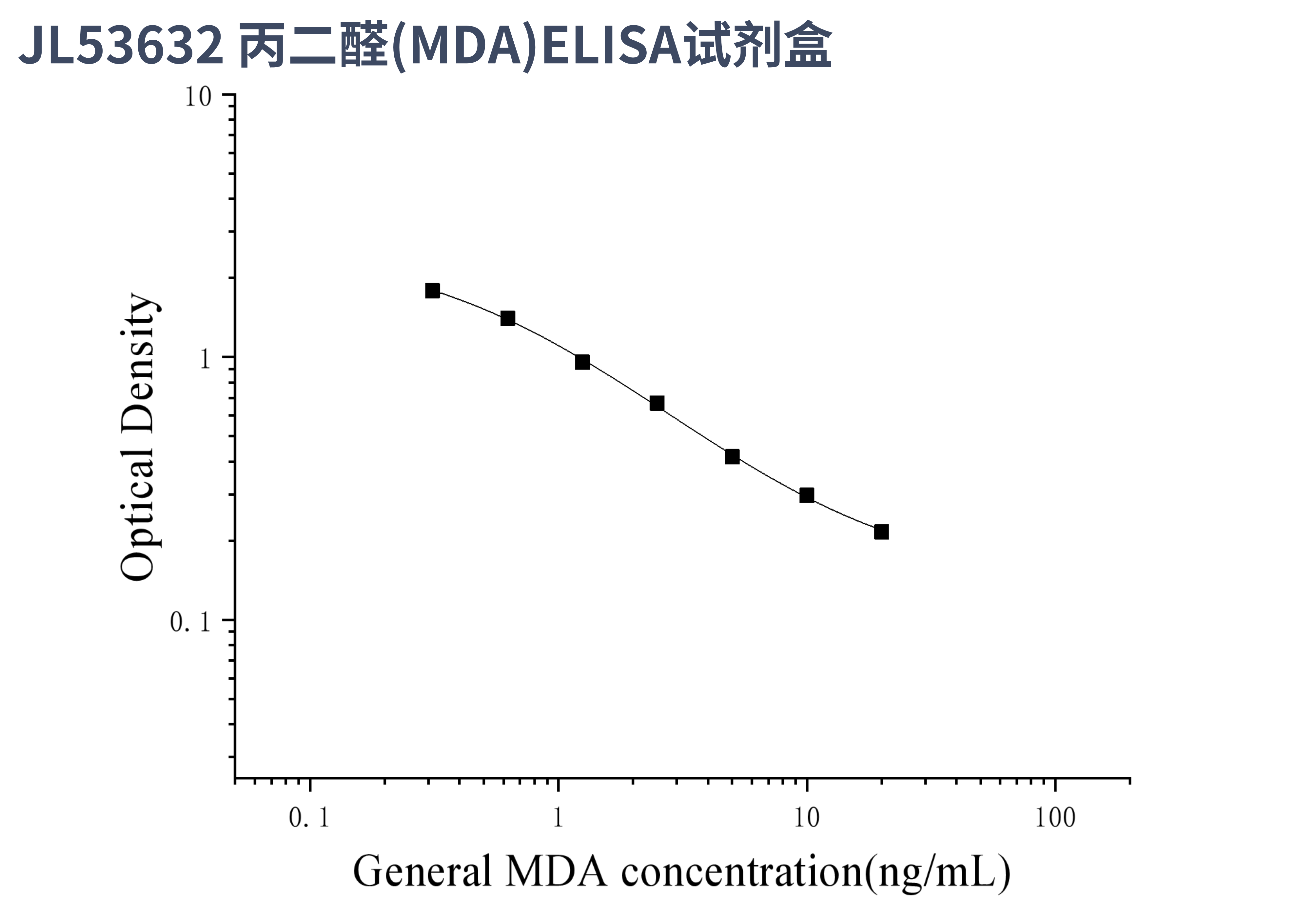 由于实验操作条件的不同( 如操作者、移液技术、洗板技术和稳定条件等),标准曲线的OD值会有所差异。以下数据和曲线仅供参考,实验者需根据自己的实验建立标准曲线。