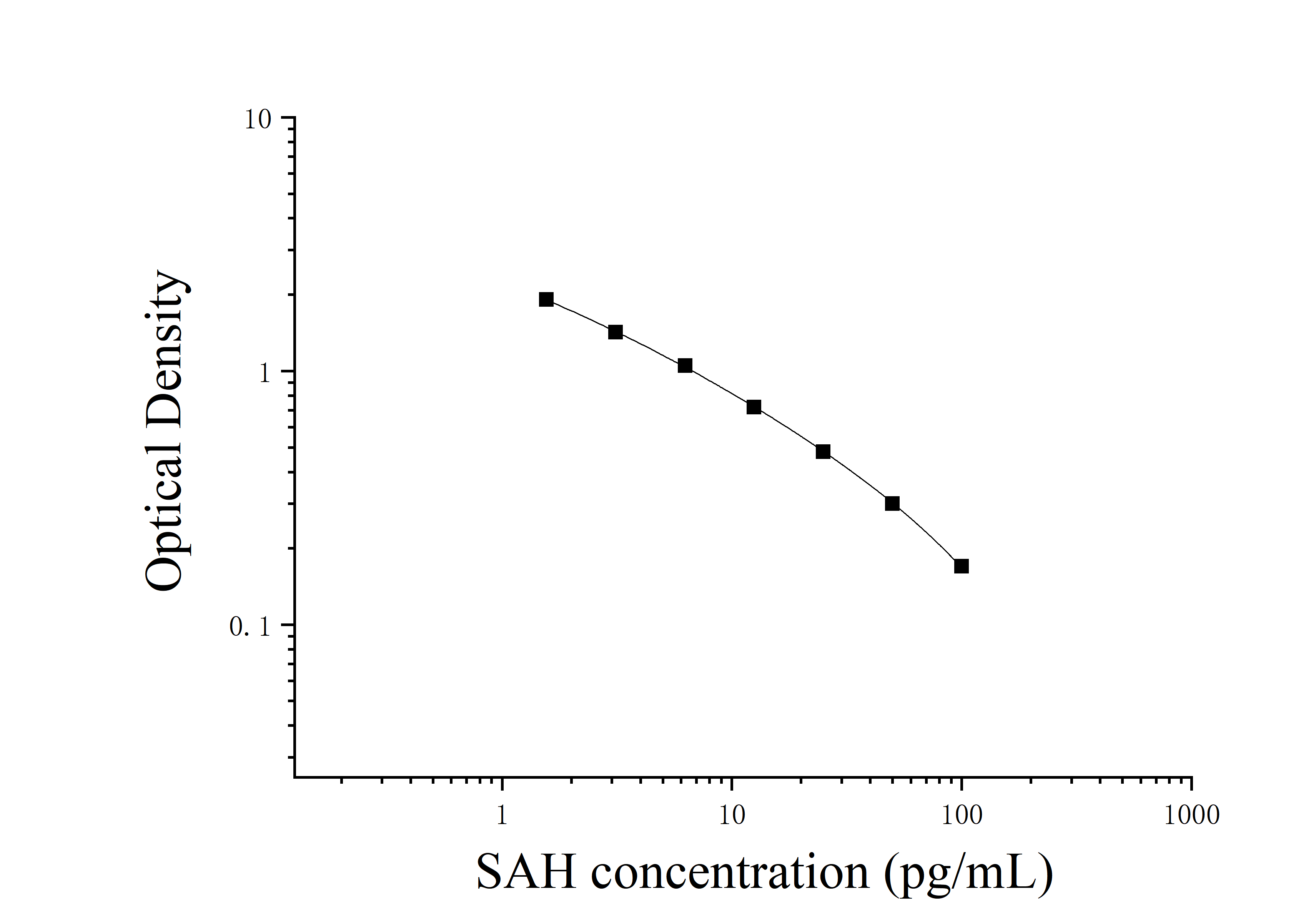 由于实验操作条件的不同( 如操作者、移液技术、洗板技术和稳定条件等),标准曲线的OD值会有所差异。以下数据和曲线仅供参考,实验者需根据自己的实验建立标准曲线。