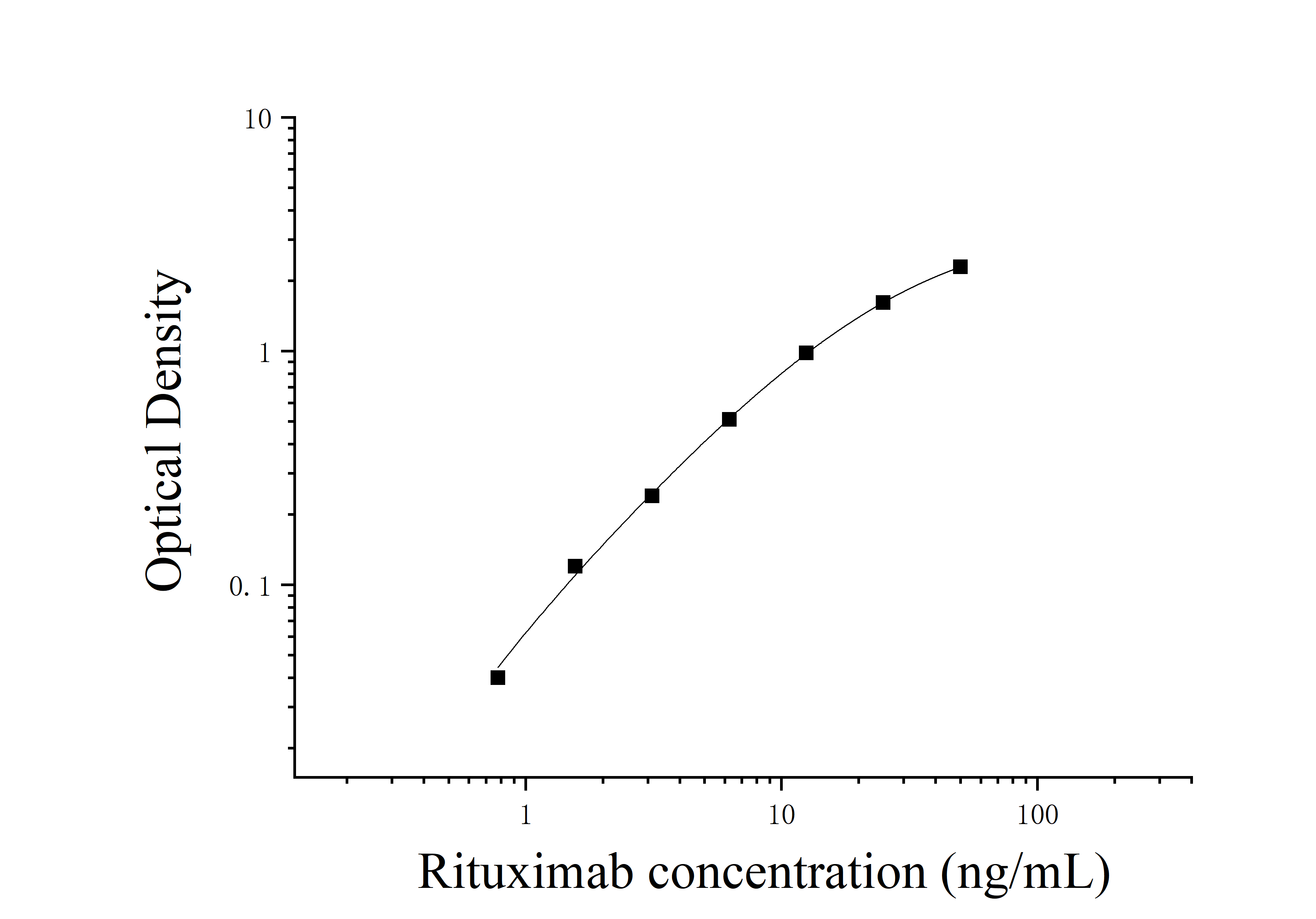 由于实验操作条件的不同( 如操作者、移液技术、洗板技术和稳定条件等),标准曲线的OD值会有所差异。以下数据和曲线仅供参考,实验者需根据自己的实验建立标准曲线。