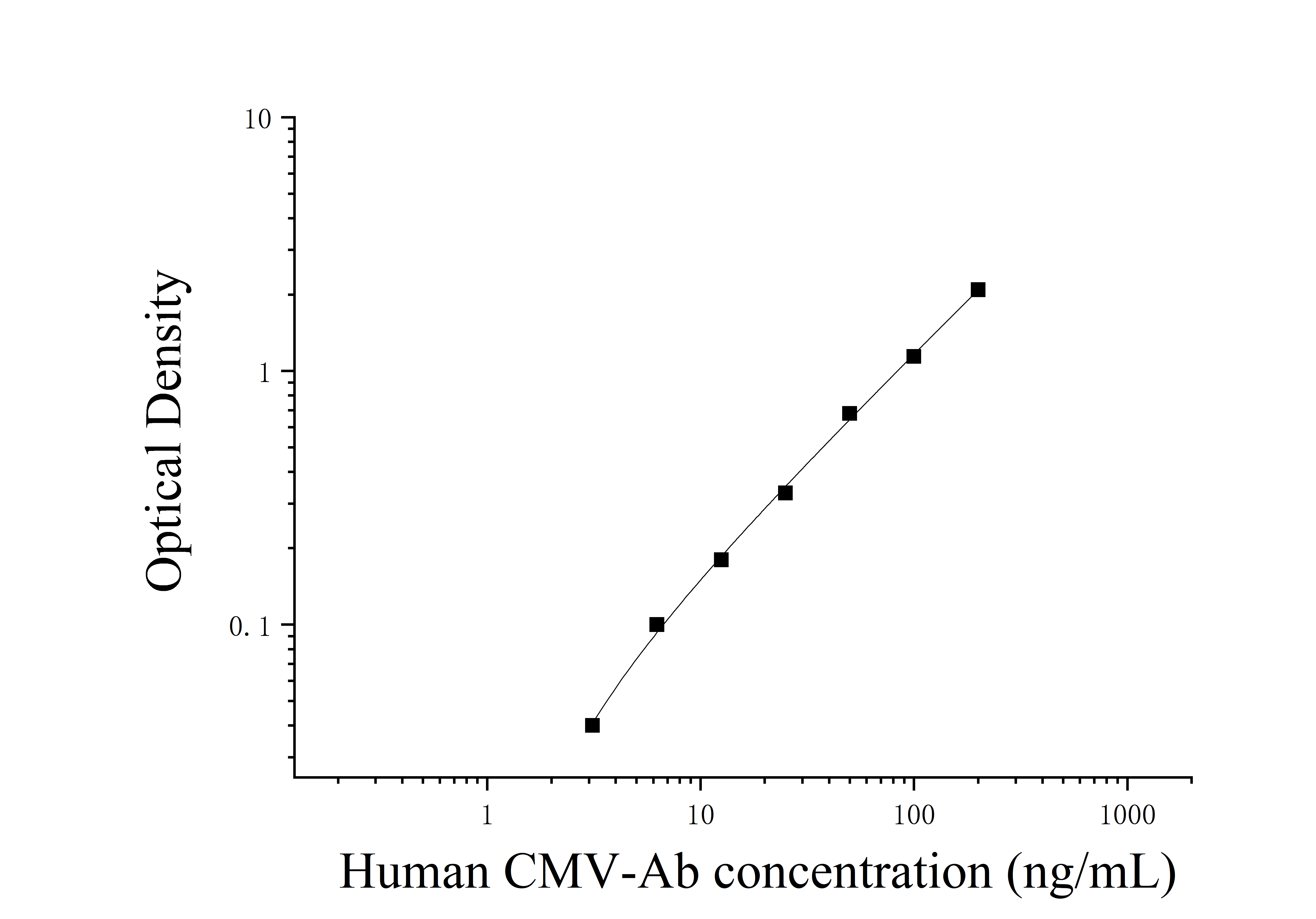 由于实验操作条件的不同( 如操作者、移液技术、洗板技术和稳定条件等),标准曲线的OD值会有所差异。以下数据和曲线仅供参考,实验者需根据自己的实验建立标准曲线。