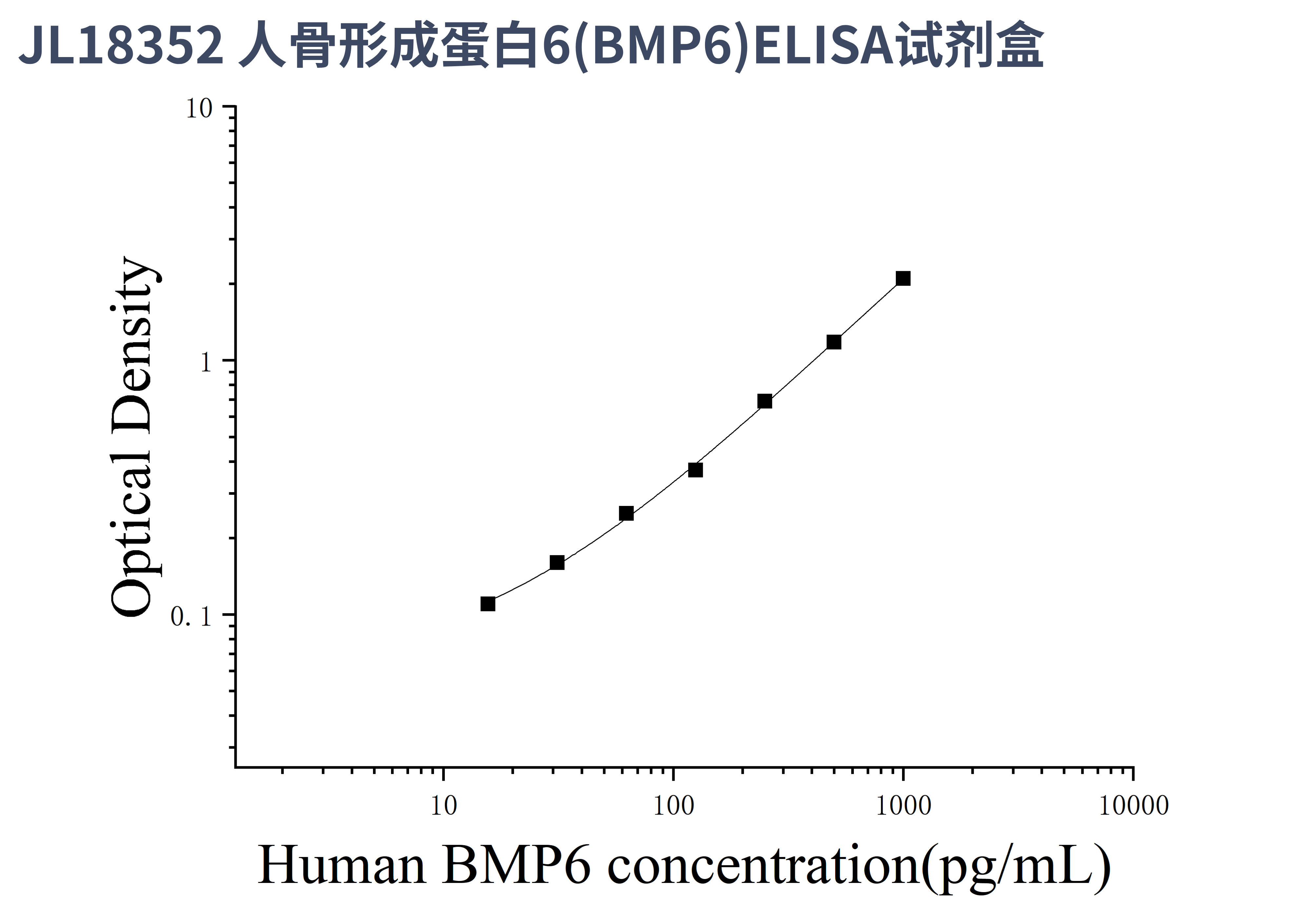 由于实验操作条件的不同( 如操作者、移液技术、洗板技术和稳定条件等),标准曲线的OD值会有所差异。以下数据和曲线仅供参考,实验者需根据自己的实验建立标准曲线。