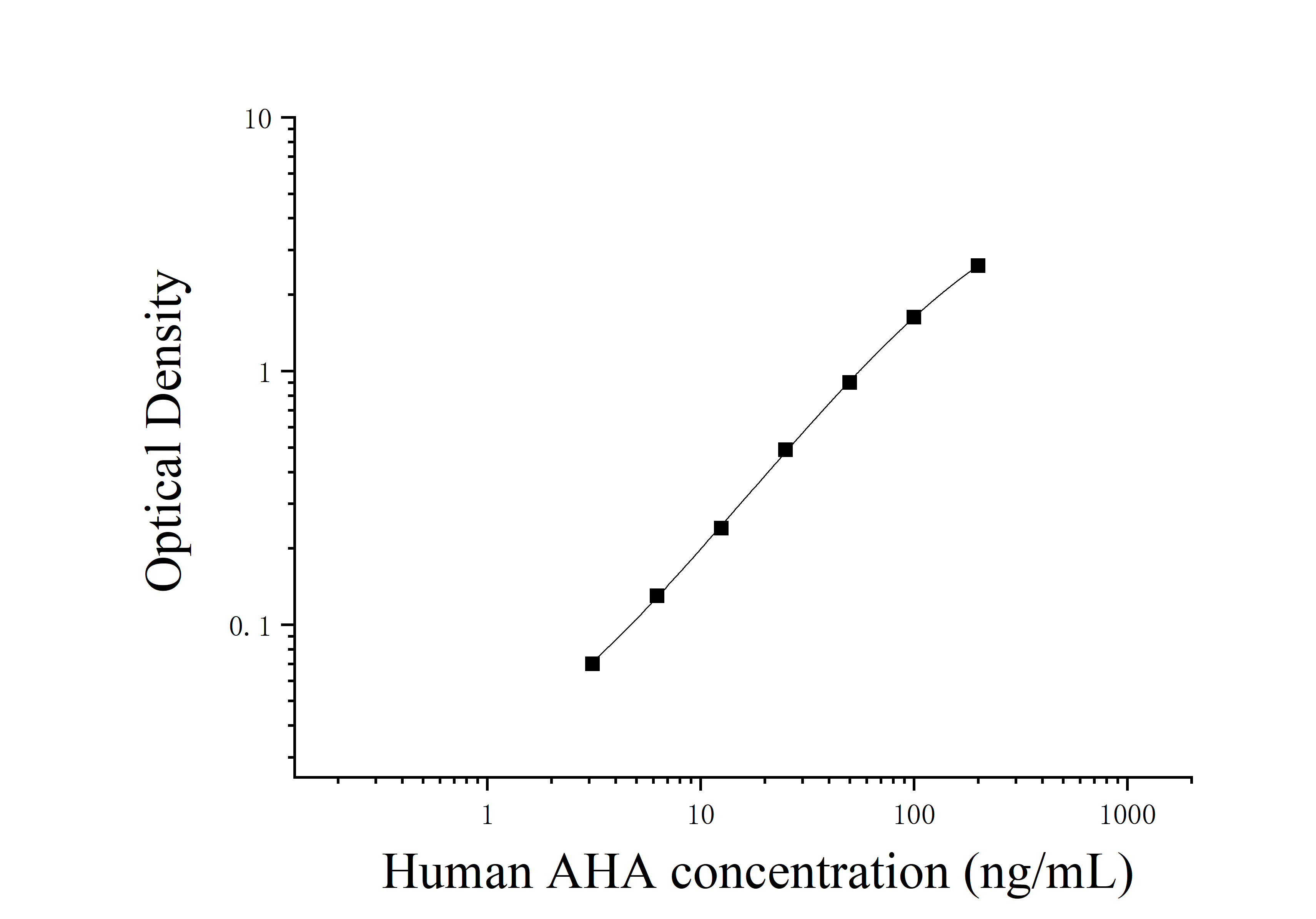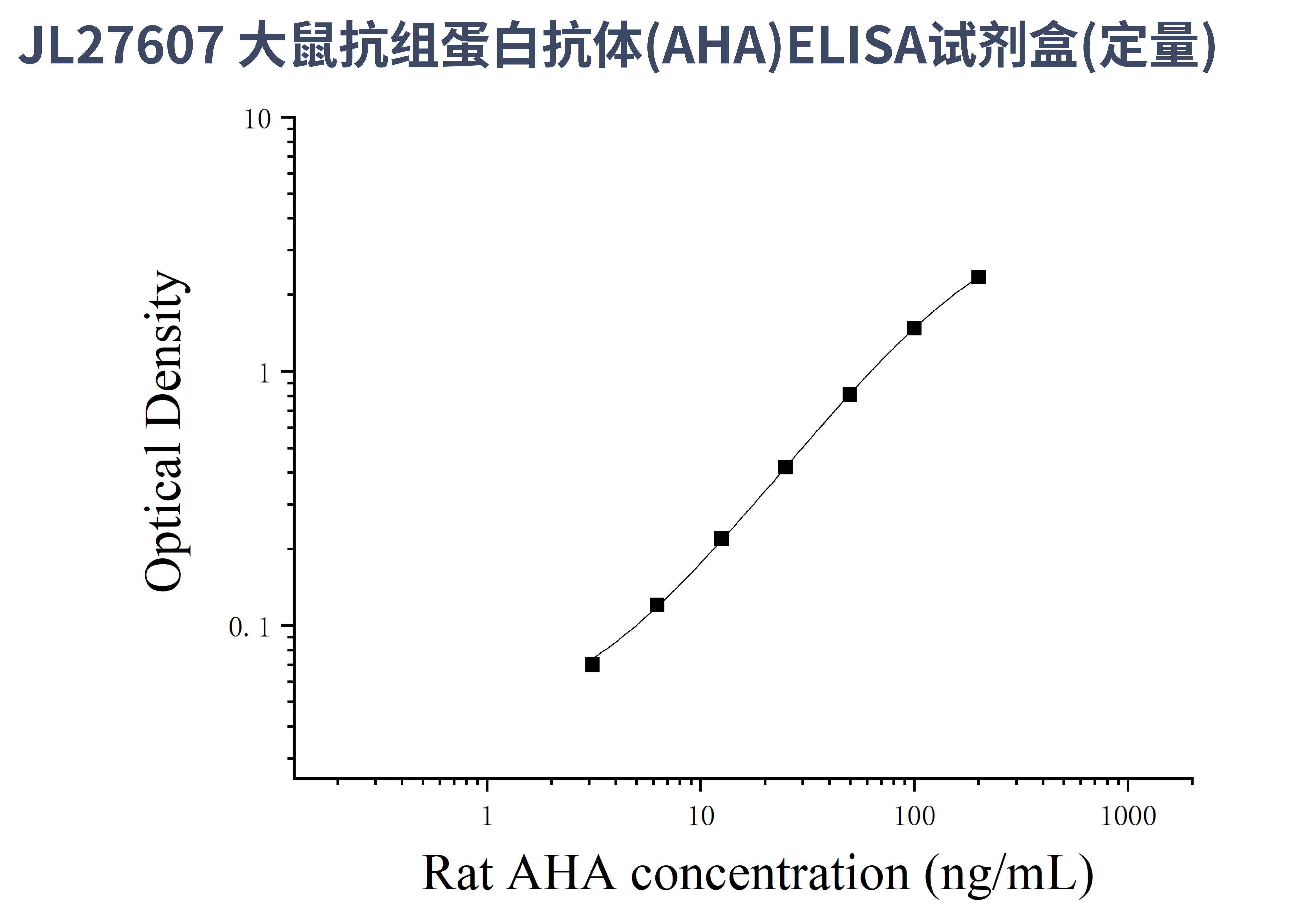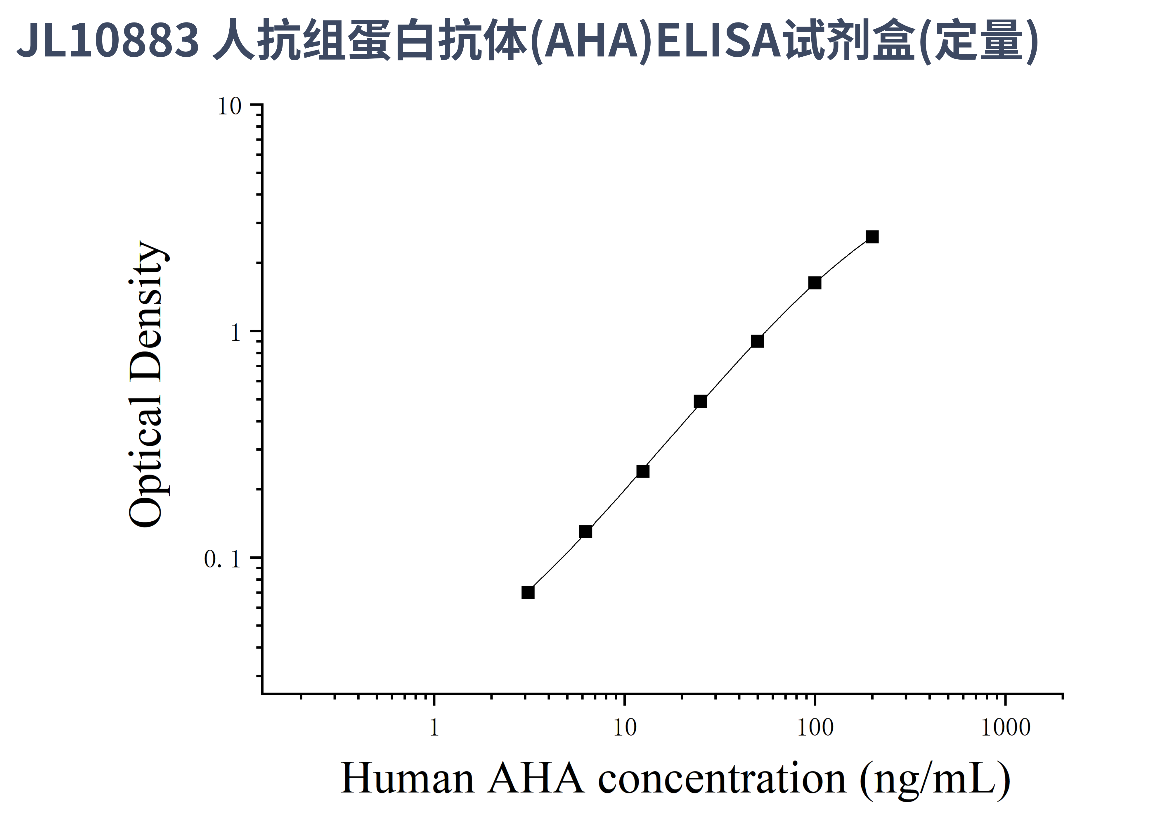 由于实验操作条件的不同( 如操作者、移液技术、洗板技术和稳定条件等),标准曲线的OD值会有所差异。以下数据和曲线仅供参考,实验者需根据自己的实验建立标准曲线。