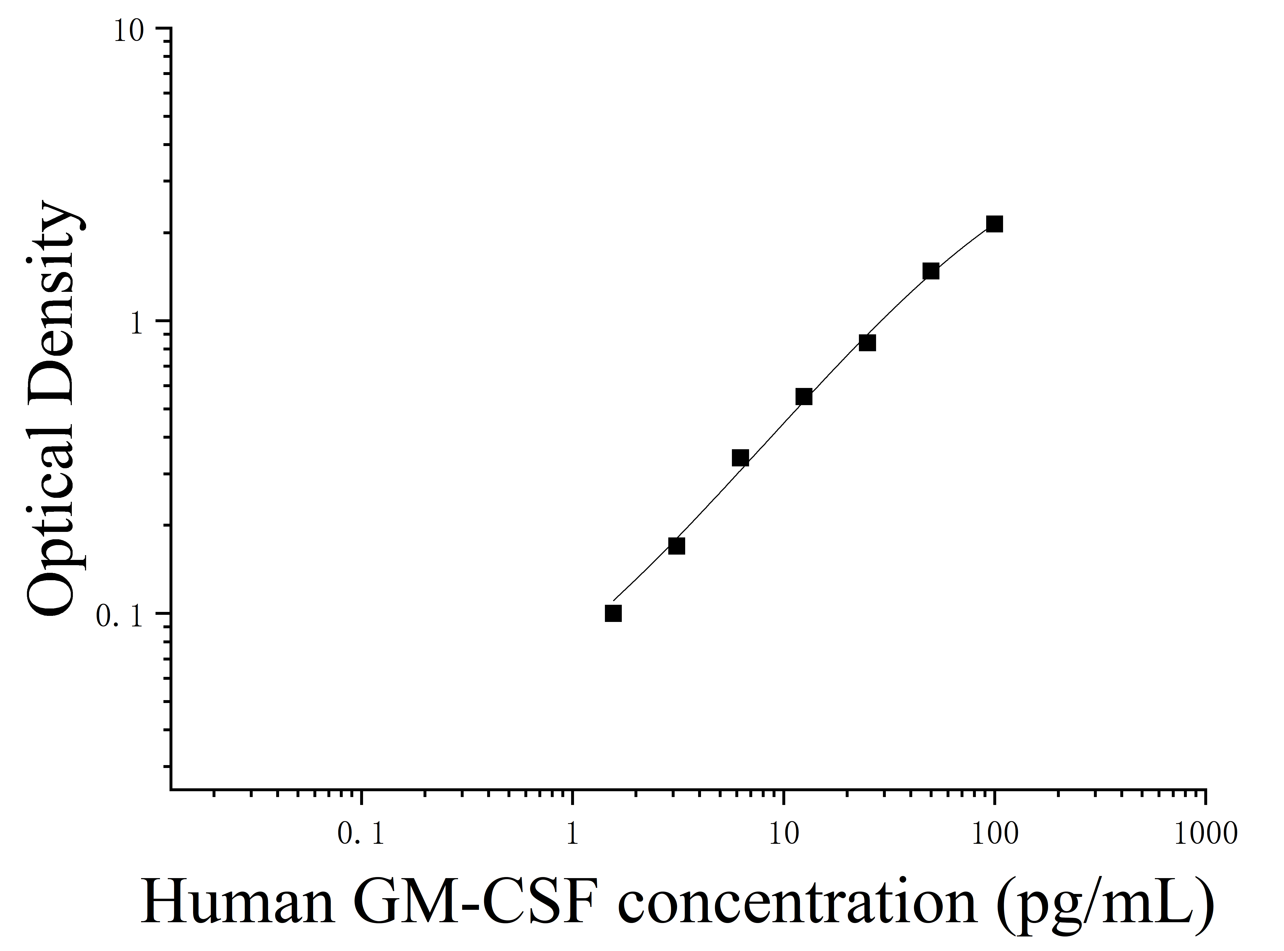 由于实验操作条件的不同( 如操作者、移液技术、洗板技术和稳定条件等),标准曲线的OD值会有所差异。以下数据和曲线仅供参考,实验者需根据自己的实验建立标准曲线。