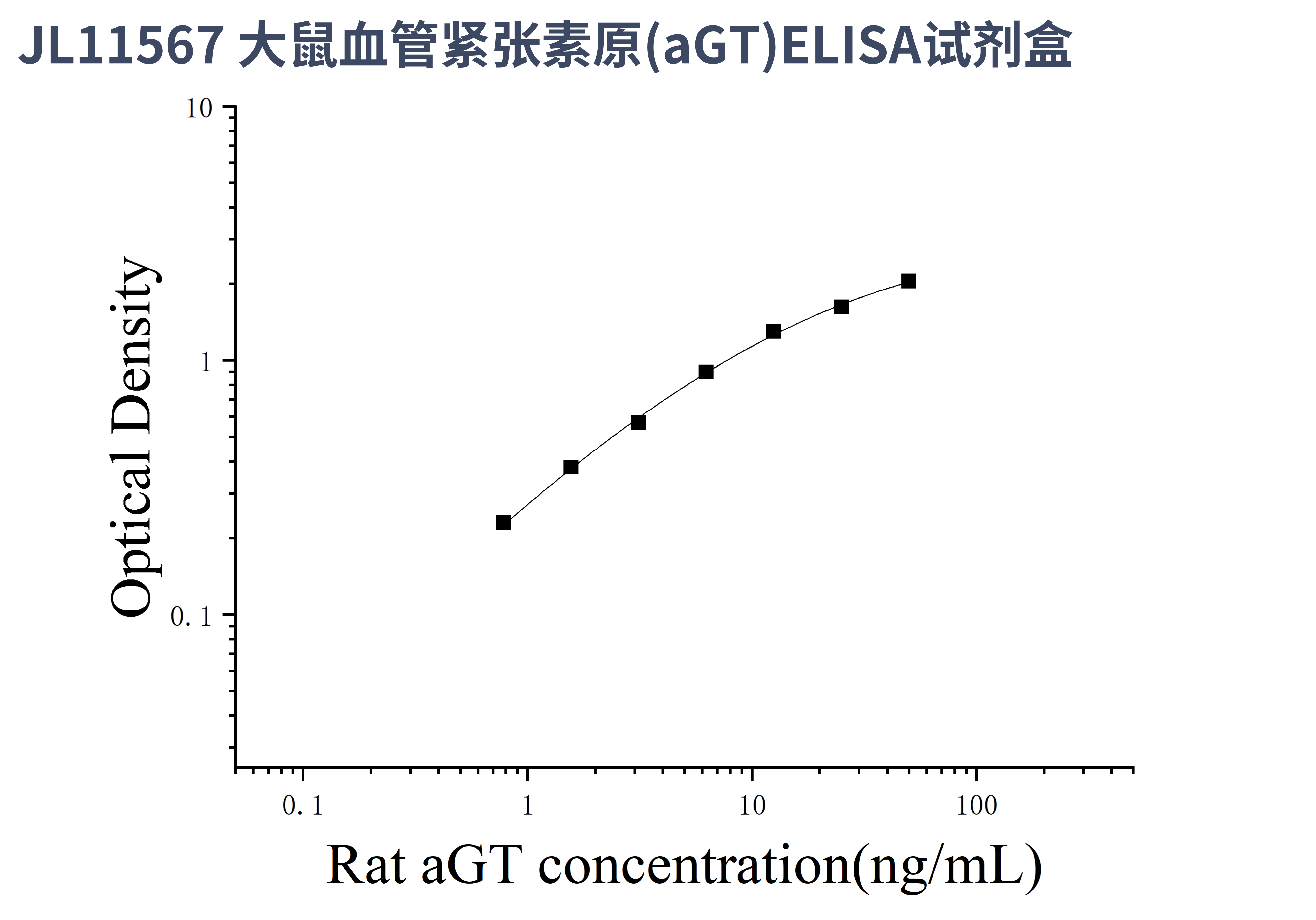 由于实验操作条件的不同( 如操作者、移液技术、洗板技术和稳定条件等),标准曲线的OD值会有所差异。以下数据和曲线仅供参考,实验者需根据自己的实验建立标准曲线。