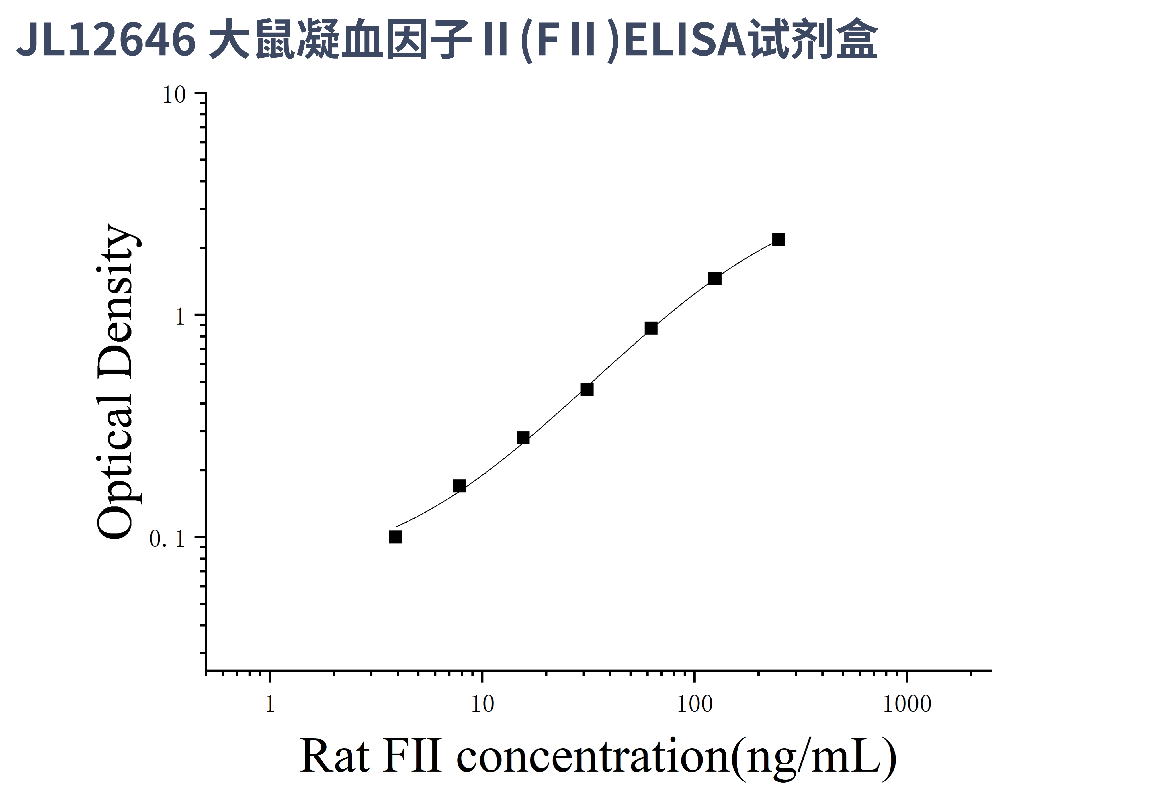 由于实验操作条件的不同( 如操作者、移液技术、洗板技术和稳定条件等),标准曲线的OD值会有所差异。以下数据和曲线仅供参考,实验者需根据自己的实验建立标准曲线。