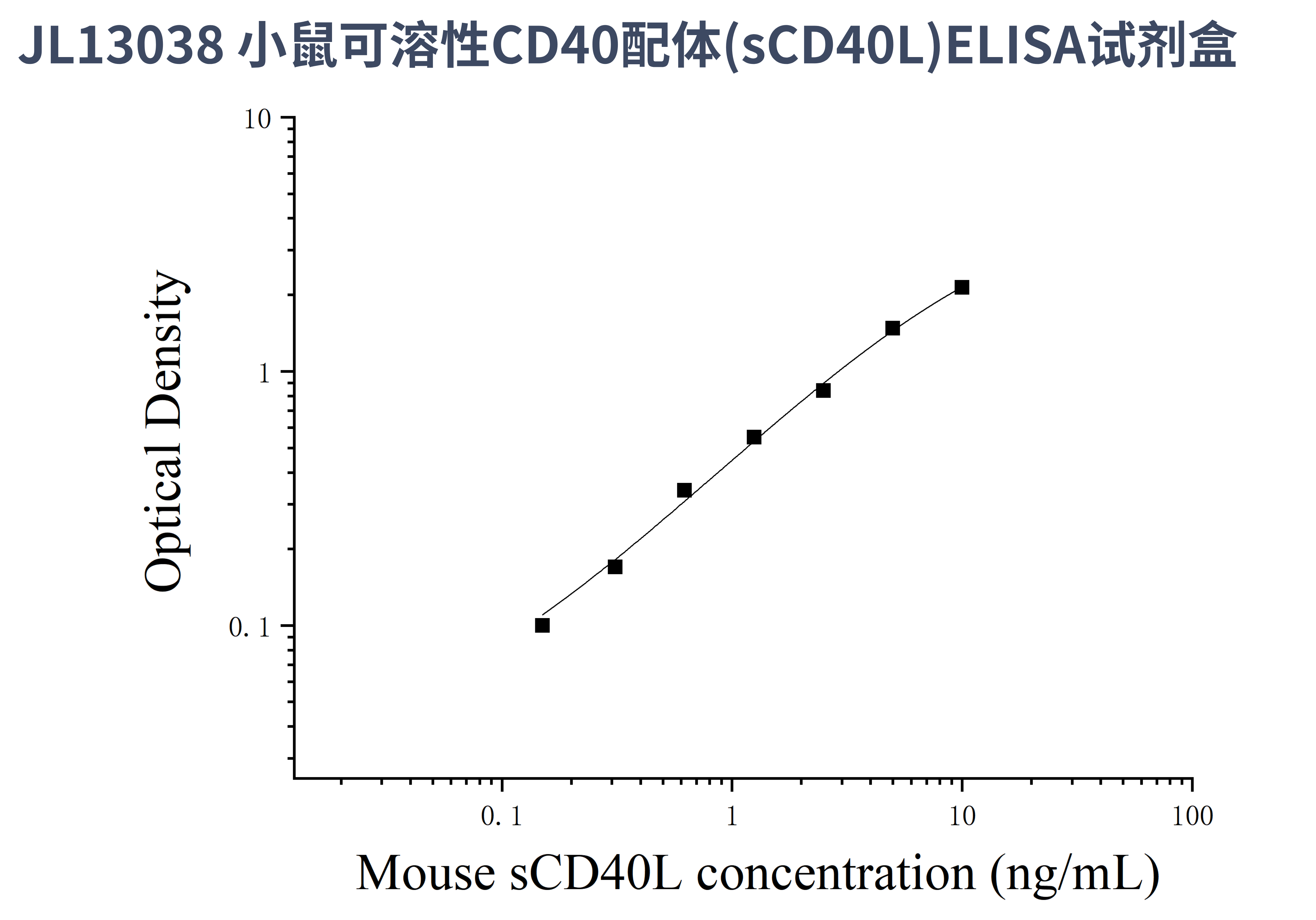 由于实验操作条件的不同( 如操作者、移液技术、洗板技术和稳定条件等),标准曲线的OD值会有所差异。以下数据和曲线仅供参考,实验者需根据自己的实验建立标准曲线。