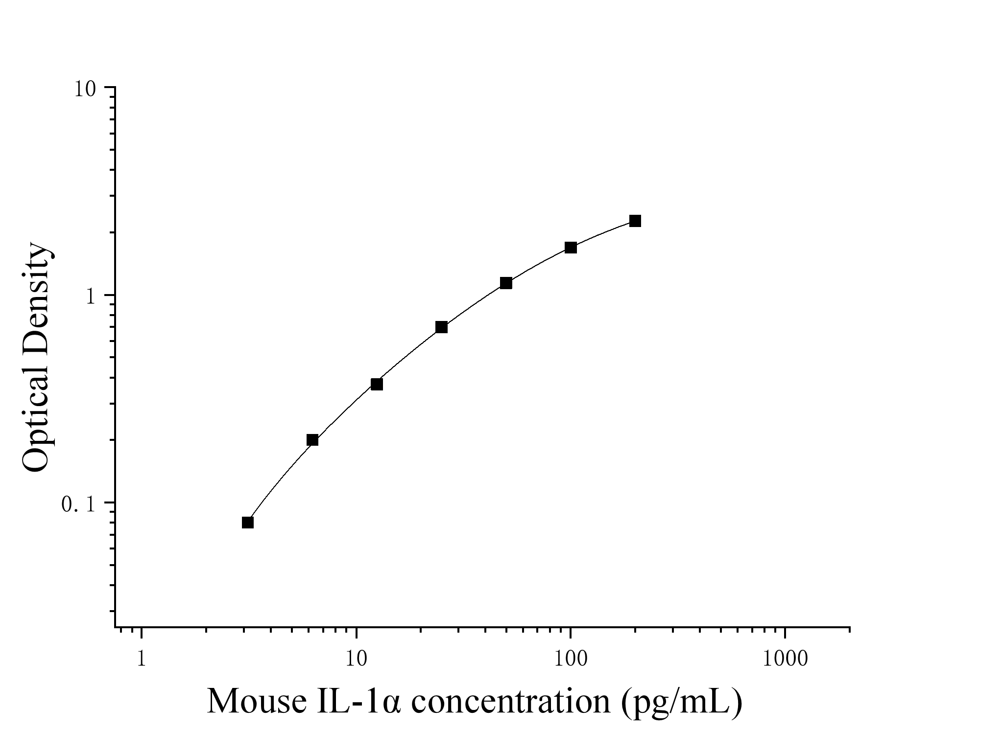 由于实验操作条件的不同( 如操作者、移液技术、洗板技术和稳定条件等),标准曲线的OD值会有所差异。以下数据和曲线仅供参考,实验者需根据自己的实验建立标准曲线。