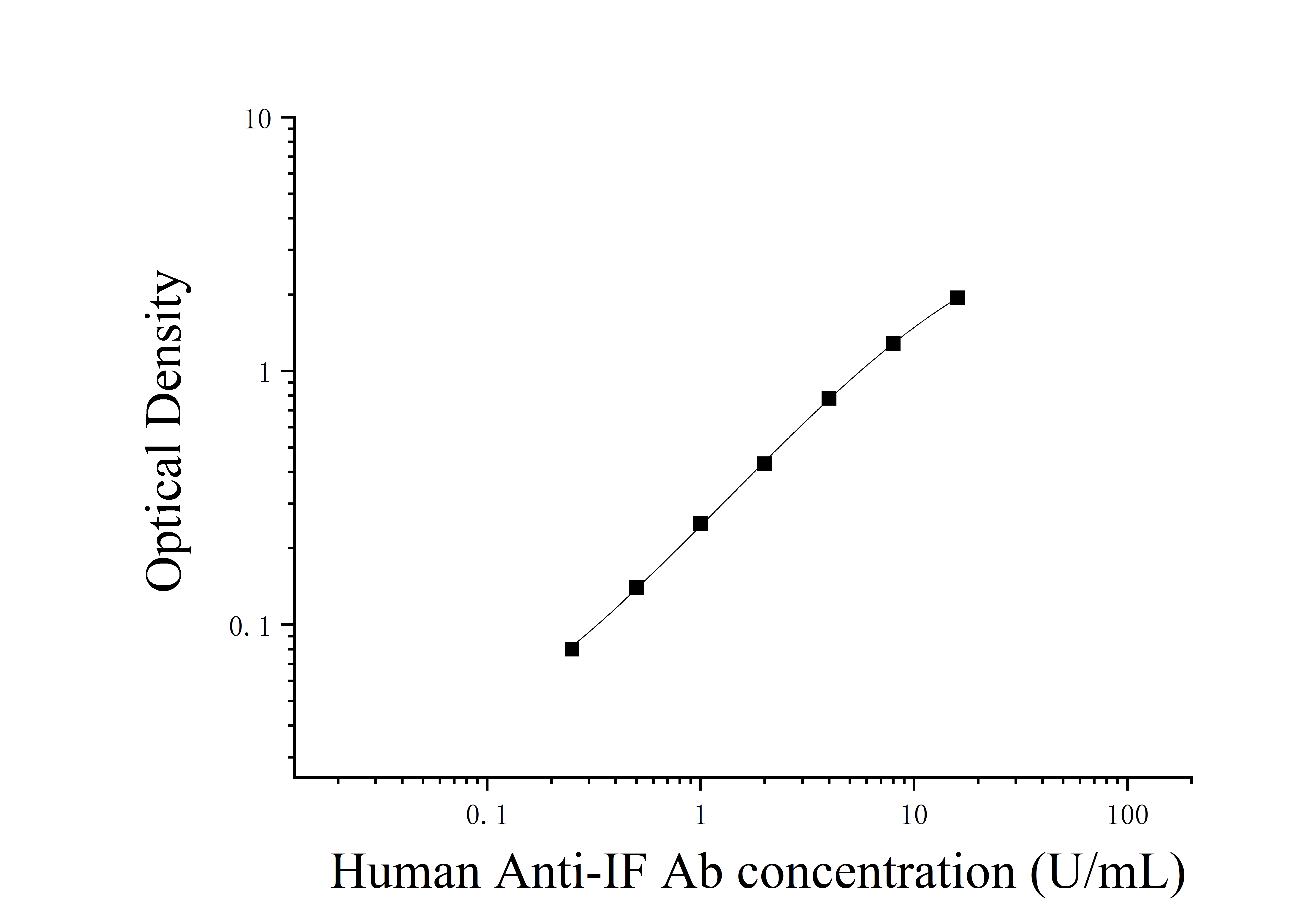 由于实验操作条件的不同( 如操作者、移液技术、洗板技术和稳定条件等),标准曲线的OD值会有所差异。以下数据和曲线仅供参考,实验者需根据自己的实验建立标准曲线。