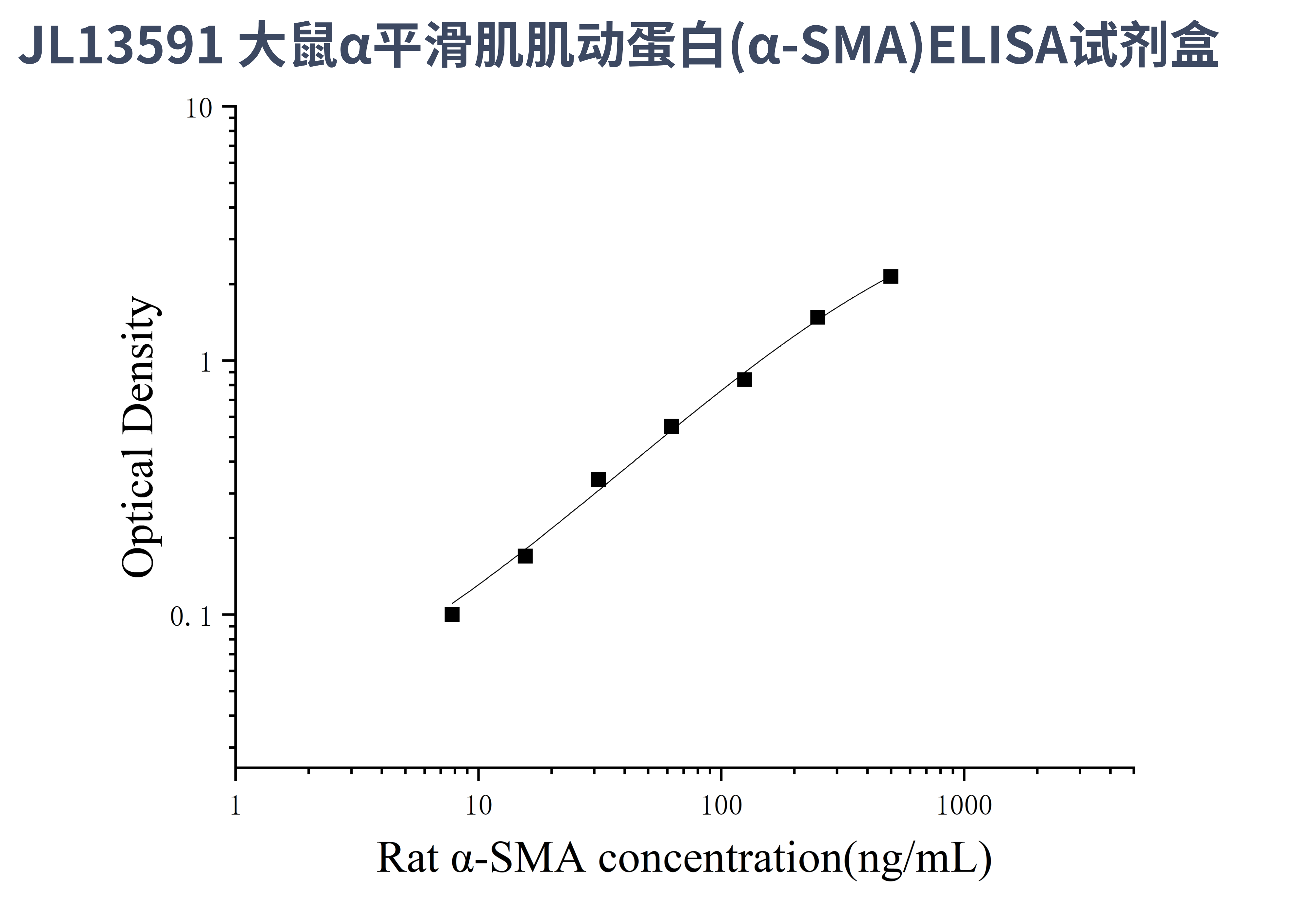 由于实验操作条件的不同( 如操作者、移液技术、洗板技术和稳定条件等),标准曲线的OD值会有所差异。以下数据和曲线仅供参考,实验者需根据自己的实验建立标准曲线。