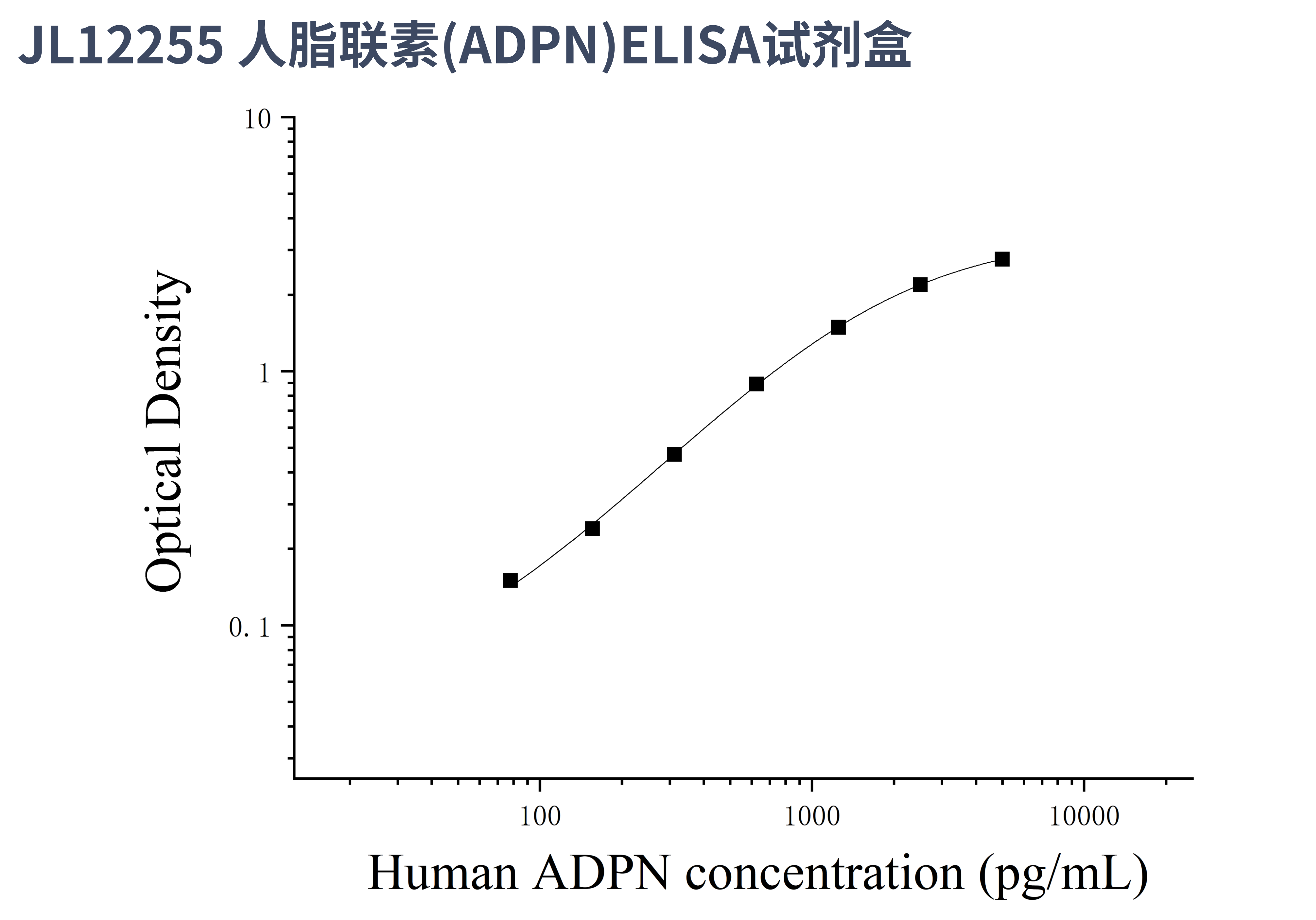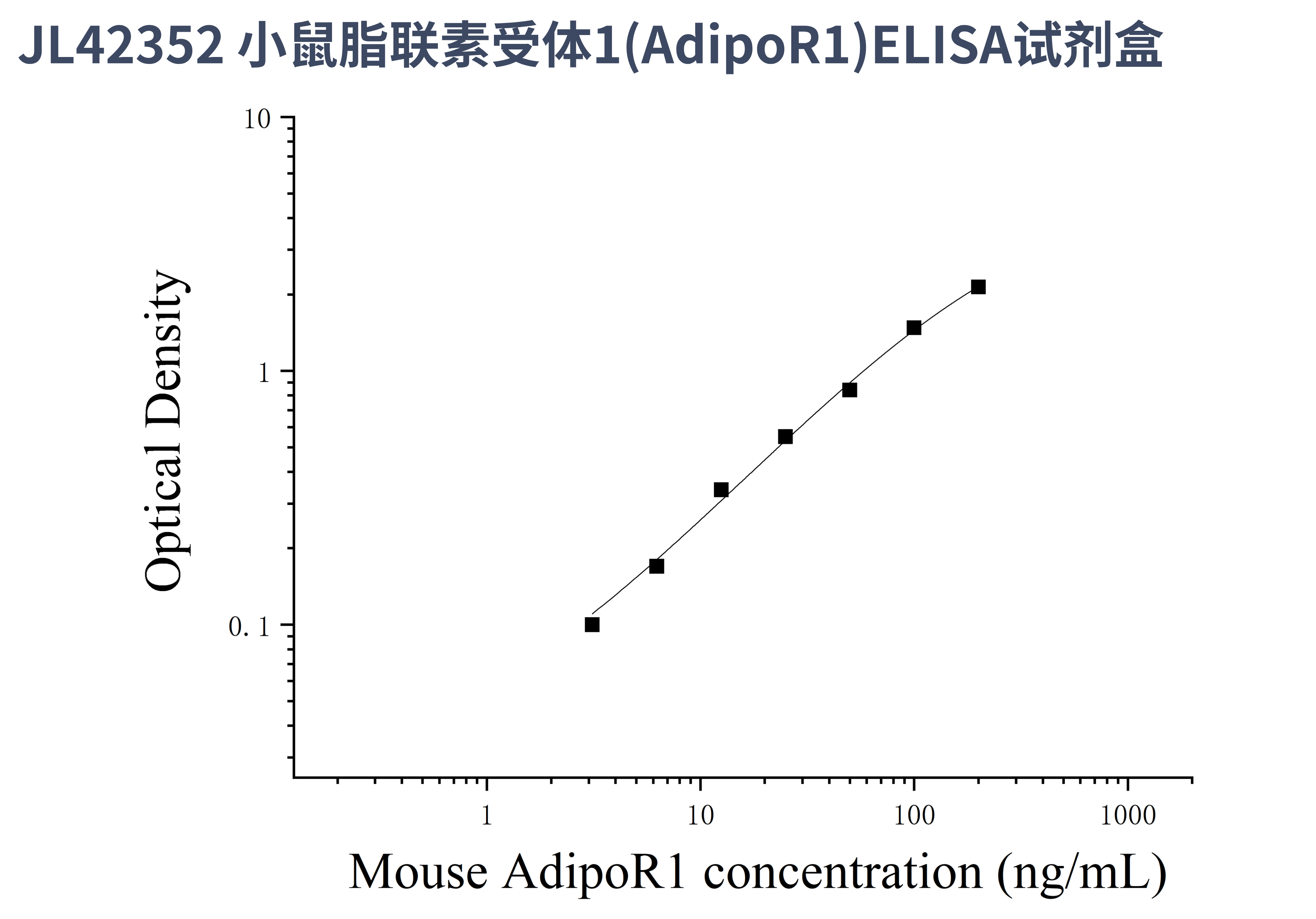 由于实验操作条件的不同( 如操作者、移液技术、洗板技术和稳定条件等),标准曲线的OD值会有所差异。以下数据和曲线仅供参考,实验者需根据自己的实验建立标准曲线。