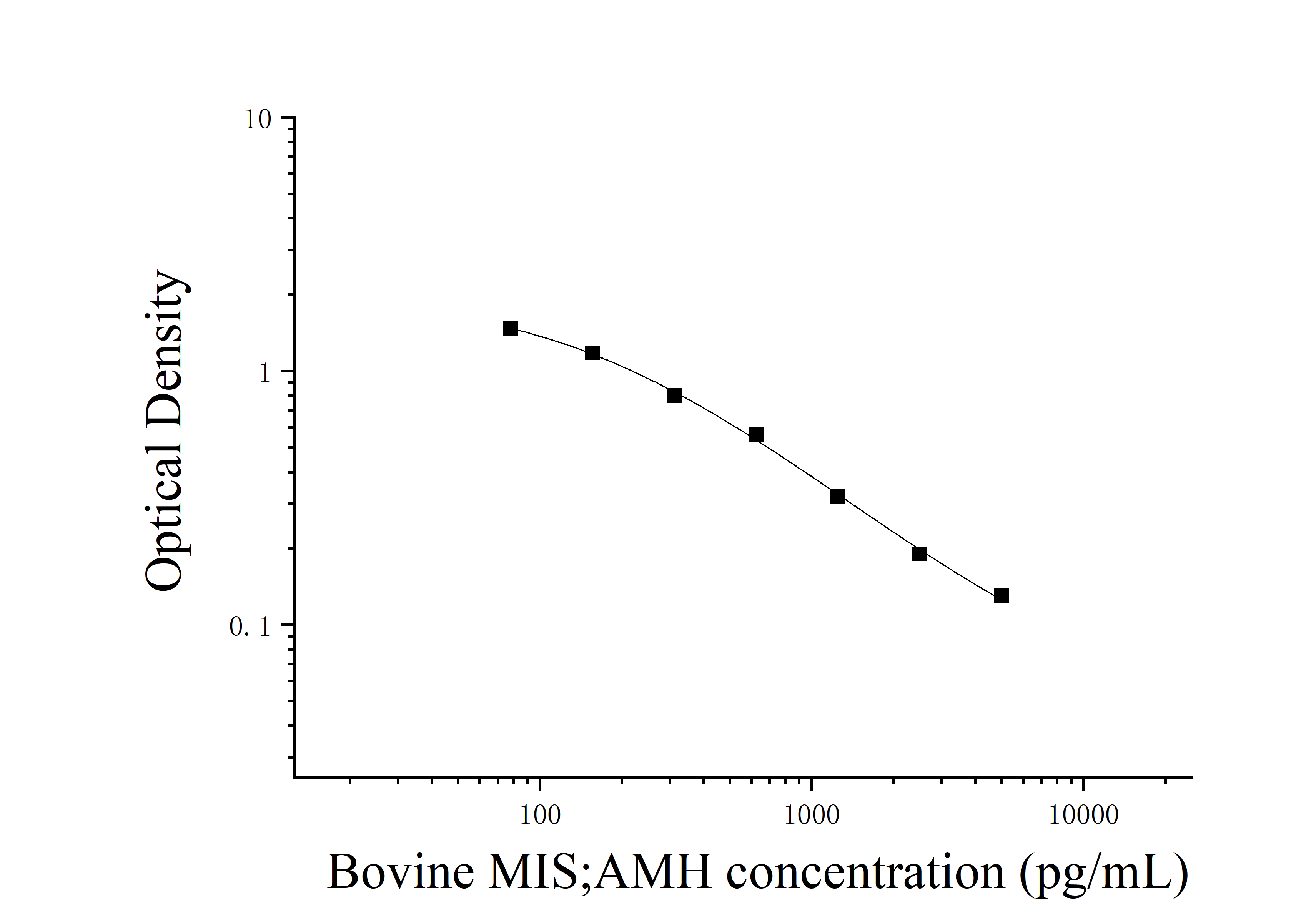 由于实验操作条件的不同( 如操作者、移液技术、洗板技术和稳定条件等),标准曲线的OD值会有所差异。以下数据和曲线仅供参考,实验者需根据自己的实验建立标准曲线。