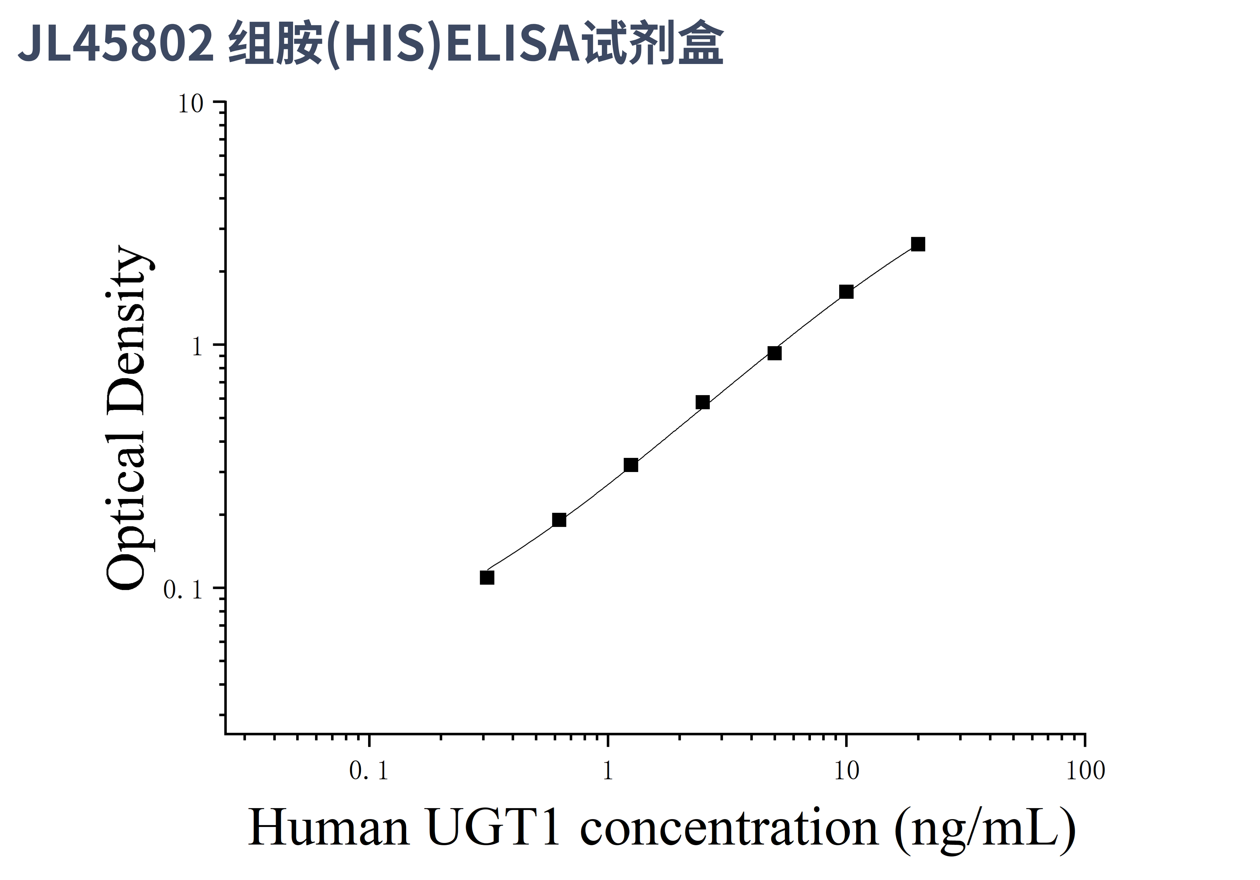 由于实验操作条件的不同( 如操作者、移液技术、洗板技术和稳定条件等),标准曲线的OD值会有所差异。以下数据和曲线仅供参考,实验者需根据自己的实验建立标准曲线。