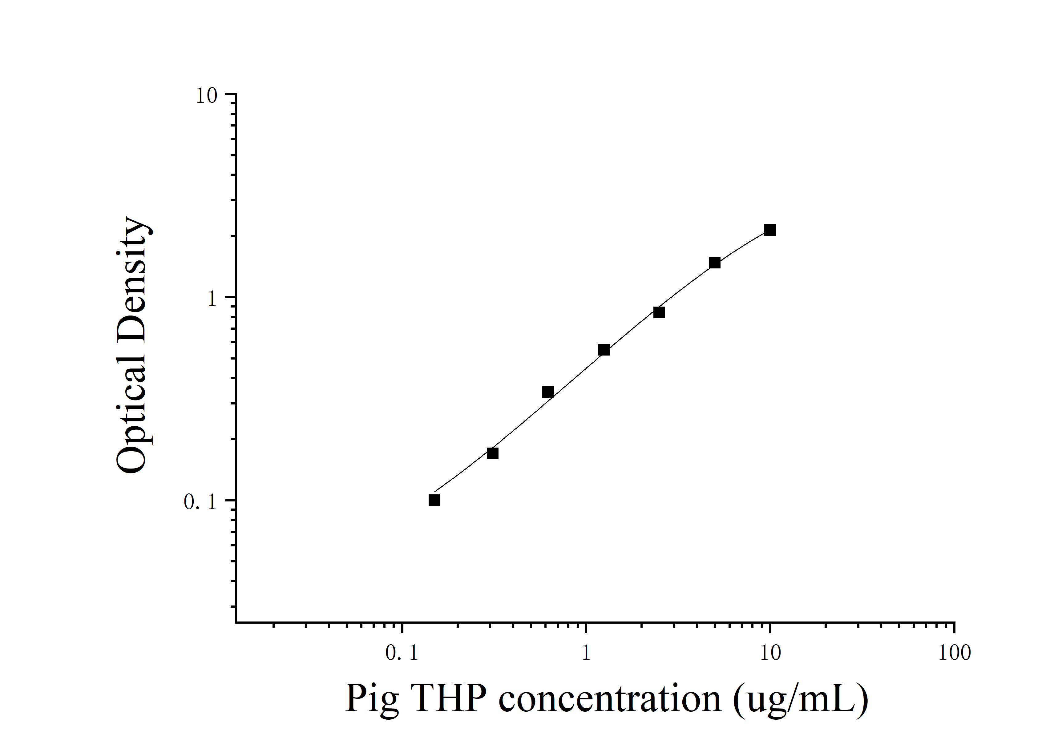 由于实验操作条件的不同( 如操作者、移液技术、洗板技术和稳定条件等),标准曲线的OD值会有所差异。以下数据和曲线仅供参考,实验者需根据自己的实验建立标准曲线。