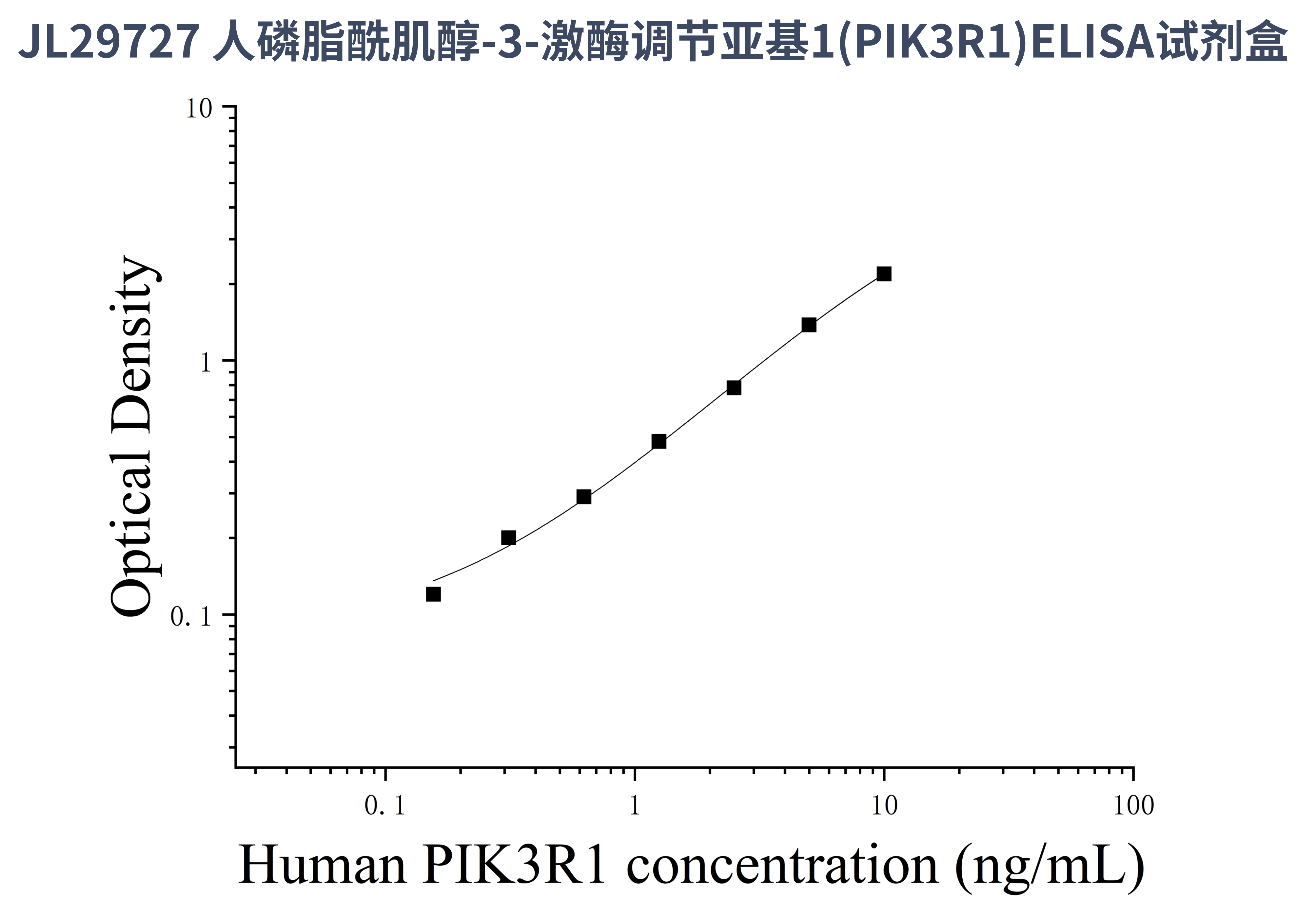 由于实验操作条件的不同( 如操作者、移液技术、洗板技术和稳定条件等),标准曲线的OD值会有所差异。以下数据和曲线仅供参考,实验者需根据自己的实验建立标准曲线。