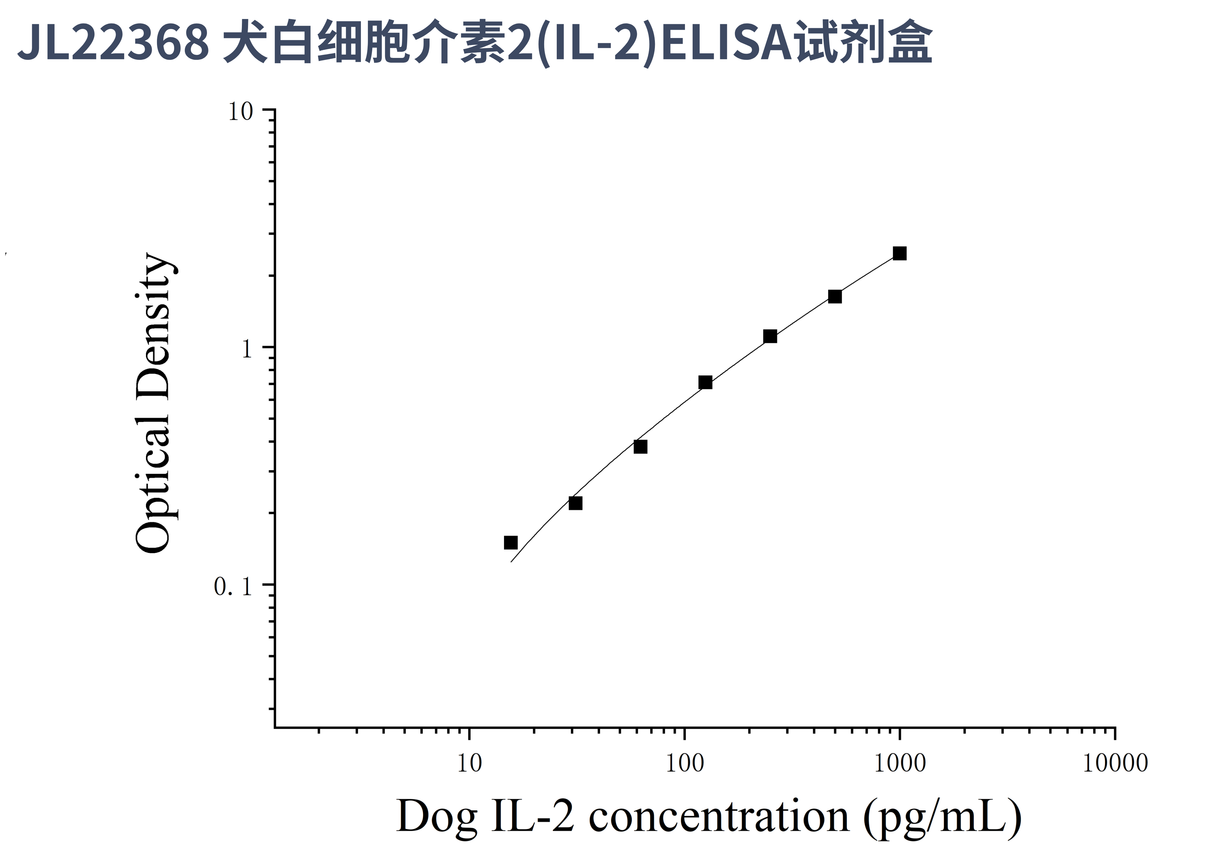 由于实验操作条件的不同( 如操作者、移液技术、洗板技术和稳定条件等),标准曲线的OD值会有所差异。以下数据和曲线仅供参考,实验者需根据自己的实验建立标准曲线。