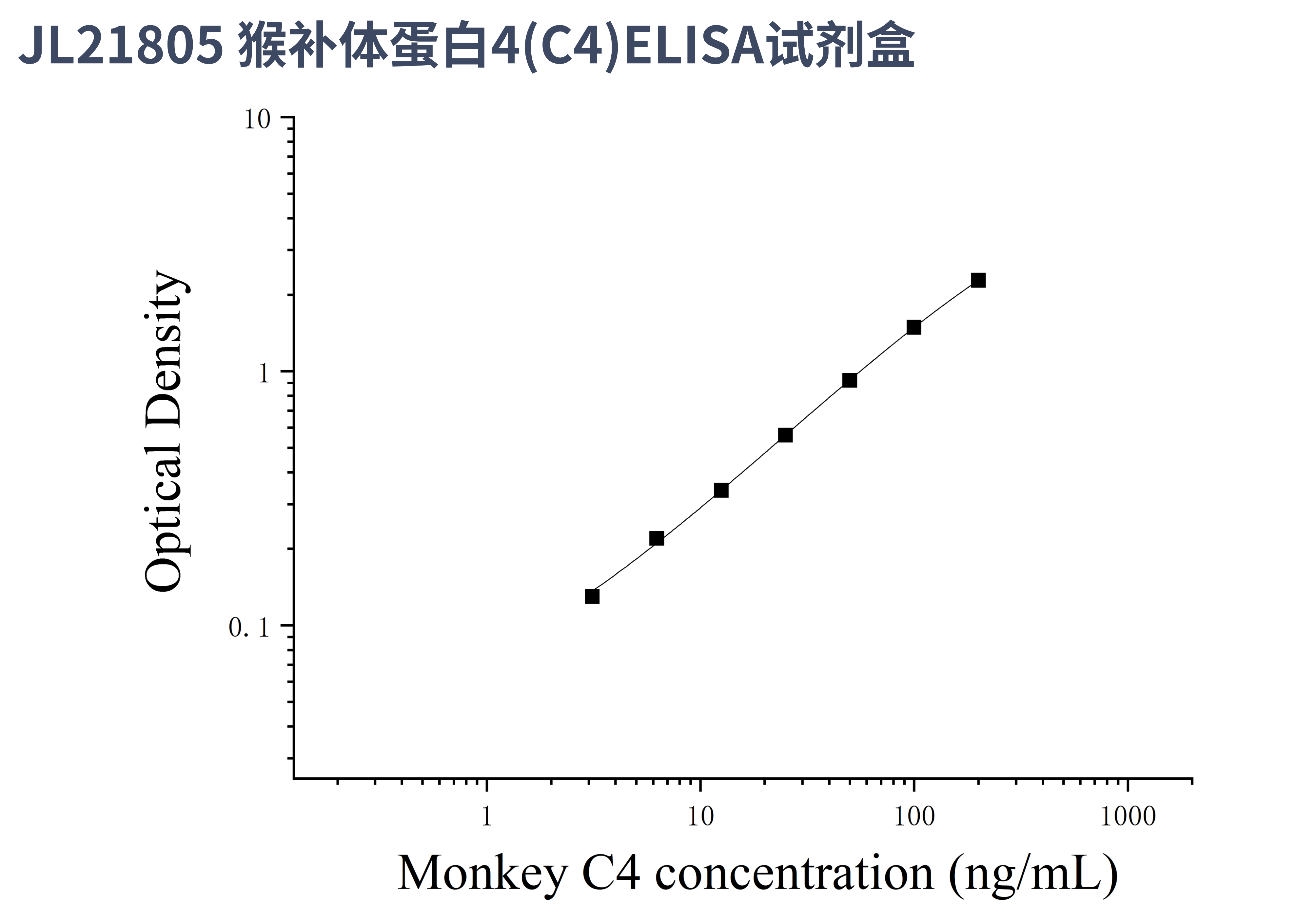 由于实验操作条件的不同( 如操作者、移液技术、洗板技术和稳定条件等),标准曲线的OD值会有所差异。以下数据和曲线仅供参考,实验者需根据自己的实验建立标准曲线。