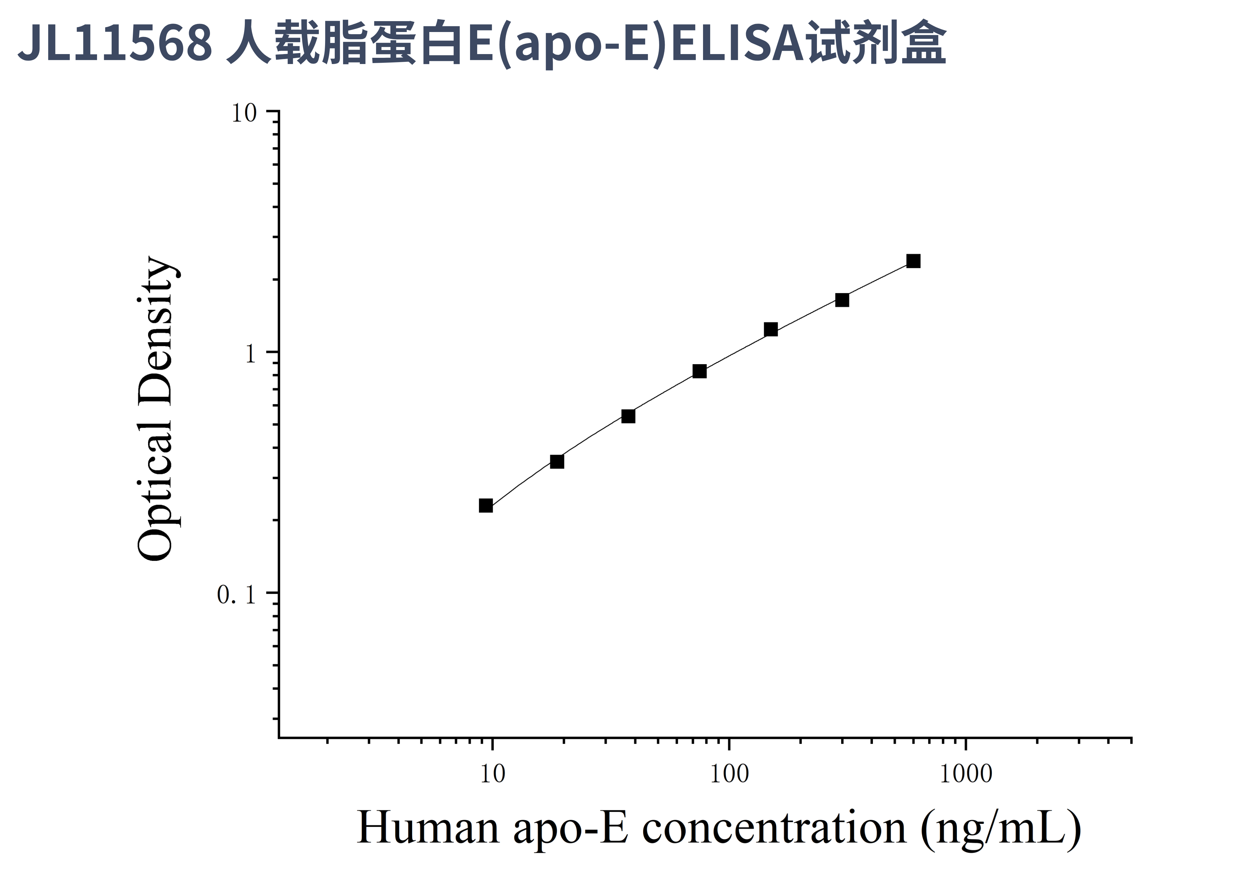 由于实验操作条件的不同( 如操作者、移液技术、洗板技术和稳定条件等),标准曲线的OD值会有所差异。以下数据和曲线仅供参考,实验者需根据自己的实验建立标准曲线。